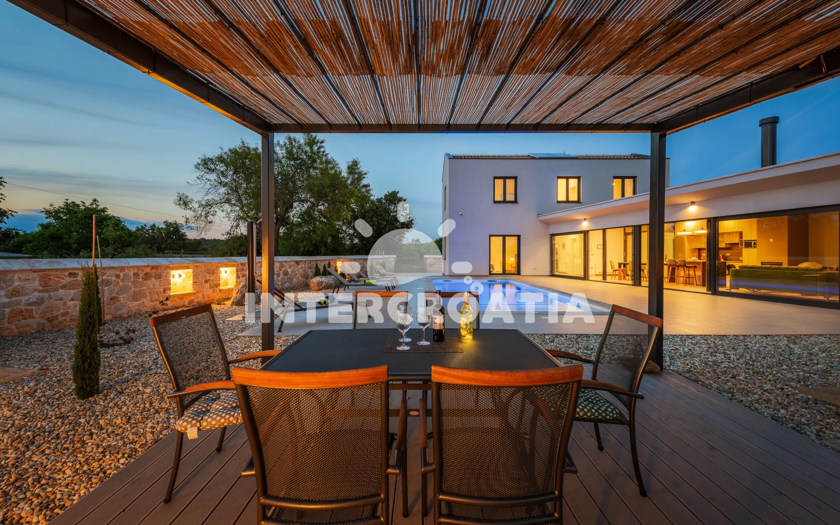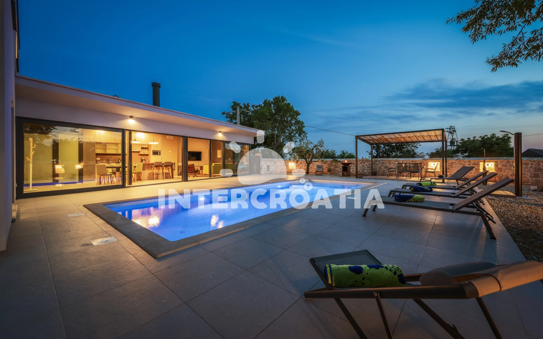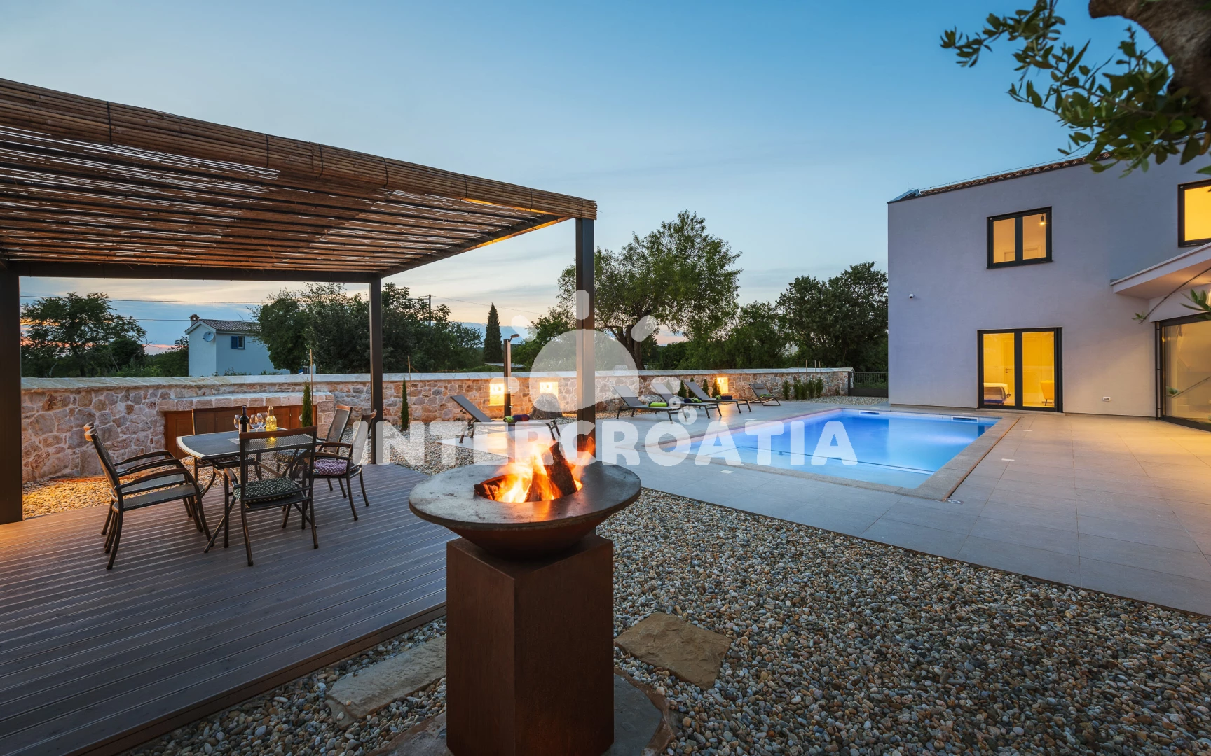Vila se nachází 15000 m od moře a pláže. Pláž je oblázková. Vila disponuje bazénem s lehátky pro ubytované hosty. U objektu je k dispozici společná zahrada s posezením a grilem. Parkování je před domem.