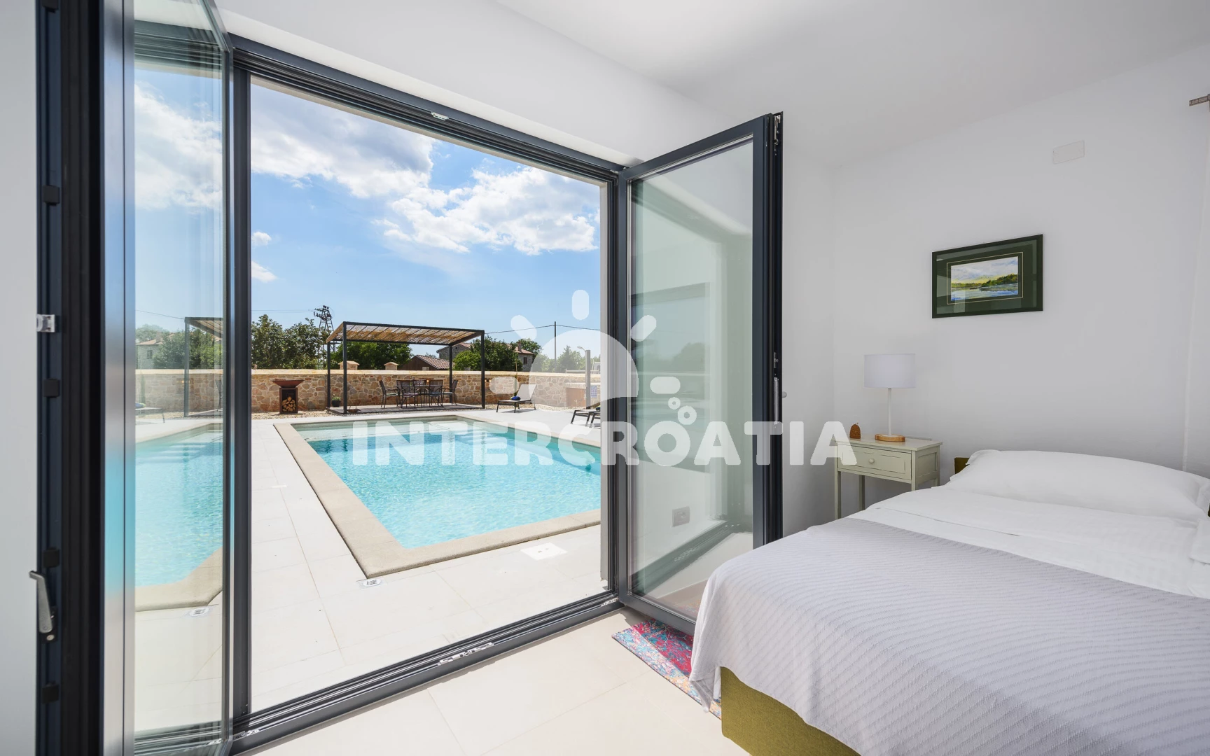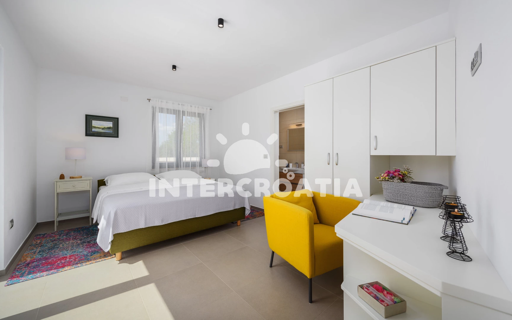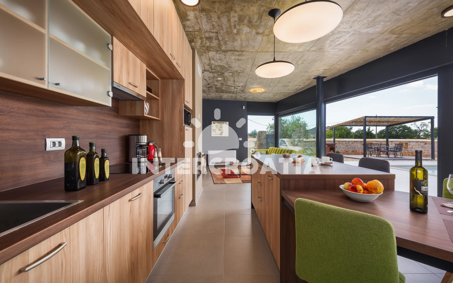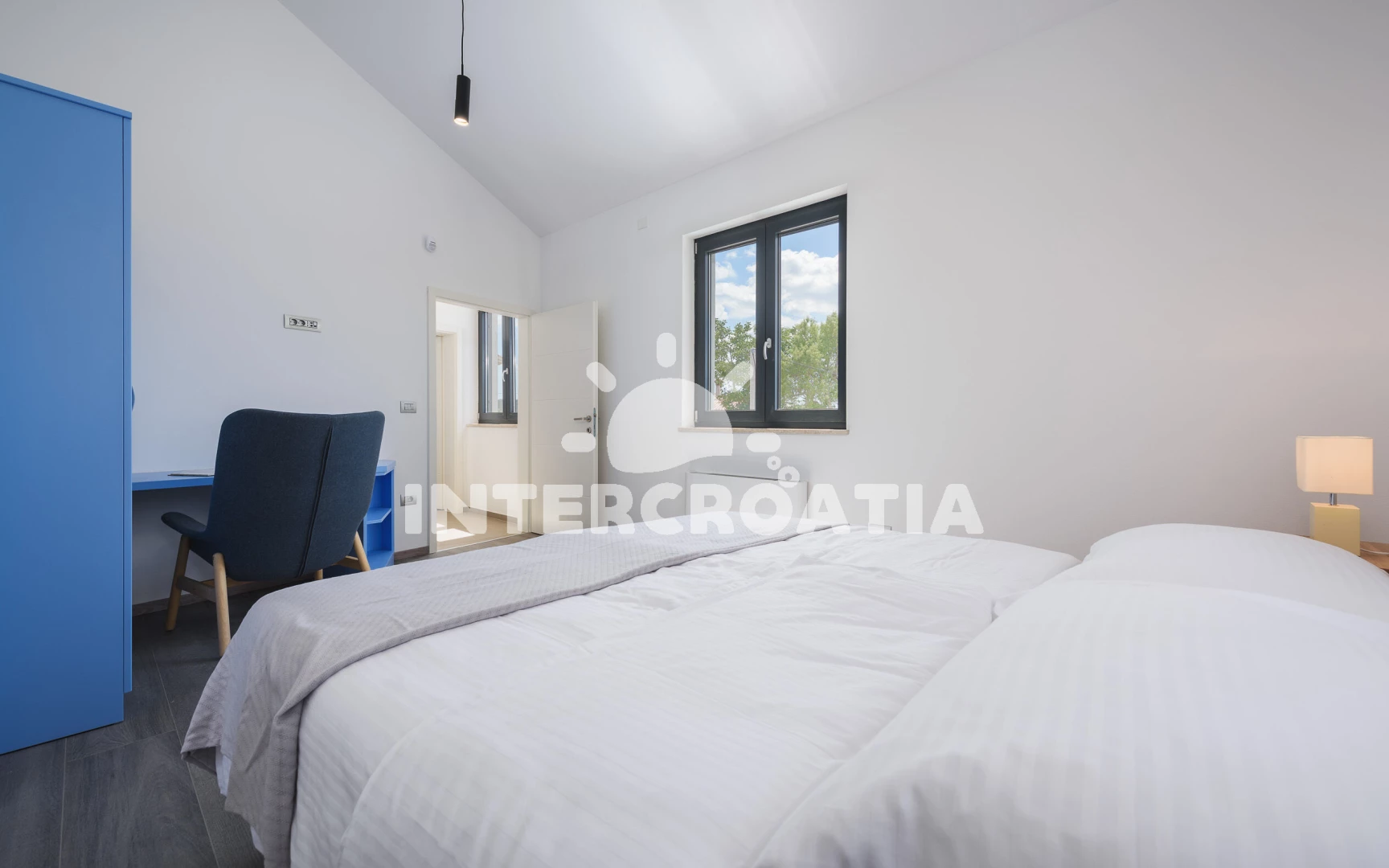 Vzdálenosti: Moře 10 km, pláž 15 km (oblázky), bar 1 km, restaurace 2 km, pošta 5 km, supermarket 5 km, veřejná doprava 5 km, lékárna 5 km, čerpací stanice 5 km, centrum 5,6 km, marina 15 km, směnárna 15 km, banka 15 km, ambulance 15 km, trajekt (Rovinj) 45 km, park Plitvice 57,5 km, letiště (Pula) 59,5 km,