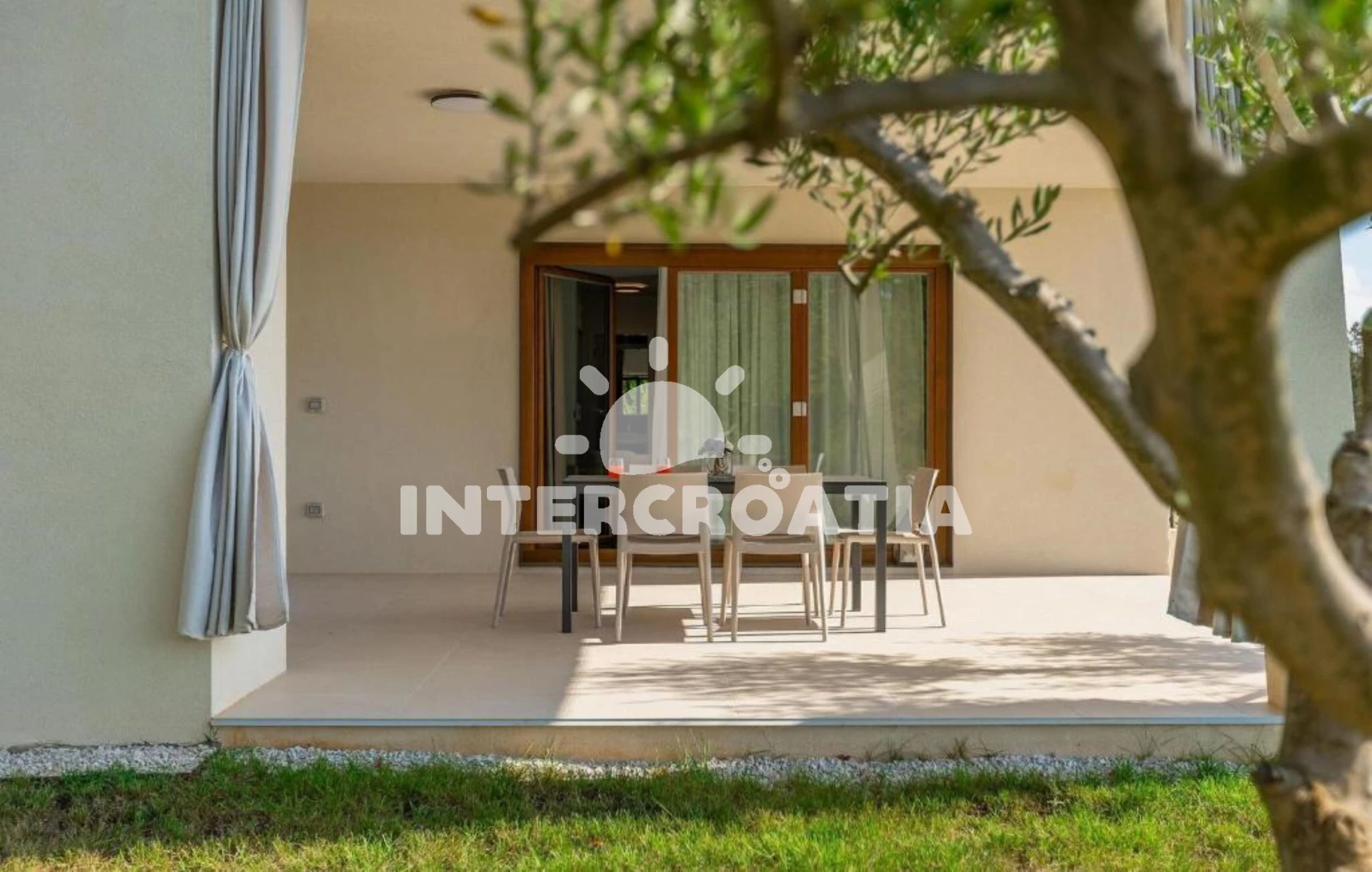 Vila (153 m2). Nachází se v přízemí objektu. Vila má 3 ložnice a je vhodná pro až 6 osob. Kuchyňská linka je vybavena varnou deskou, kávovarem, toustovačem, troubou, myčkou na nádobí, mikrovlnnou troubou, rychlovarnou konvicí, nádobím, lednicí, mrazákem. K dispozici televize, sejf, žehlička. První ložnice s dvoulůžkem. Druhá ložnice s dvoulůžkem. Třetí ložnice s dvoulůžkem. První koupelna se sprchovým koutem, umyvadlem, WC. Druhá koupelna se sprchovým koutem, umyvadlem, WC. Třetí koupelna se sprchovým koutem, umyvadlem, WC. Dále samostatné WC.