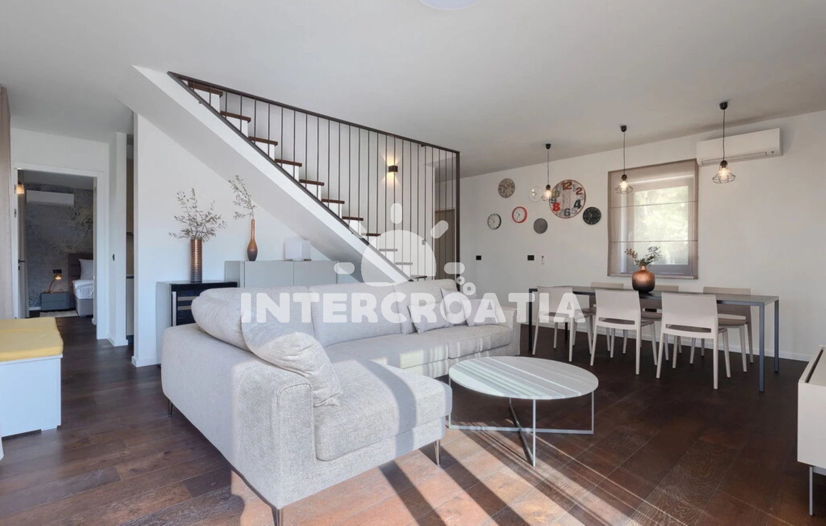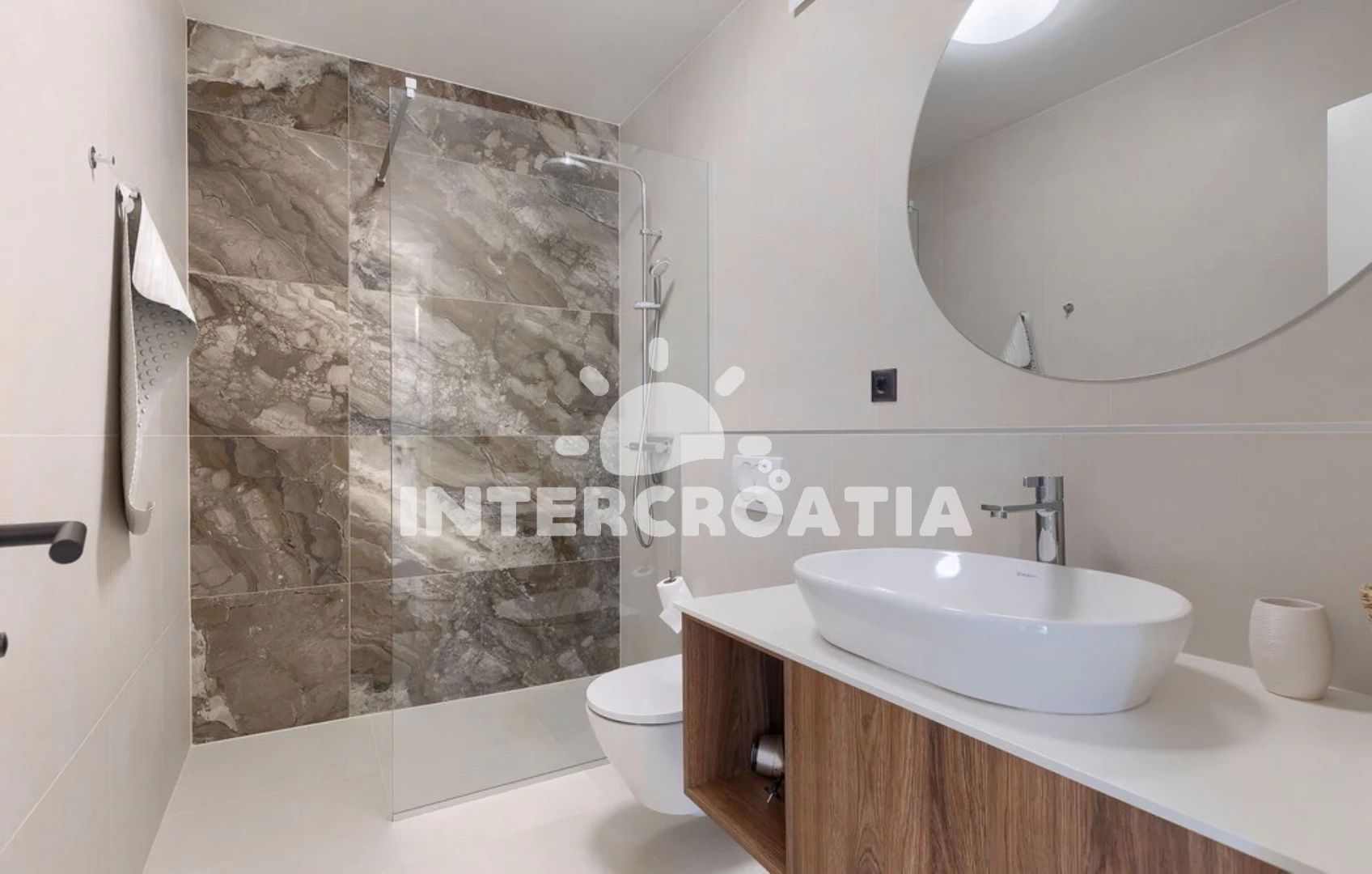 Vzdálenosti: Moře 17 km, pláž 17 km (písčitá, skalnatá, oblázková, větší kamení a betonové desky), supermarket 5 km, centrum 6 km, restaurace 6 km, bar 6 km, veřejná doprava 6 km, čerpací stanice 6 km, pošta 9 km, banka 9 km, ambulance 9 km, lékárna 9 km, tenisové kurty 17 km, mini golf 17 km, půjčovna motorových člunů 17 km, marina 17 km, potápění 17 km, muzeum 17 km, diskotéka 17 km, půjčovna kol 17 km, letiště (Pula) 51 km, park Plitvice 51 km, trajekt (Brestova) 60 km,