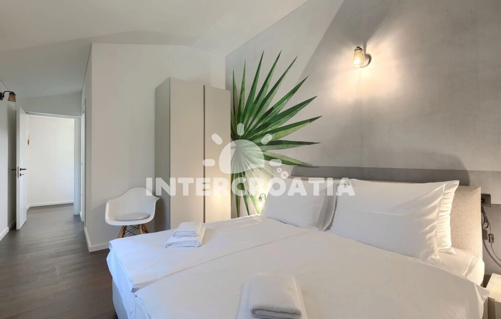 Vila (192 m2). Vila má 4 ložnice a je vhodná pro až 8 osob. Kuchyňská linka je vybavena varnou deskou, troubou, toustovačem, kávovarem, myčkou na nádobí, mikrovlnnou troubou, rychlovarnou konvicí, nádobím, lednicí, mrazákem. K dispozici televize, sejf, žehlička. První ložnice s dvoulůžkem. Druhá ložnice s dvoulůžkem. Třetí ložnice s dvoulůžkem. Čtvrtá ložnice s dvoulůžkem. Dále samostatné WC.