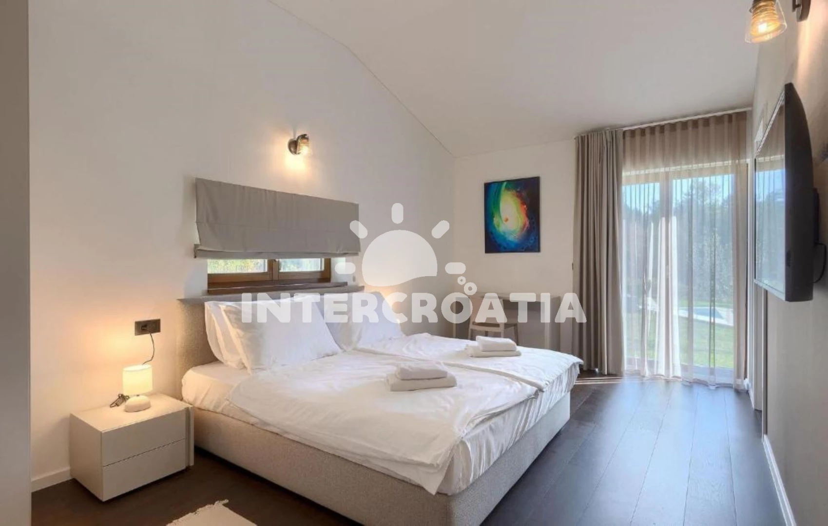 Vzdálenosti: Moře 17 km, pláž 17 km (písčitá, skalnatá, oblázková, větší kamení a betonové desky), supermarket 5 km, centrum 6 km, restaurace 6 km, bar 6 km, veřejná doprava 6 km, čerpací stanice 6 km, pošta 9 km, banka 9 km, ambulance 9 km, lékárna 9 km, tenisové kurty 17 km, mini golf 17 km, půjčovna motorových člunů 17 km, marina 17 km, potápění 17 km, muzeum 17 km, diskotéka 17 km, půjčovna kol 17 km, letiště (Pula) 51 km, park Plitvice 51 km, trajekt (Brestova) 60,0 km,