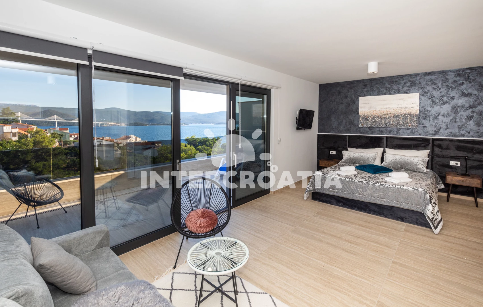 Vila (220 m2) s balkonem, a výhledem na moře. Nachází se ve dvou patrech objektu. Vila má 4 ložnice a je vhodná pro až 8 osob. Kuchyňská linka je vybavena varnou deskou, kávovarem, troubou, myčkou na nádobí, rychlovarnou konvicí, nádobím, lednicí, mrazákem. K dispozici televize, sejf, žehlička. První ložnice s dvoulůžkem. Druhá ložnice s dvoulůžkem. Třetí ložnice s dvoulůžkem. Čtvrtá ložnice s dvoulůžkem. První koupelna se sprchovým koutem, umyvadlem, fénem a WC. Druhá koupelna se sprchovým koutem, umyvadlem, fénem a WC. Třetí koupelna se sprchovým koutem, umyvadlem, fénem a WC. Dále samostatné WC.