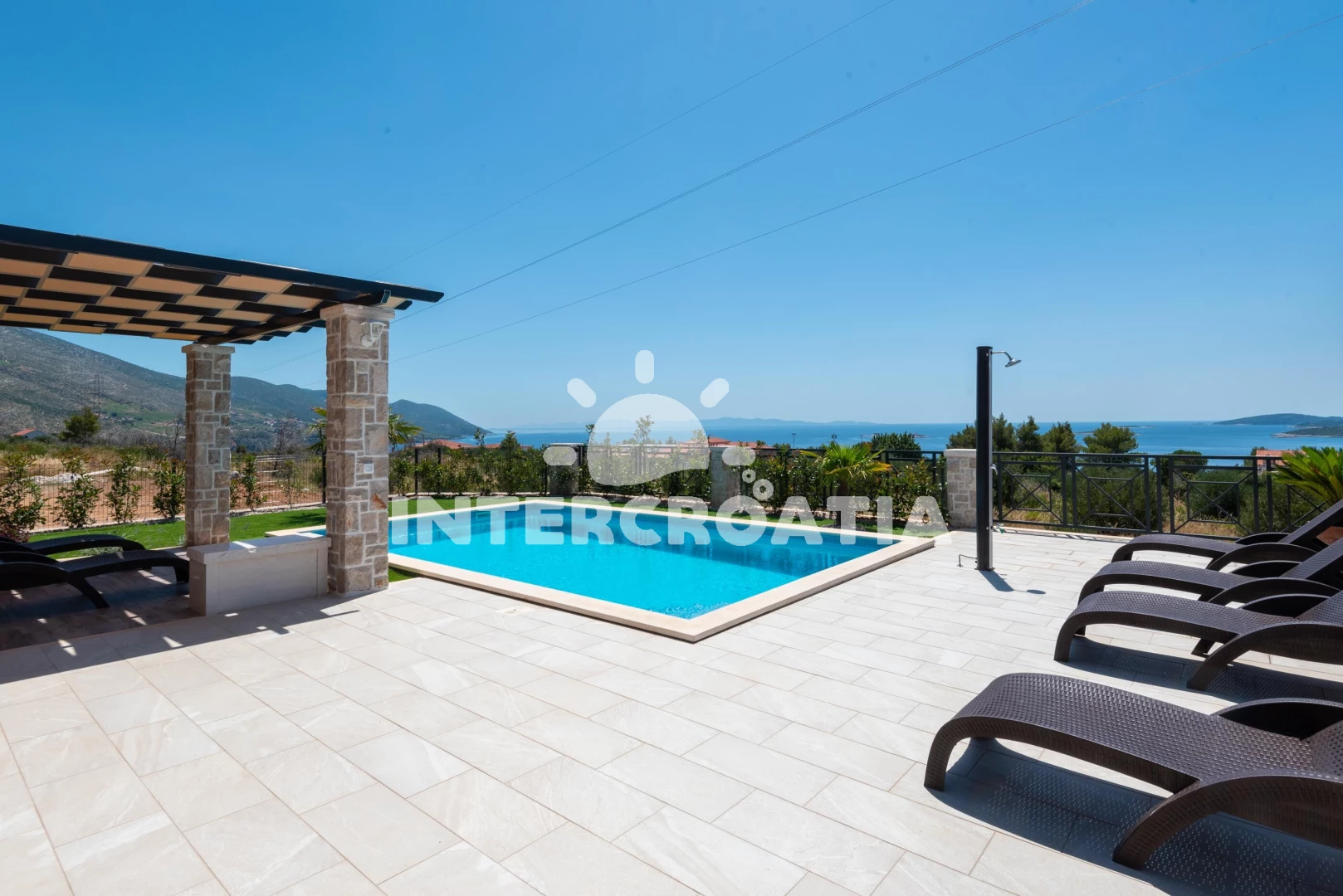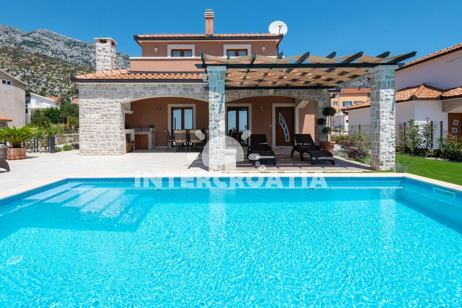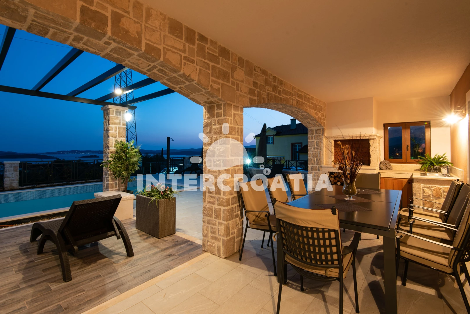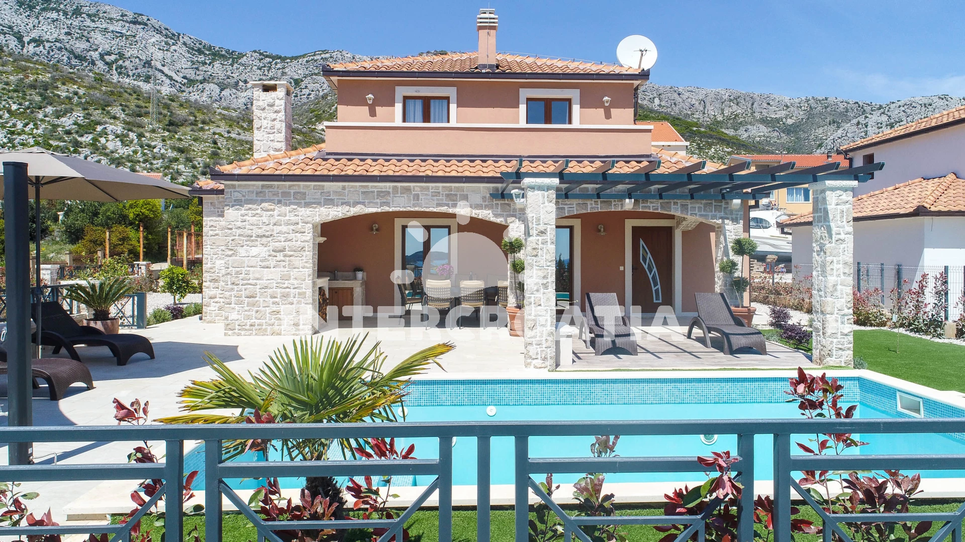 Vila se nachází 500 m od moře a pláže. Pláž je písčitá a oblázková. Vila disponuje bazénem s lehátky pro ubytované hosty. K dispozici posilovna. U objektu je k dispozici společná zahrada s posezením a grilem. Parkování je před domem.