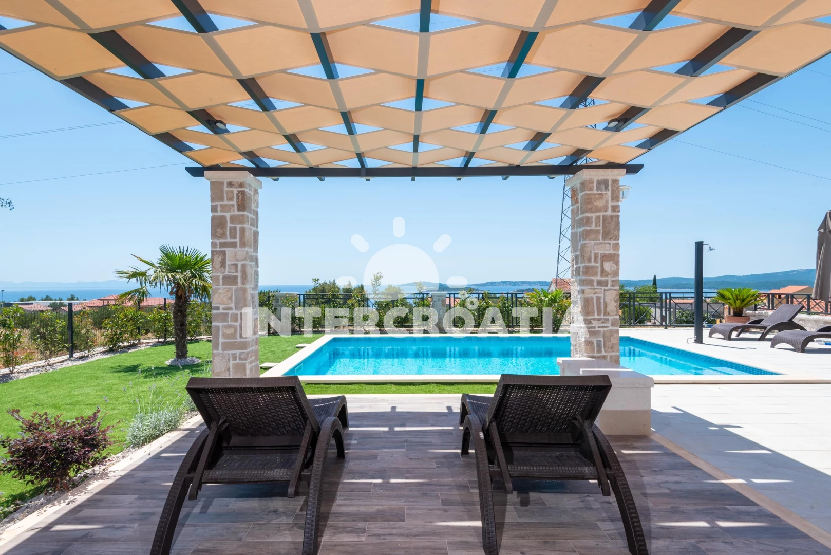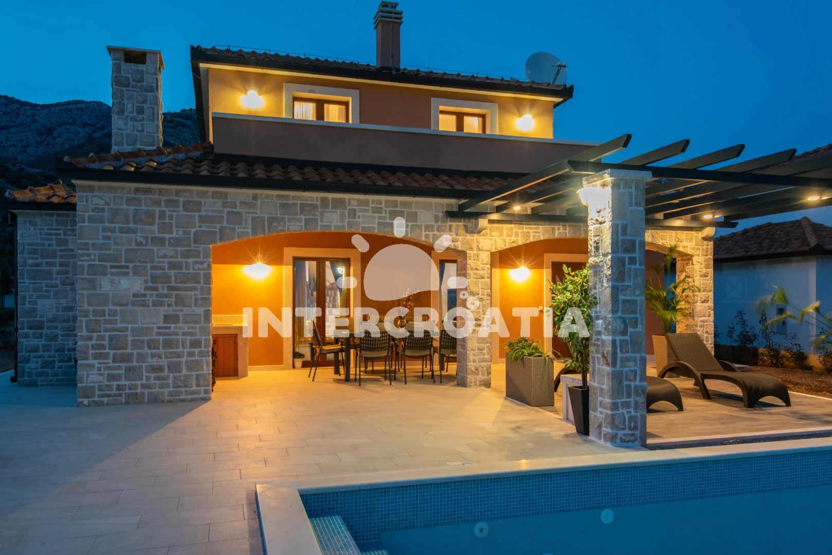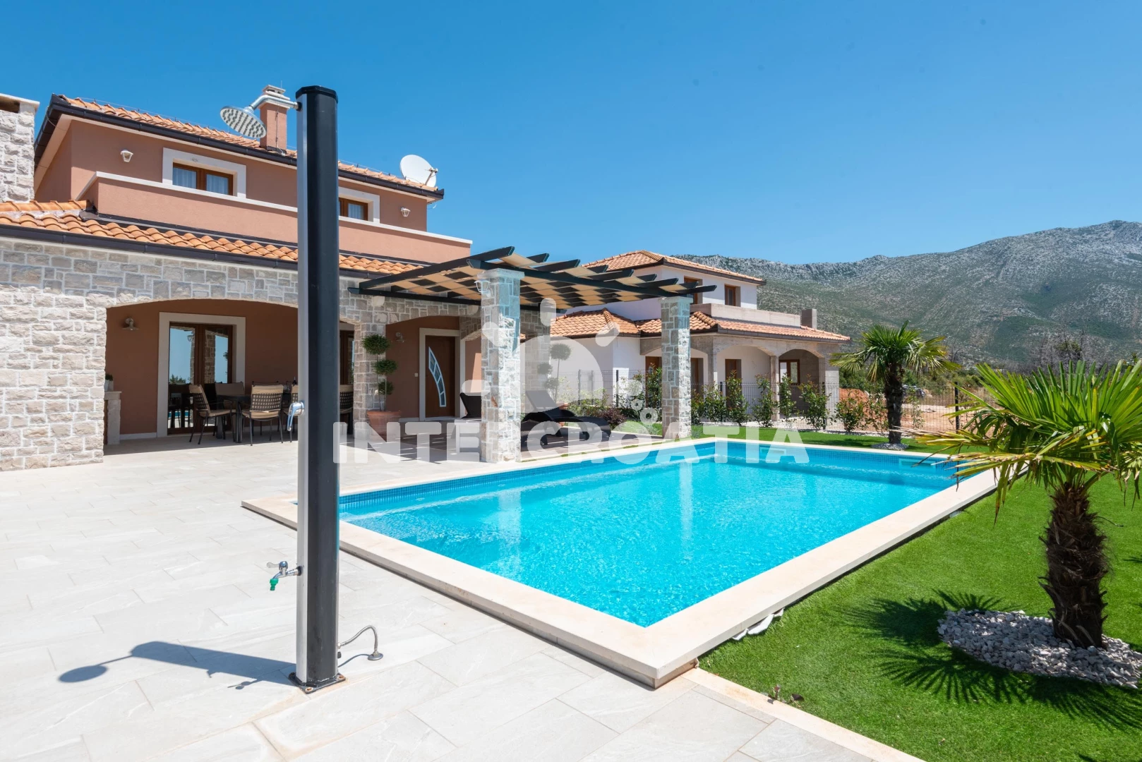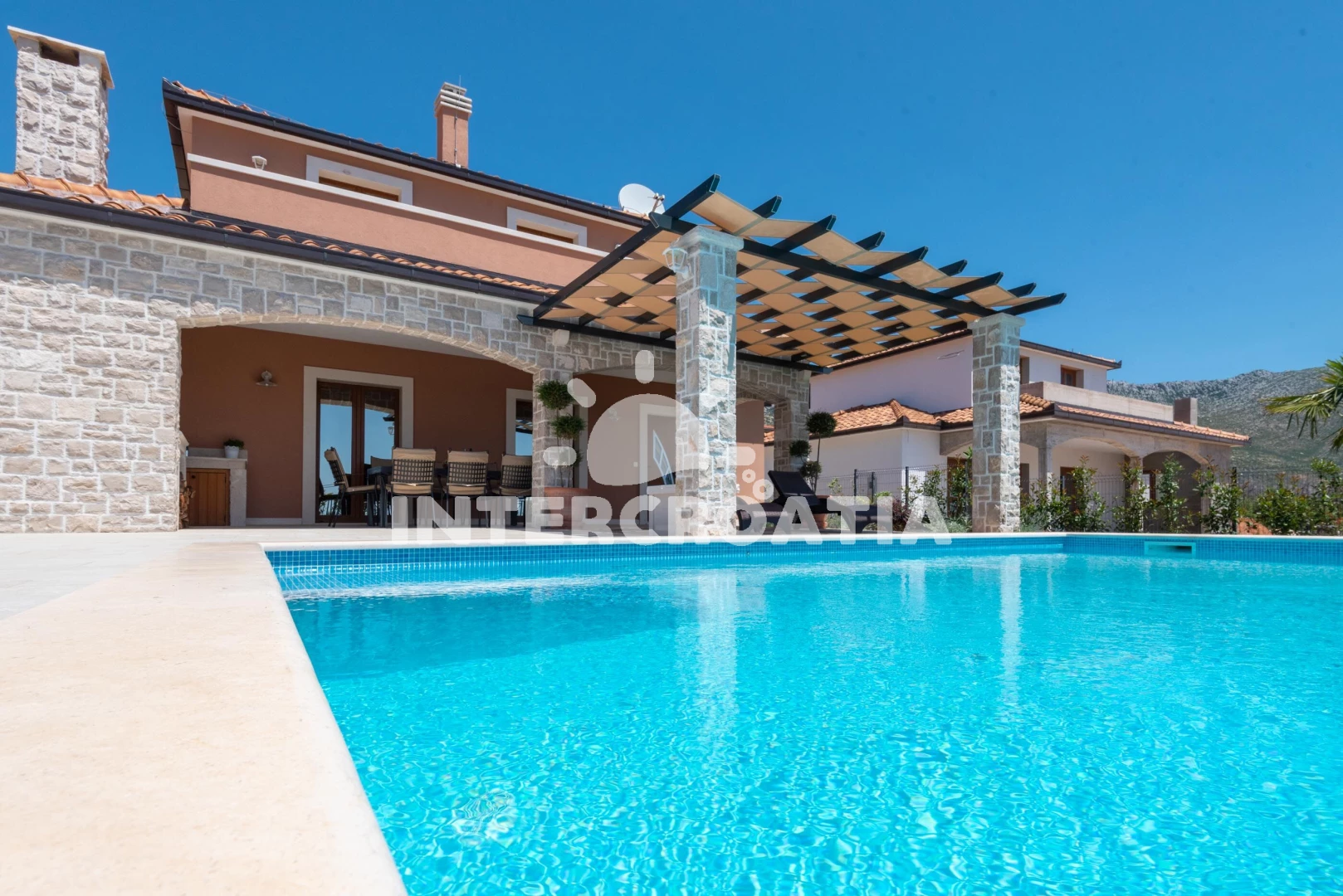 Vila se nachází 500 m od moře a pláže. Pláž je písčitá a oblázková. Vila disponuje bazénem s lehátky pro ubytované hosty. K dispozici posilovna. U objektu je k dispozici společná zahrada s posezením a grilem. Parkování je před domem.