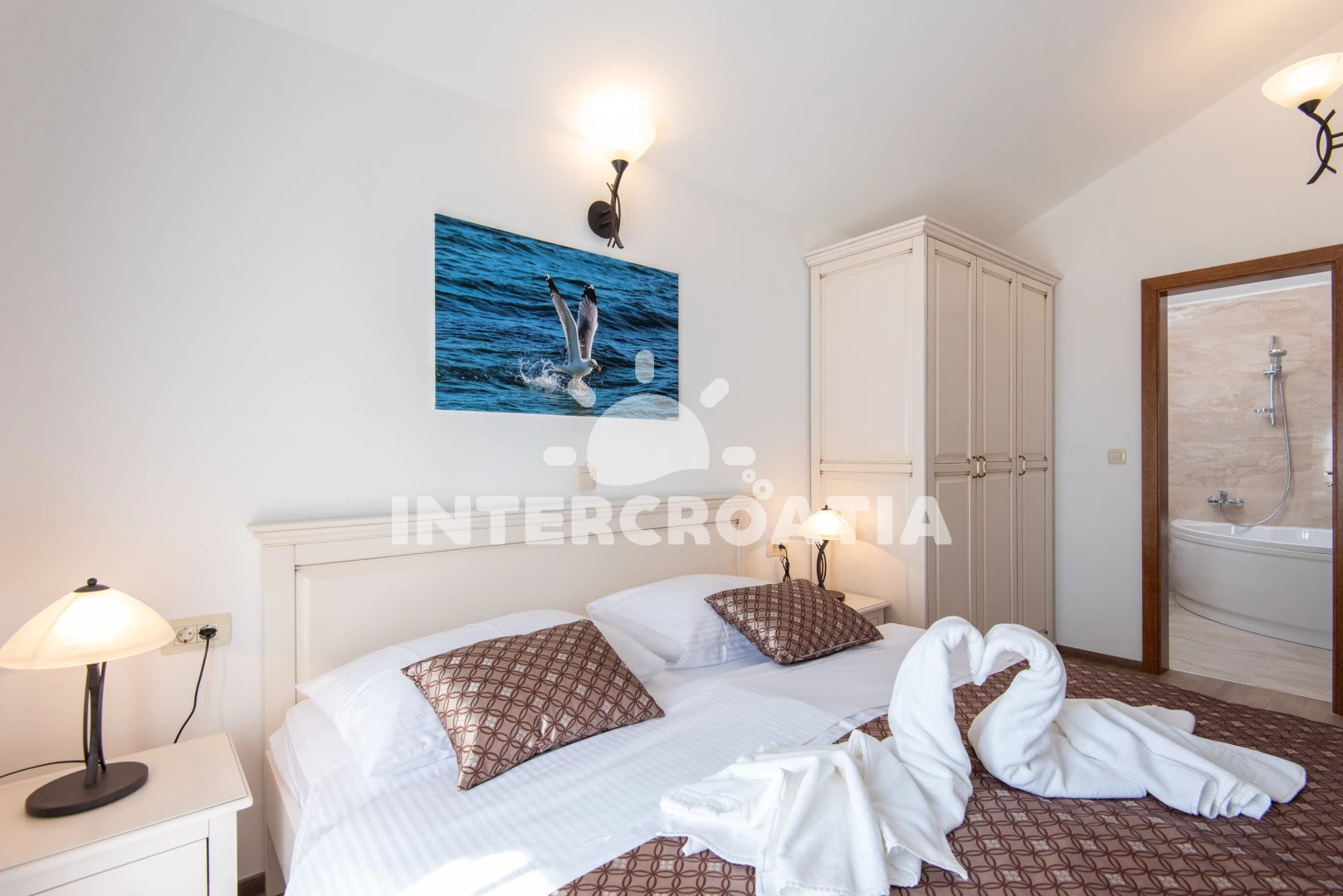 Vila (150 m2) s balkonem, a výhledem na moře. Nachází se ve dvou patrech objektu. Vila má 3 ložnice a je vhodná pro až 8 osob. Kuchyňská linka je vybavena varnou deskou, toustovačem, kávovarem, troubou, mikrovlnnou troubou, rychlovarnou konvicí, nádobím, lednicí, mrazákem. V obývací místnosti je rozložitelná pohovka (extra lůžko pro 2 osoby). K dispozici televize, sejf, žehlička. První ložnice s dvoulůžkem. Druhá ložnice s dvoulůžkem. Třetí ložnice s dvoulůžkem. První koupelna se sprchovým koutem, umyvadlem, fénem a WC. Druhá koupelna se sprchovým koutem, umyvadlem, fénem a WC. Dále samostatné WC.