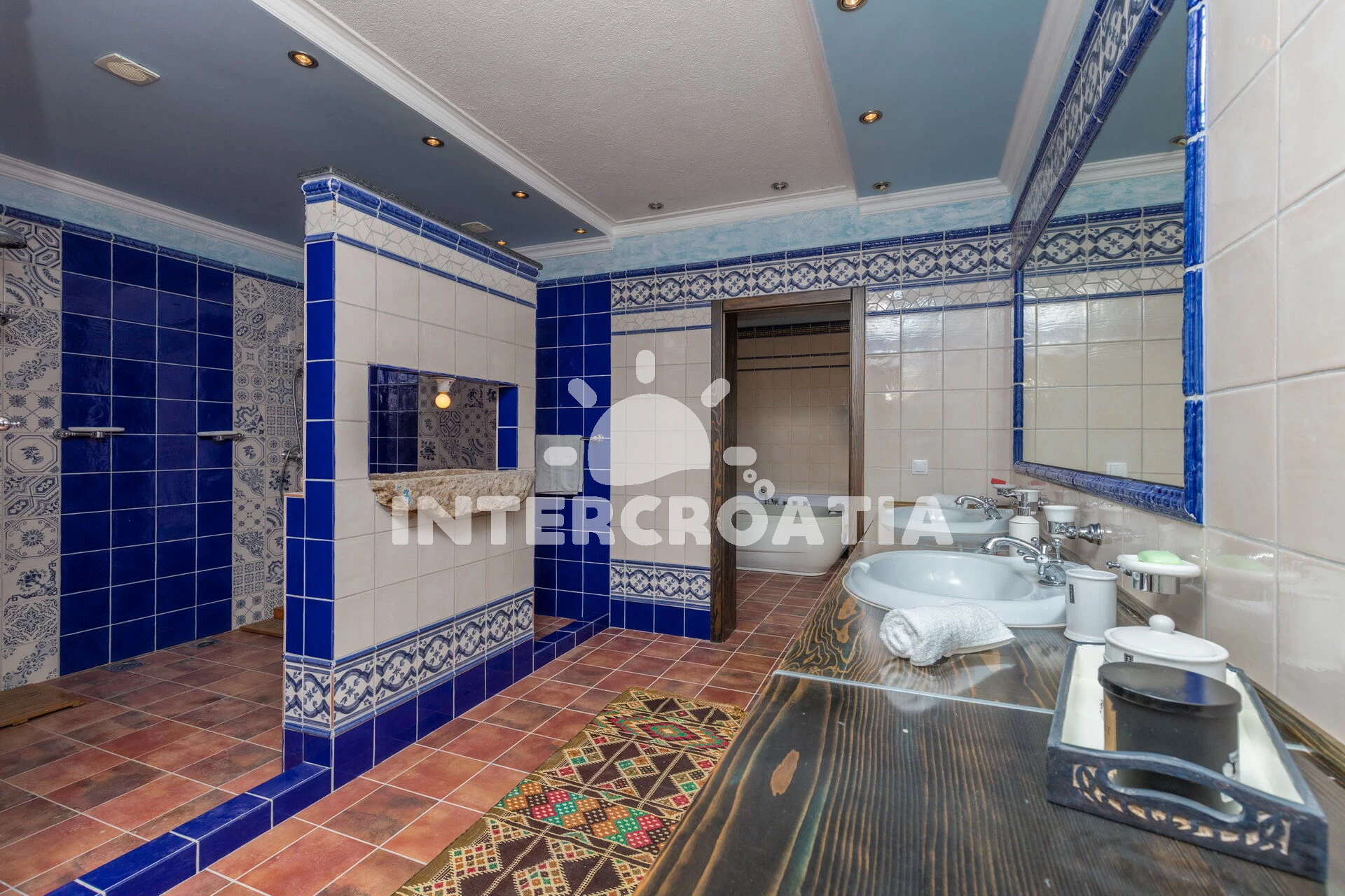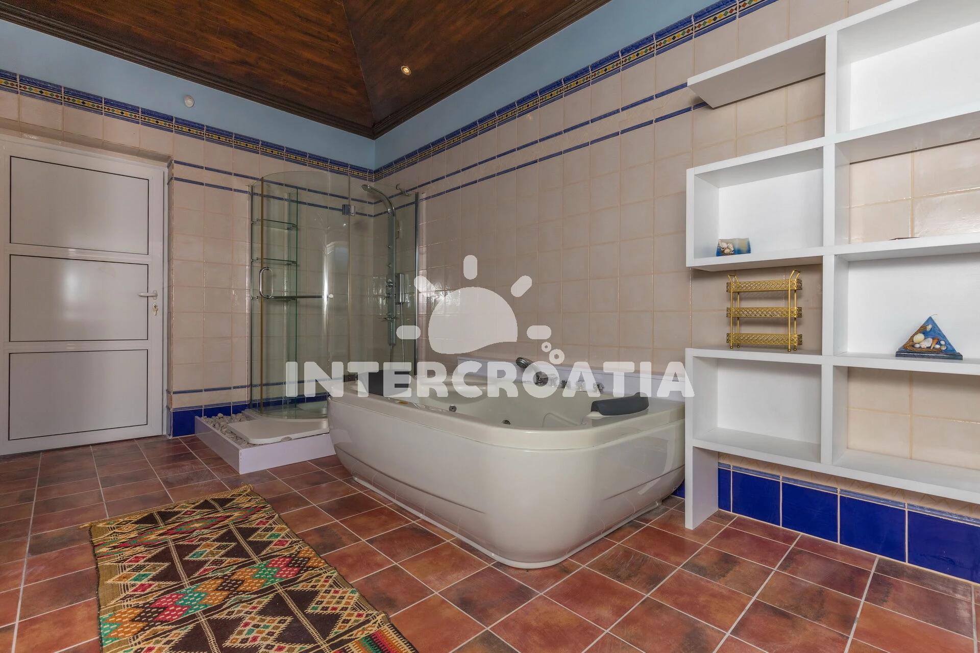Vila (400 m2) s balkonem. Vila má 1 ložnici a je vhodná pro až 12 osob. Kuchyňská linka je vybavena varnou deskou, toustovačem, kávovarem, troubou, myčkou na nádobí, rychlovarnou konvicí, nádobím, lednicí, mrazákem. K dispozici televize se satelitním programem, radio, žehlička. První koupelna se sprchovým koutem, umyvadlem, fénem a WC. Druhá koupelna se sprchovým koutem, umyvadlem, fénem a WC. Třetí koupelna se sprchovým koutem, umyvadlem, fénem a WC. Čtvrtá koupelna se sprchovým koutem, umyvadlem, fénem a WC. Dále samostatné WC.