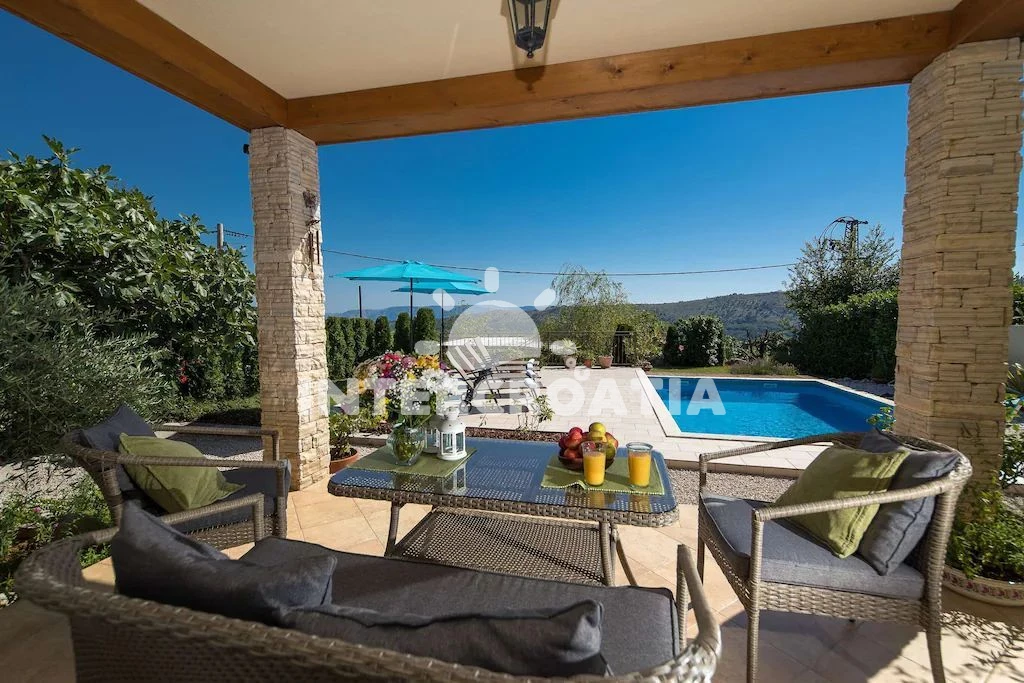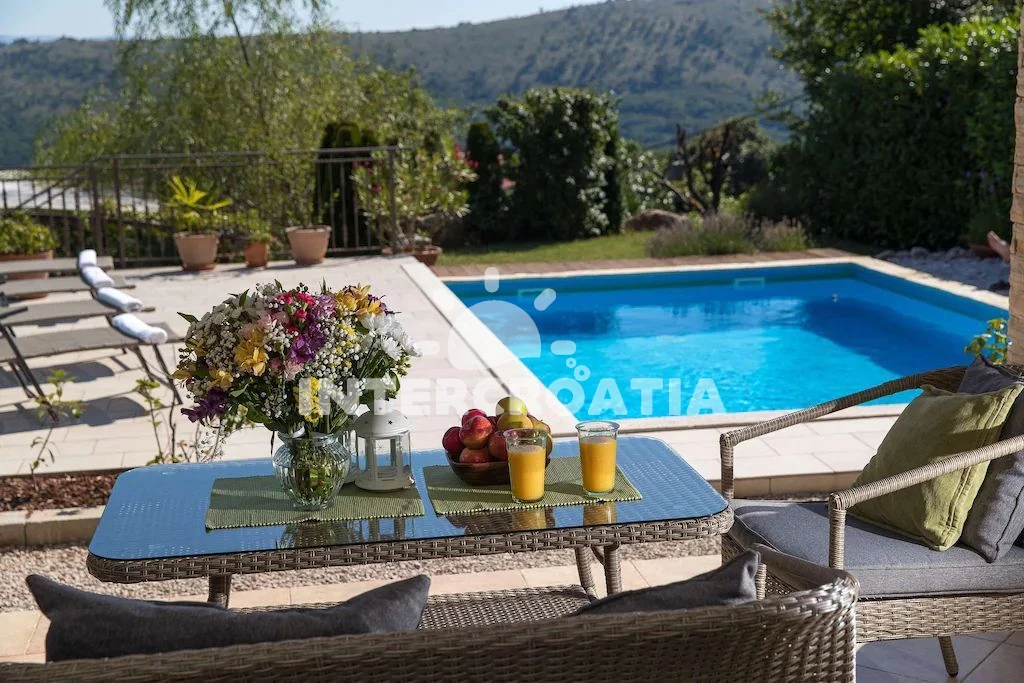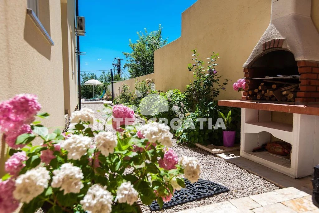 Vila se nachází 3600 m od moře a pláže. Pláž je oblázková a betonové desky. Vila disponuje bazénem s lehátky pro ubytované hosty. U objektu je k dispozici společná zahrada s posezením a grilem. Parkování je před domem.