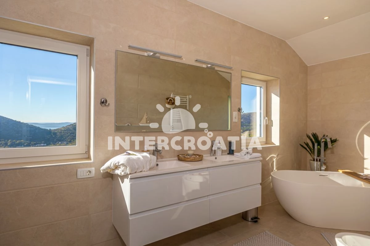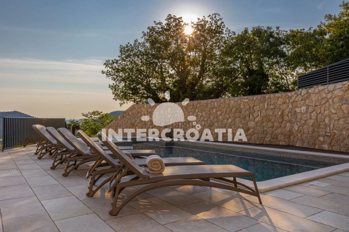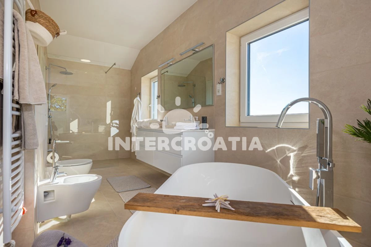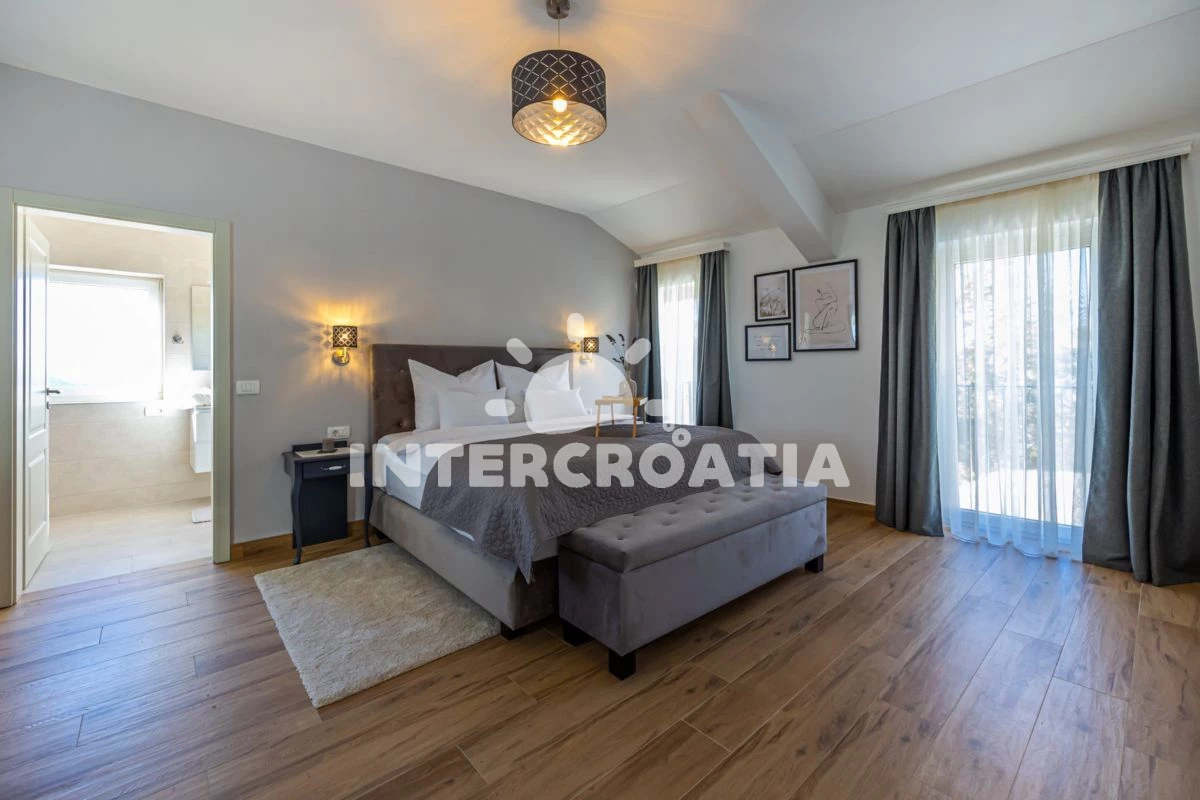 Vila (350 m2). Nachází se ve dvou patrech objektu. Vila má 5 ložnic a je vhodná pro až 10 osob. Kuchyňská linka je vybavena varnou deskou, toustovačem, troubou, kávovarem, myčkou na nádobí, rychlovarnou konvicí, nádobím, lednicí, mrazákem. K dispozici televize, žehlička. První ložnice s dvoulůžkem. Druhá ložnice s dvoulůžkem. Třetí ložnice s dvoulůžkem. Čtvrtá ložnice s dvoulůžkem. Pátá ložnice s dvoulůžkem. První koupelna se sprchovým koutem, umyvadlem, fénem a WC. Druhá koupelna se sprchovým koutem, umyvadlem, fénem a WC. Třetí koupelna se sprchovým koutem, umyvadlem, fénem a WC. Čtvrtá koupelna se sprchovým koutem, umyvadlem, fénem a WC. Pátá koupelna se sprchovým koutem, umyvadlem, fénem a WC.