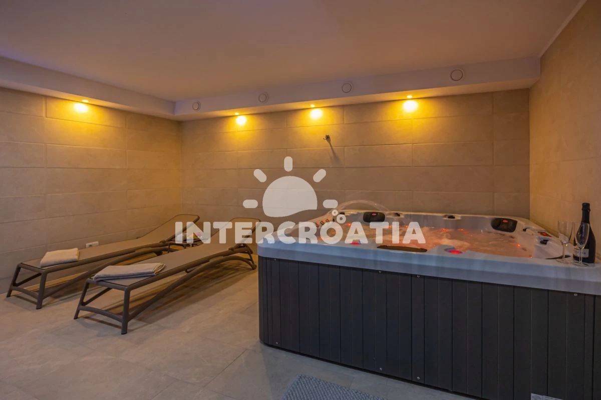 Vila se nachází 4000 m od moře a pláže. Pláž je písčitá, oblázková a větší kamení. Vila disponuje bazénem s lehátky pro ubytované hosty. K dispozici vířivka, posilovna, sauna. U objektu je k dispozici společná zahrada s posezením a grilem. Parkování je před domem.