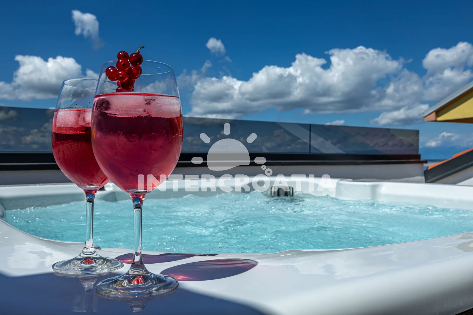 Vila se nachází 1400 m od moře a pláže. Pláž je oblázková a betonové desky. Vila disponuje bazénem s lehátky pro ubytované hosty. K dispozici vířivka, posilovna. U objektu je k dispozici společná zahrada s posezením a grilem. Parkování je před domem.