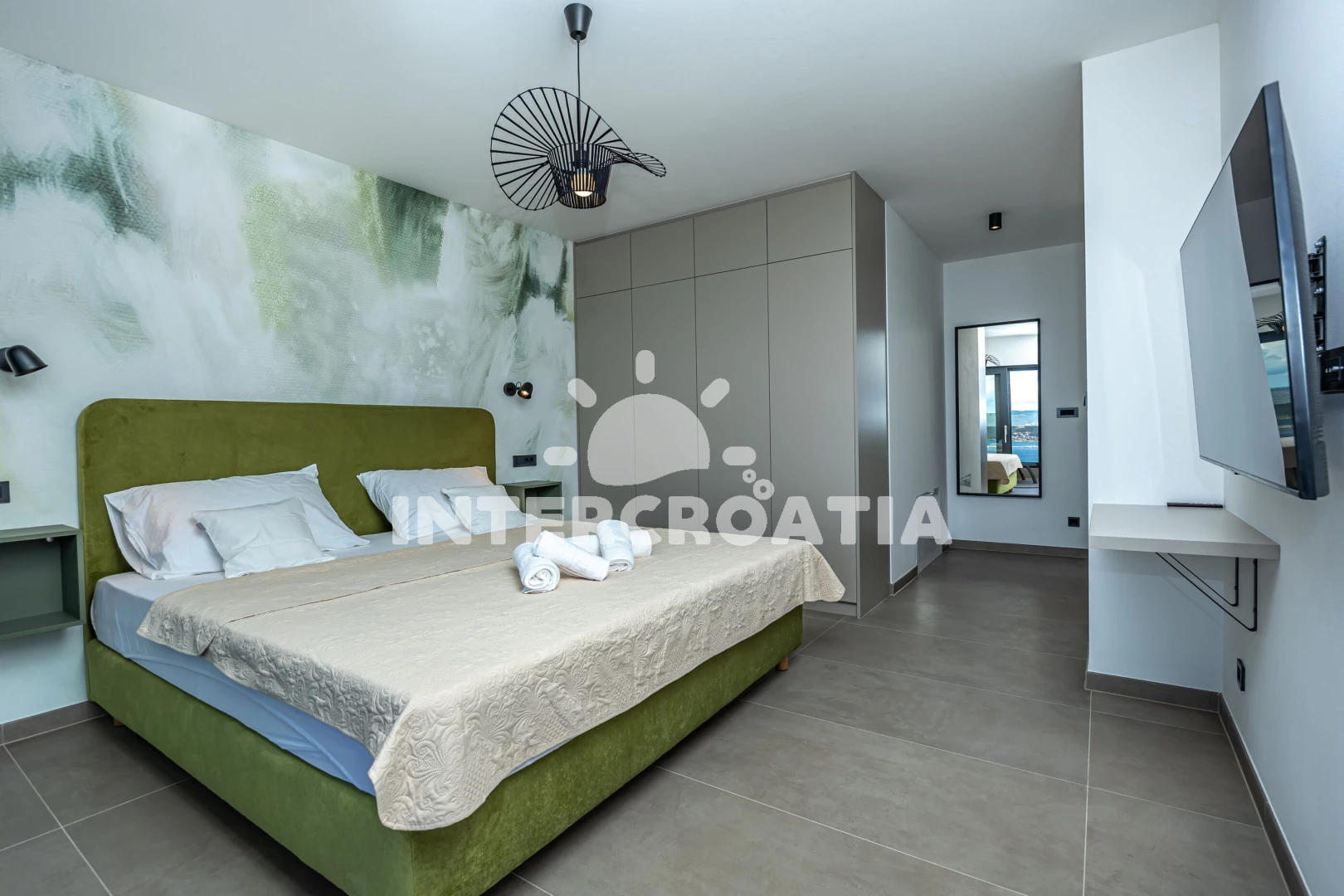 Vila (257 m2) s výhledem na moře. Vila má 4 ložnice a je vhodná pro až 8 osob. Kuchyňská linka je vybavena varnou deskou, troubou, toustovačem, kávovarem, myčkou na nádobí, mikrovlnnou troubou, rychlovarnou konvicí, nádobím, lednicí, mrazákem. K dispozici televize, sejf, žehlička. První ložnice s dvoulůžkem. Druhá ložnice s dvoulůžkem. Třetí ložnice s dvoulůžkem. Čtvrtá ložnice se 2 jednolůžky. První koupelna se sprchovým koutem, umyvadlem, fénem a WC. Druhá koupelna se sprchovým koutem, umyvadlem, fénem a WC. Třetí koupelna s vanou, umyvadlem, fénem a WC. Dále samostatné WC.