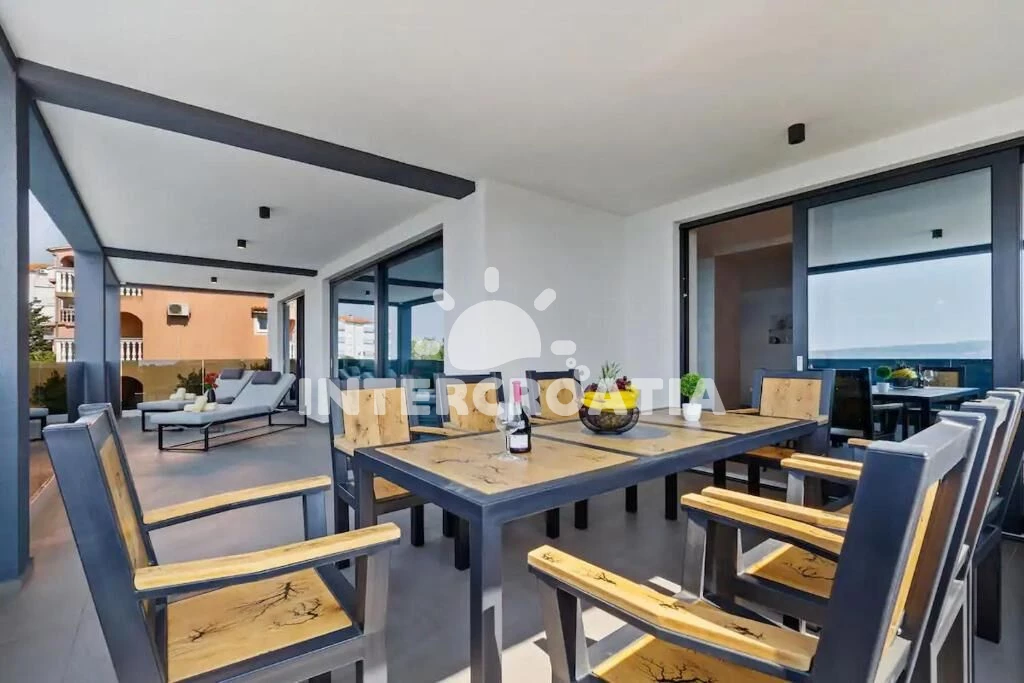 Vila (250 m2) s balkonem, a výhledem na moře. Nachází se v 1. patře objektu. Vila má 4 ložnice a je vhodná pro až 8 osob. Kuchyňská linka je vybavena varnou deskou, troubou, toustovačem, kávovarem, myčkou na nádobí, mikrovlnnou troubou, rychlovarnou konvicí, nádobím, lednicí, mrazákem. K dispozici televize, žehlička. První ložnice s dvoulůžkem. Druhá ložnice s dvoulůžkem. Třetí ložnice s dvoulůžkem. Čtvrtá ložnice s dvoulůžkem. První koupelna se sprchovým koutem, umyvadlem, fénem a WC. Druhá koupelna se sprchovým koutem, umyvadlem, fénem a WC. Třetí koupelna se sprchovým koutem, umyvadlem, fénem a WC. Dále samostatné WC.
