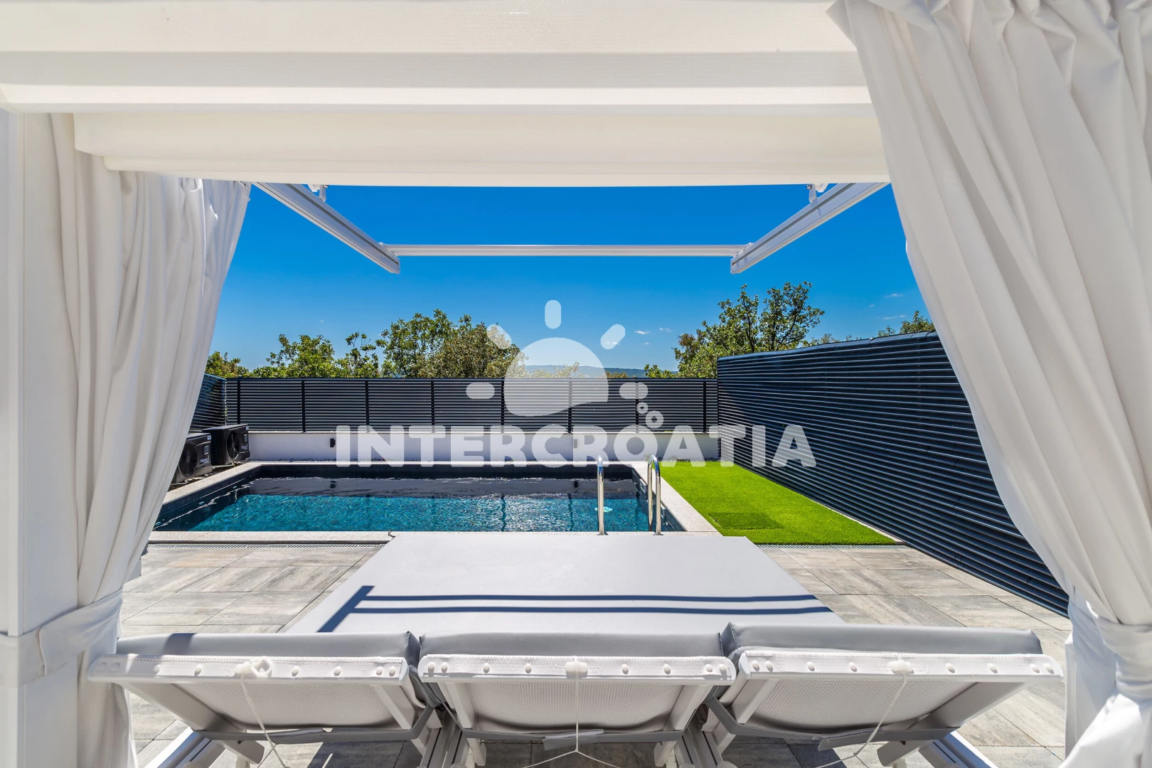 Vila se nachází 500 m od moře a pláže. Pláž je oblázková. Vila disponuje bazénem s lehátky pro ubytované hosty. U objektu je k dispozici společná zahrada s posezením a grilem. Parkování je před domem.