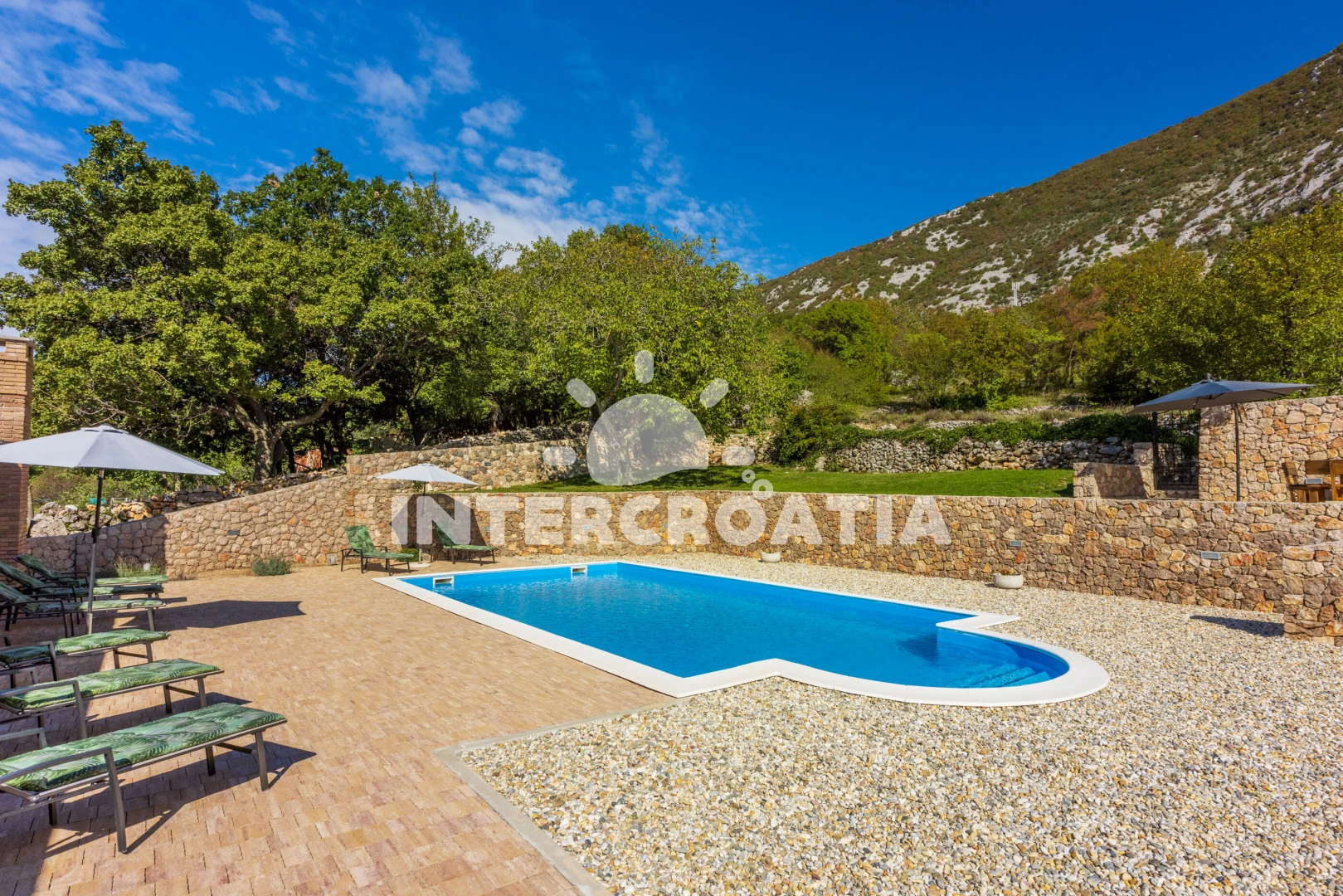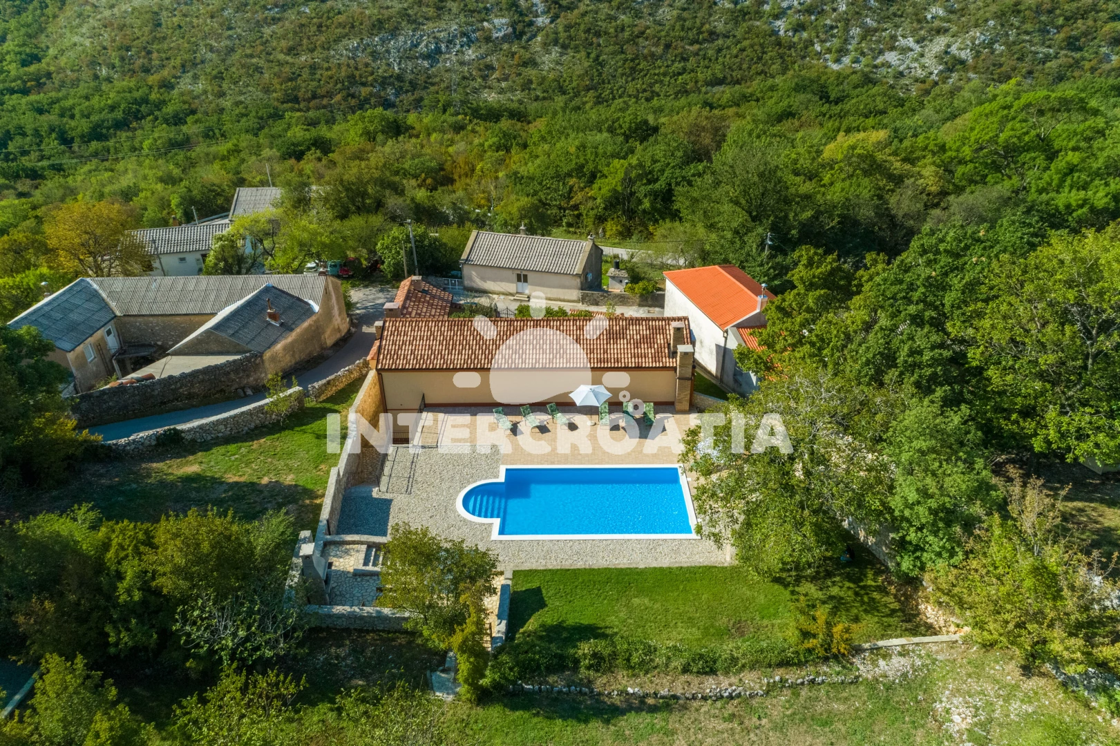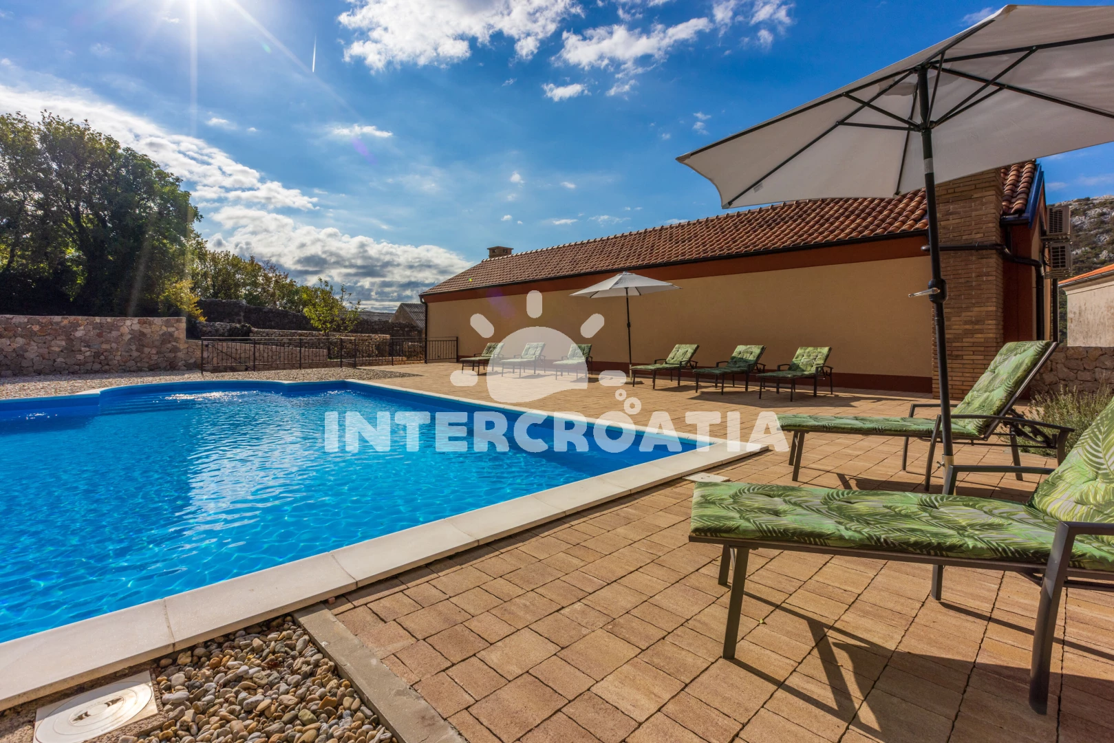 Vila se nachází 12500 m od moře a pláže. Pláž je oblázková. Vila disponuje bazénem s lehátky pro ubytované hosty. U objektu je k dispozici společná zahrada s posezením a grilem. Parkování je před domem.