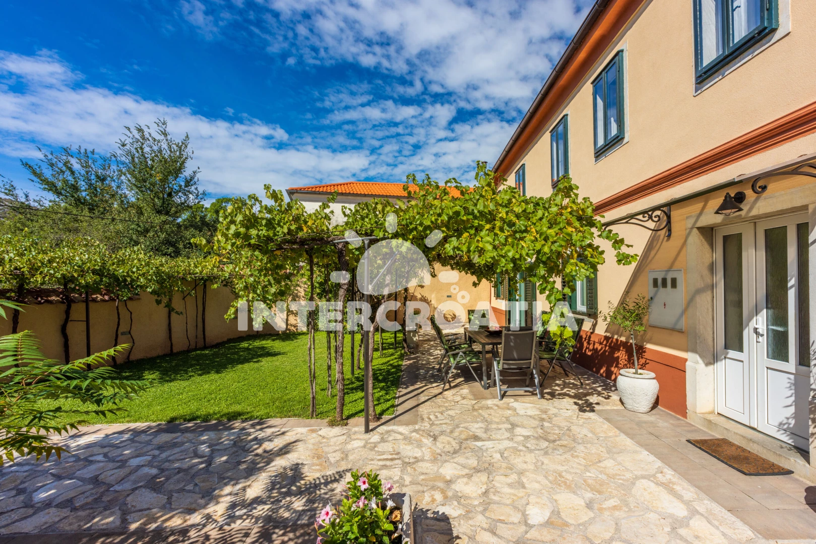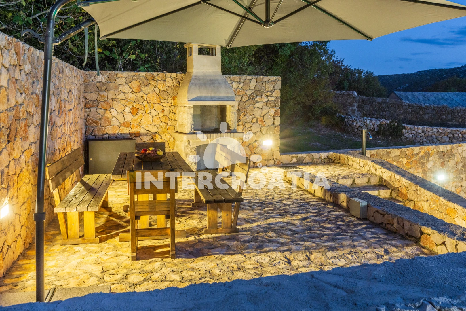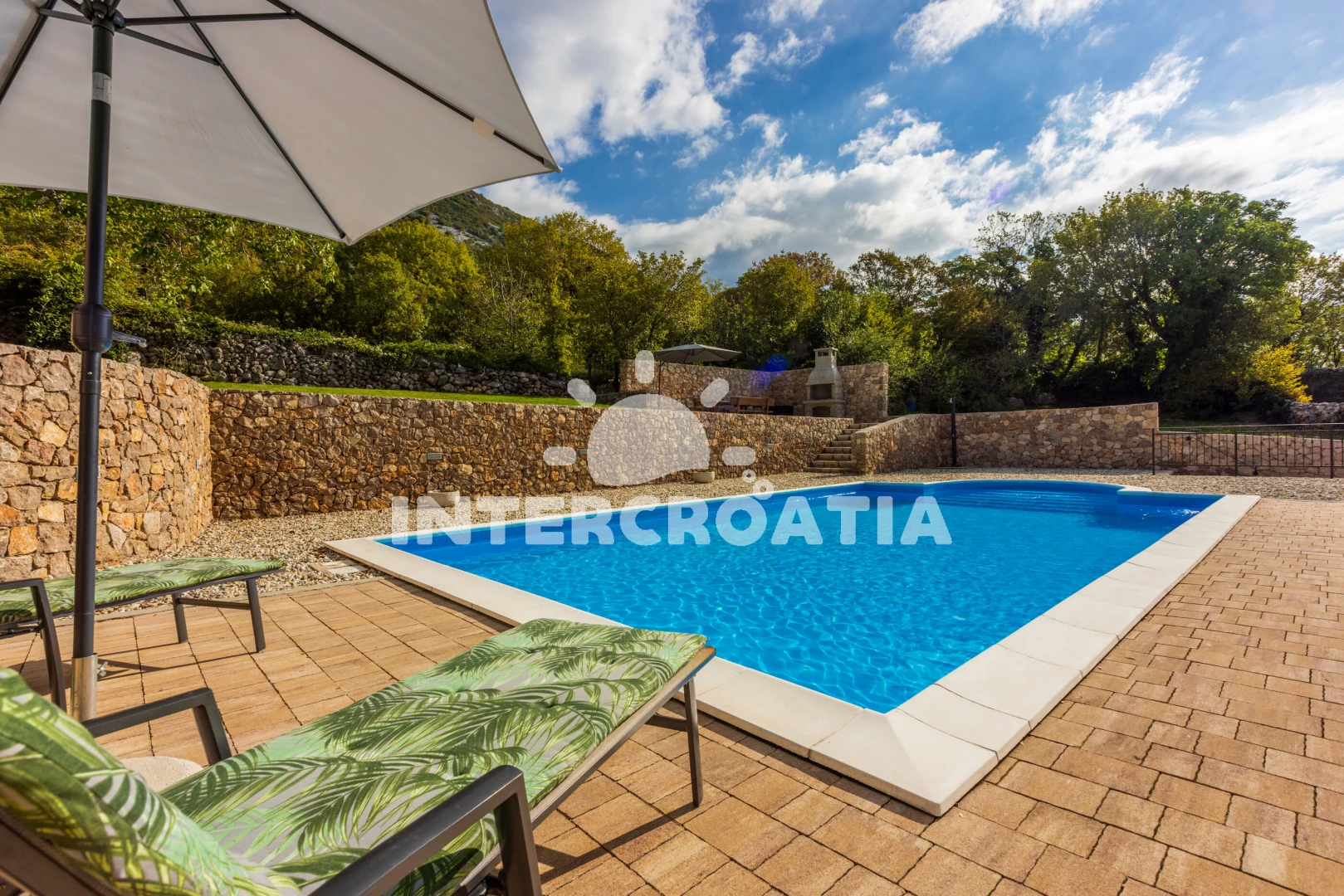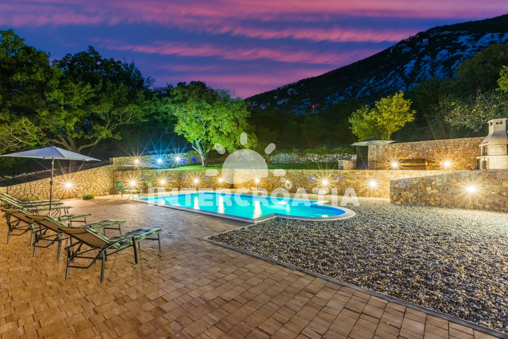 Vila se nachází 12500 m od moře a pláže. Pláž je oblázková. Vila disponuje bazénem s lehátky pro ubytované hosty. U objektu je k dispozici společná zahrada s posezením a grilem. Parkování je před domem.