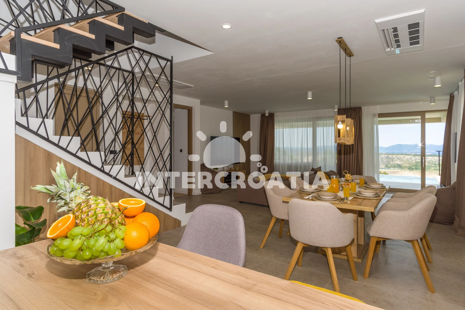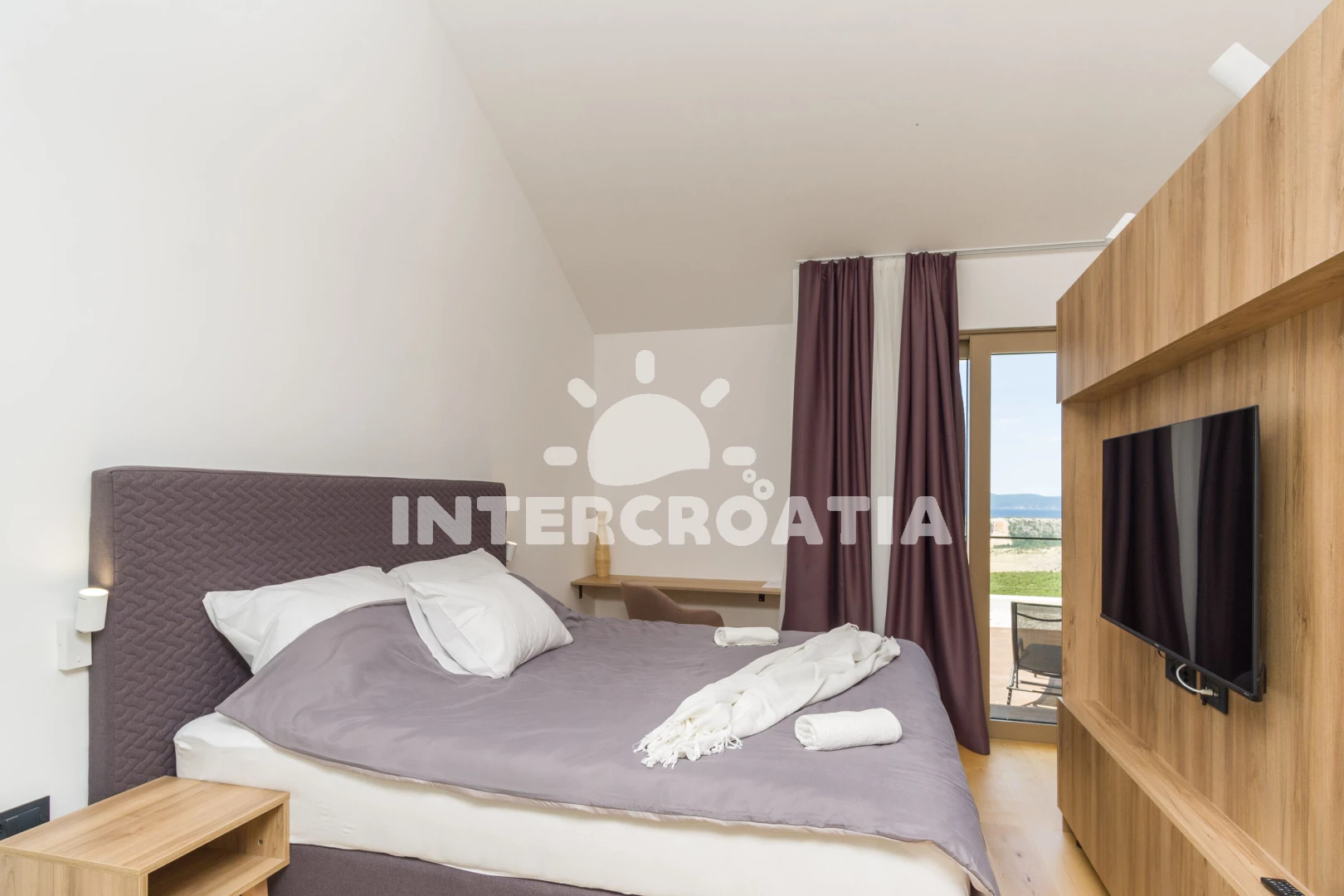 Vila (180 m2) s balkonem. Nachází se ve dvou patrech objektu. Vila má 3 ložnice a je vhodná pro až 7 osob. Kuchyňská linka je vybavena varnou deskou, kávovarem, toustovačem, troubou, myčkou na nádobí, mikrovlnnou troubou, rychlovarnou konvicí, nádobím, lednicí, mrazákem. V obývací místnosti je rozložitelná pohovka (extra lůžko pro 1 osobu). K dispozici televize, žehlička. První ložnice s dvoulůžkem. Druhá ložnice s dvoulůžkem. Třetí ložnice s dvoulůžkem. První koupelna se sprchovým koutem, umyvadlem, fénem a WC. Druhá koupelna se sprchovým koutem, umyvadlem, fénem a WC. Třetí koupelna se sprchovým koutem, umyvadlem, fénem a WC. Čtvrtá koupelna se sprchovým koutem, umyvadlem, fénem a WC. Dále samostatné WC.