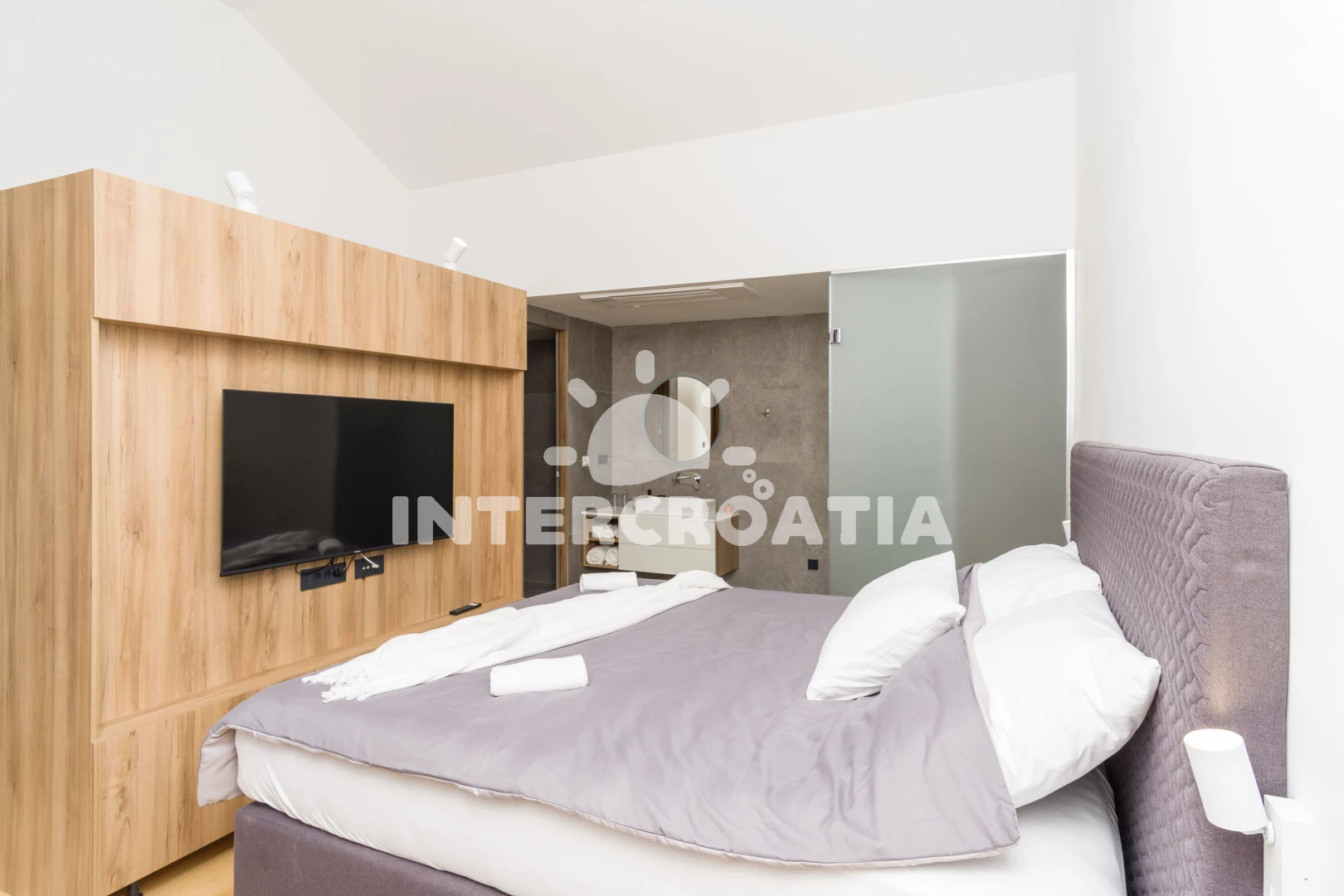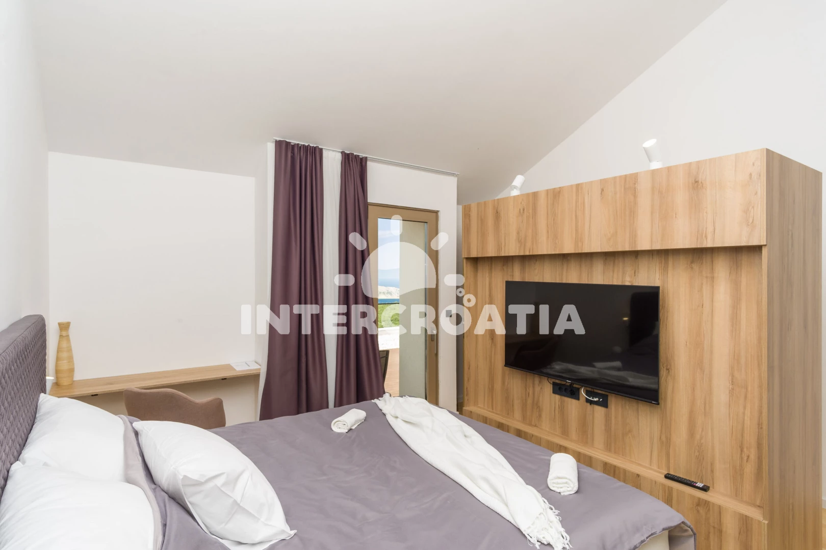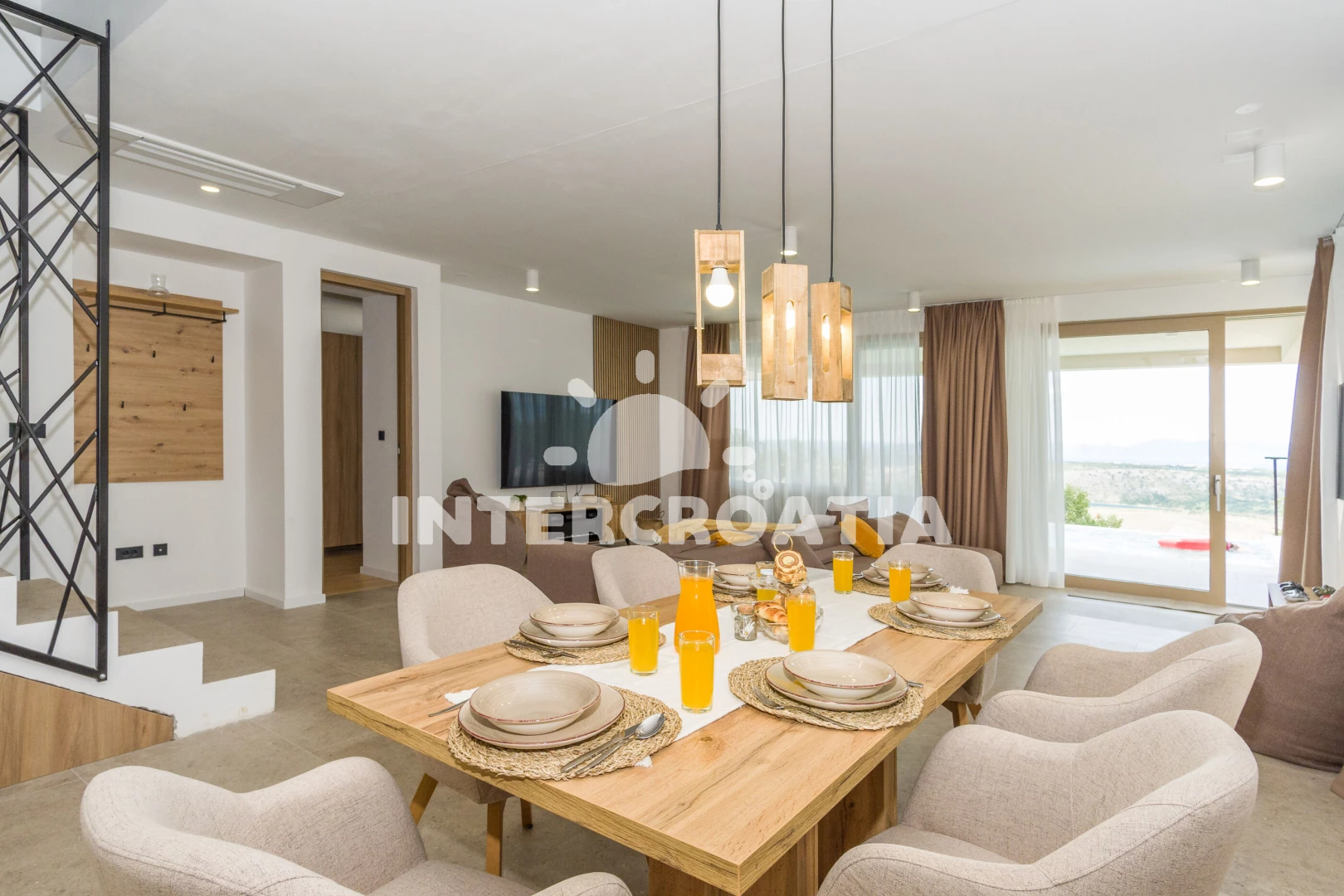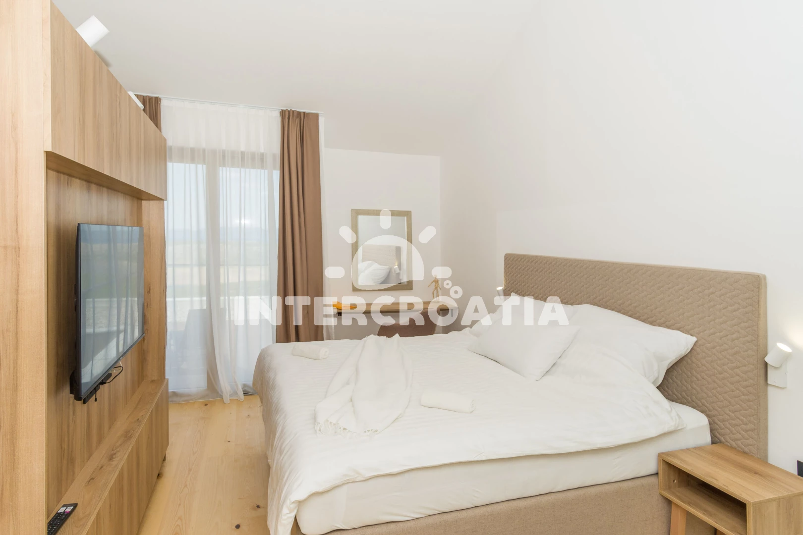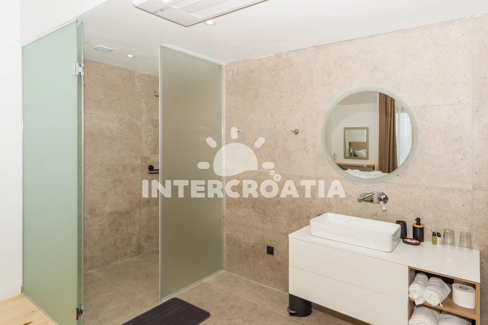 Vila (180 m2) s balkonem. Nachází se ve dvou patrech objektu. Vila má 3 ložnice a je vhodná pro až 7 osob. Kuchyňská linka je vybavena varnou deskou, kávovarem, toustovačem, troubou, myčkou na nádobí…
