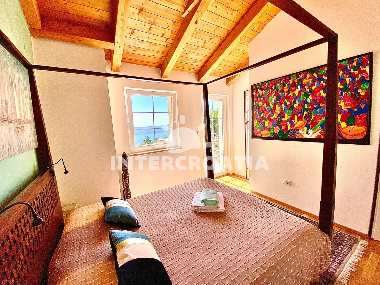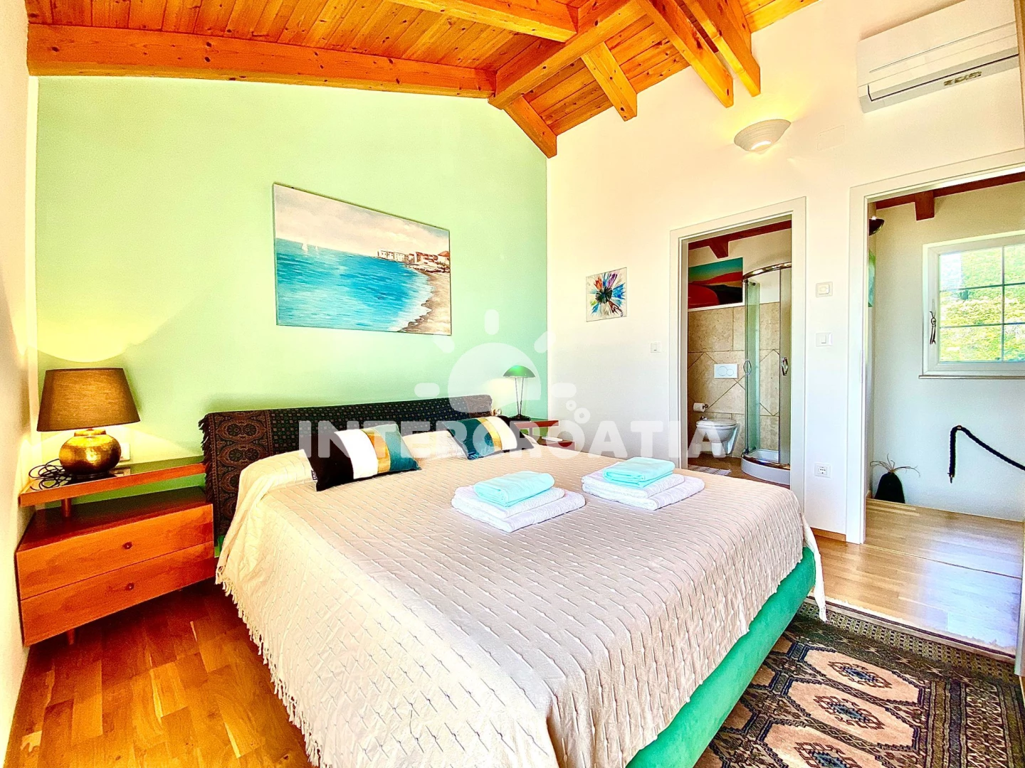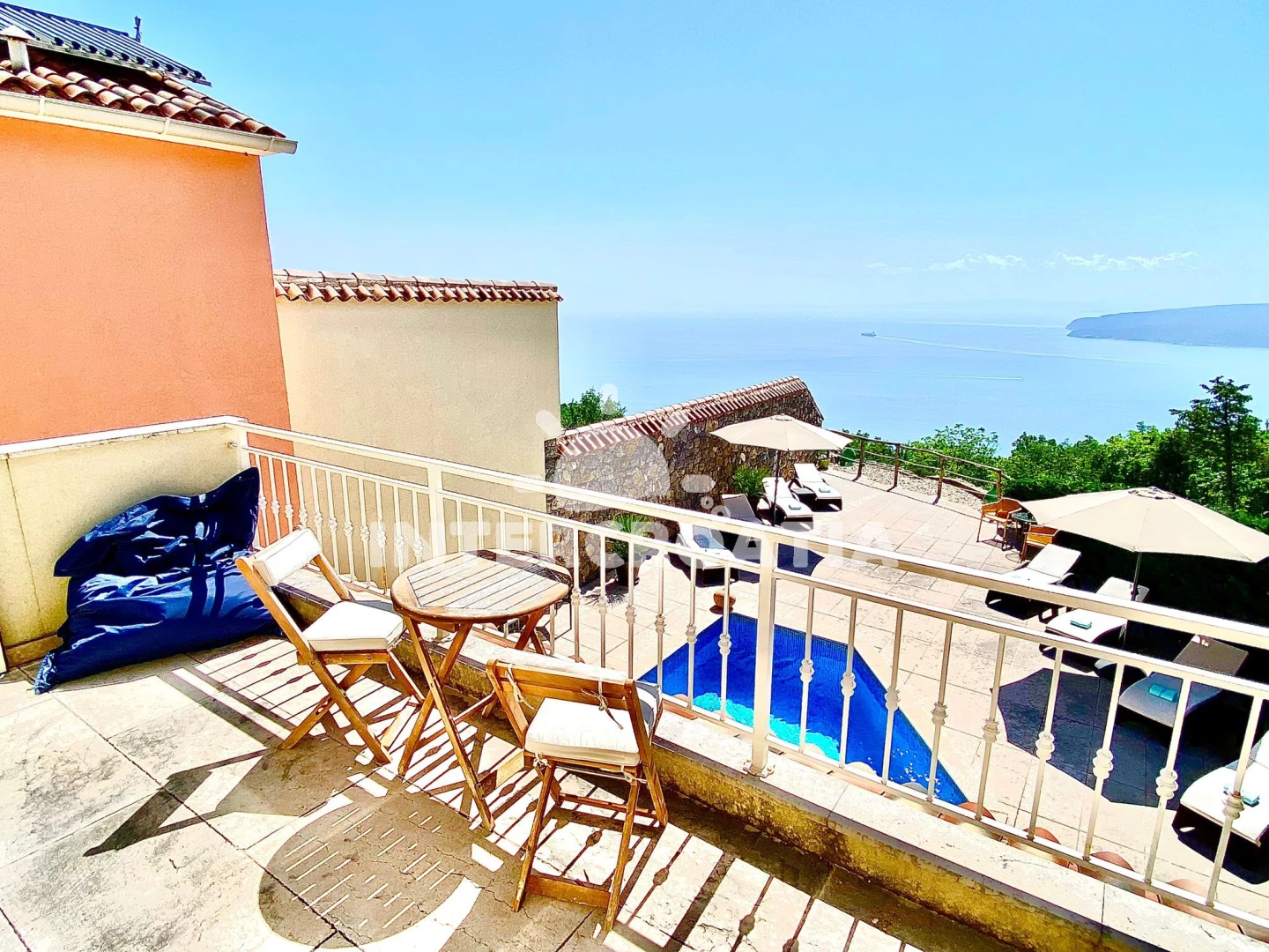 Vila (143 m2) s výhledem na moře. Vila má 3 ložnice a je vhodná pro až 6 osob. Kuchyňská linka je vybavena varnou deskou, troubou, toustovačem, nádobím, lednicí. K dispozici televize se satelitním programem, žehlička. První ložnice s dvoulůžkem. Druhá ložnice s dvoulůžkem. Třetí ložnice s dvoulůžkem. První koupelna se sprchovým koutem, umyvadlem, fénem a WC. Druhá koupelna se sprchovým koutem, umyvadlem, fénem a WC.