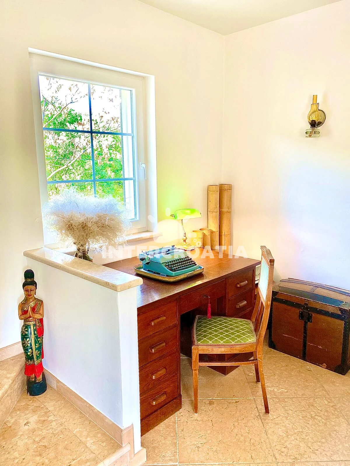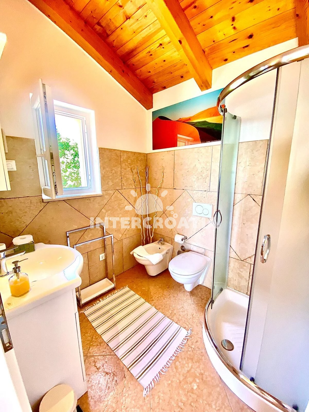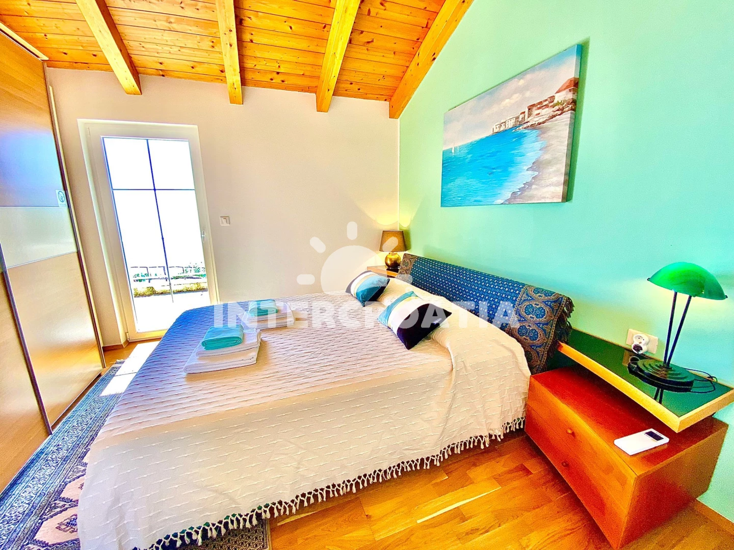 Vila (143 m2) s výhledem na moře. Vila má 3 ložnice a je vhodná pro až 6 osob. Kuchyňská linka je vybavena varnou deskou, troubou, toustovačem, nádobím, lednicí. K dispozici televize se satelitním programem, žehlička. První ložnice s dvoulůžkem. Druhá ložnice s dvoulůžkem. Třetí ložnice s dvoulůžkem. První koupelna se sprchovým koutem, umyvadlem, fénem a WC. Druhá koupelna se sprchovým koutem, umyvadlem, fénem a WC.