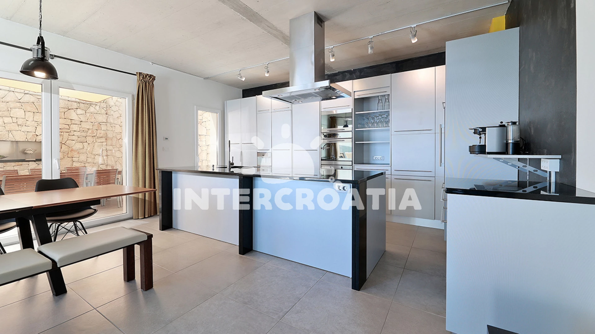 Vila se nachází 3500 m od moře a pláže. Pláž je skalnatá, oblázková a větší kamení. Vila disponuje bazénem s lehátky pro ubytované hosty. U objektu je k dispozici společná zahrada s posezením a grilem. Parkování je před domem.