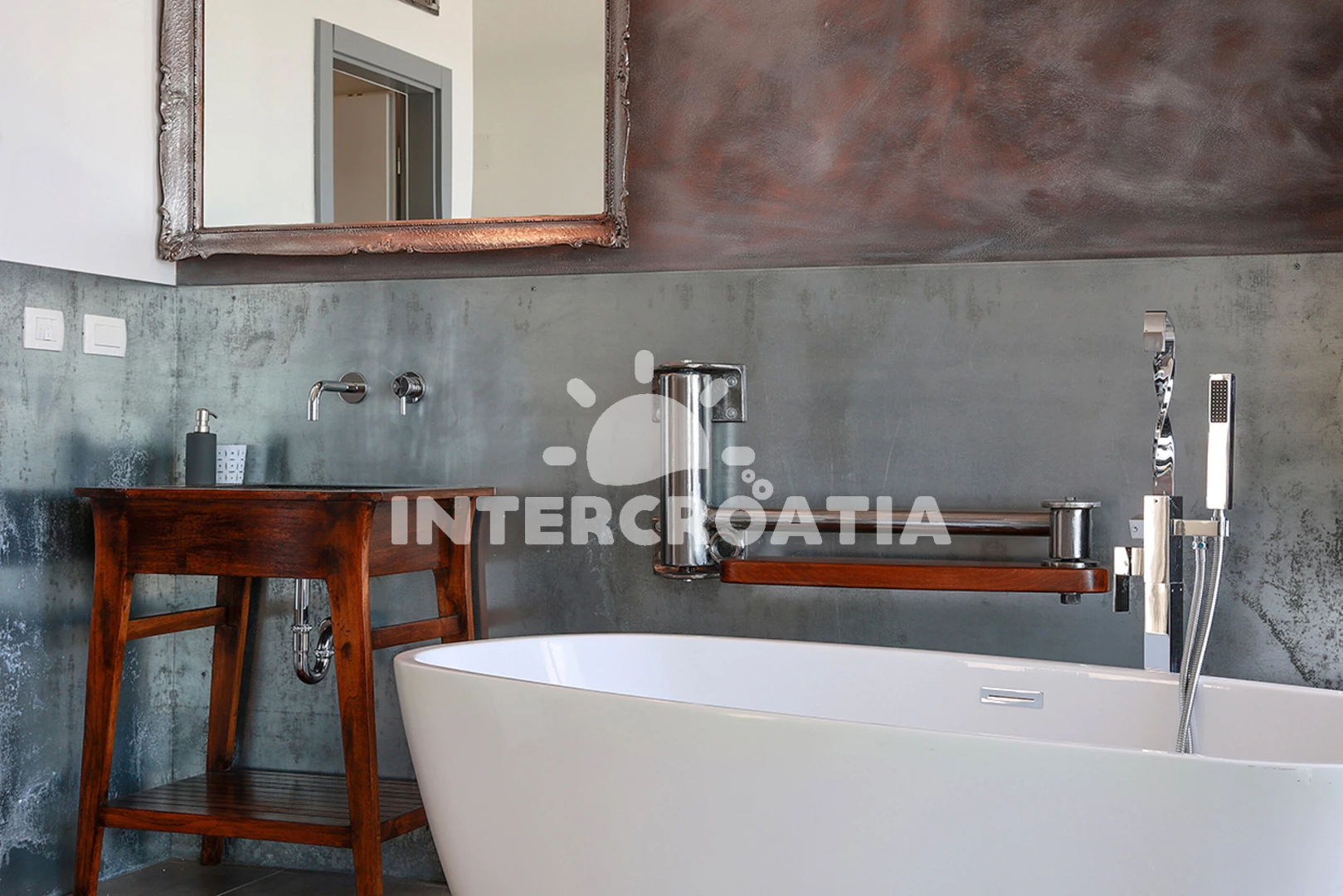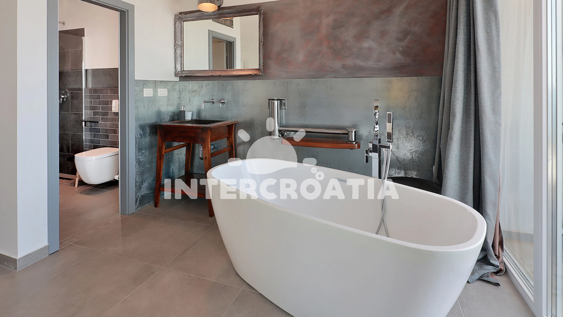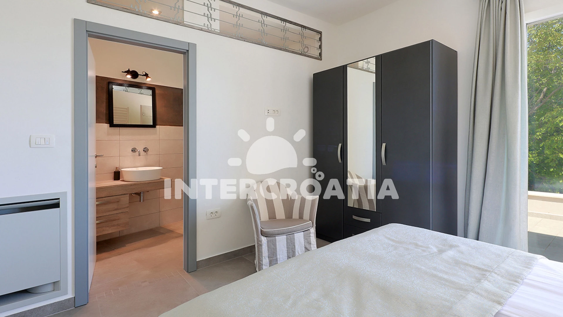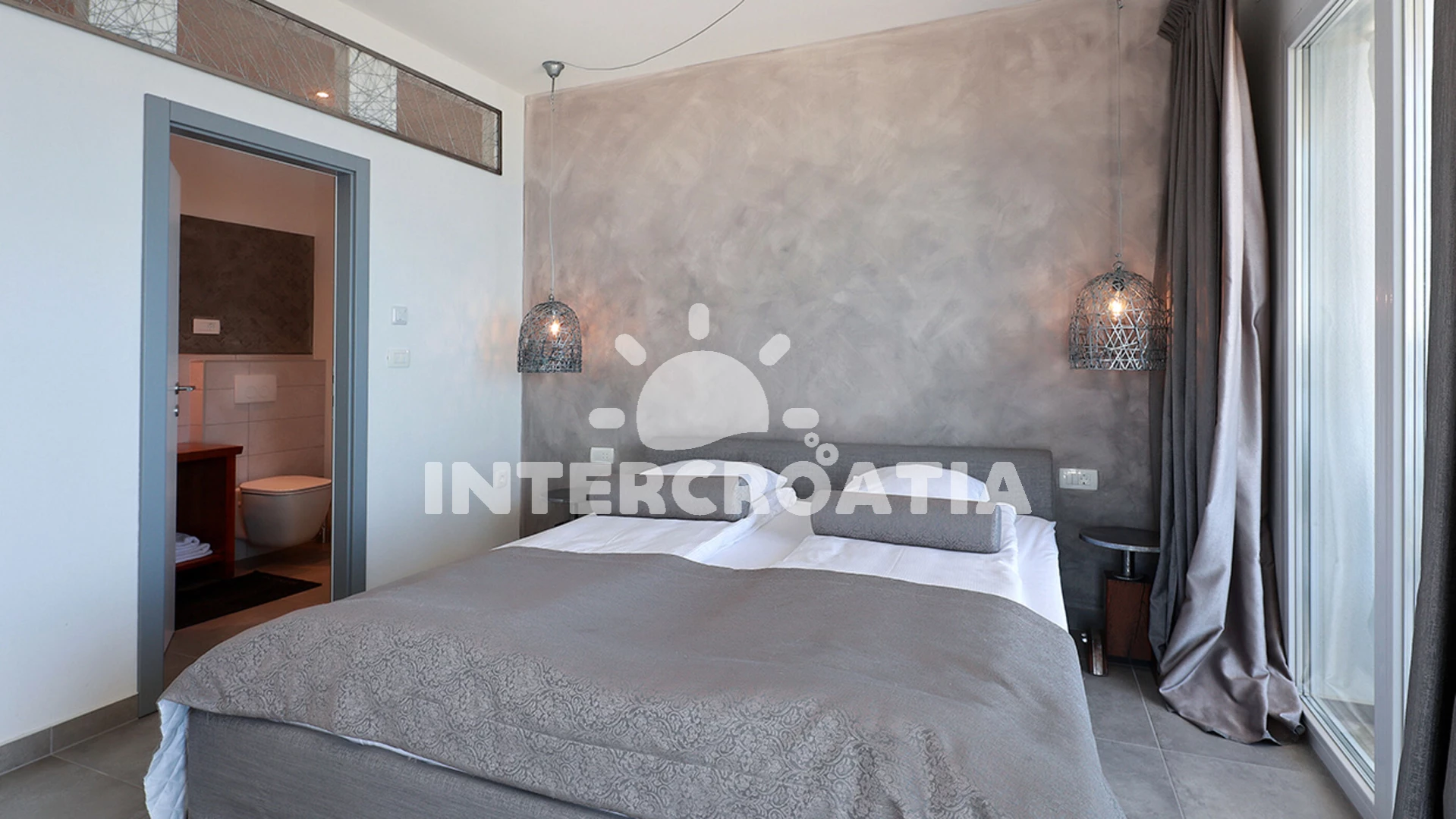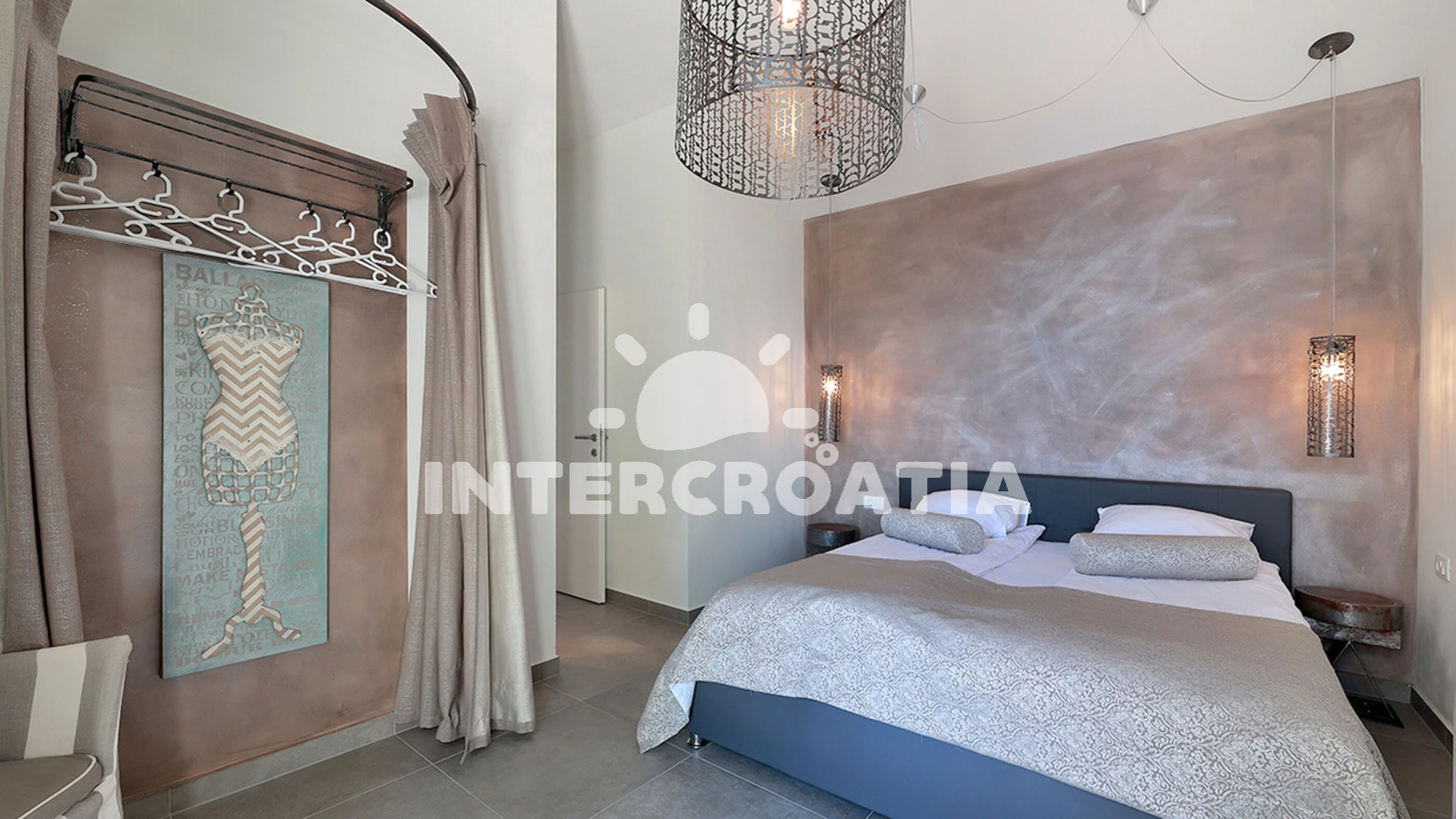 Vila (400 m2) s balkonem, a výhledem na moře. Vila má 1 ložnici a je vhodná pro až 10 osob. Kuchyňská linka je vybavena varnou deskou, toustovačem, kávovarem, troubou, myčkou na nádobí, mikrovlnnou troubou, rychlovarnou konvicí, nádobím, lednicí, mrazákem. K dispozici televize se satelitním programem, žehlička. První koupelna se sprchovým koutem, umyvadlem, fénem a WC. Druhá koupelna se sprchovým koutem, umyvadlem, fénem a WC. Třetí koupelna se sprchovým koutem, umyvadlem, fénem a WC. Čtvrtá koupelna se sprchovým koutem, umyvadlem, fénem a WC. Pátá koupelna se sprchovým koutem, umyvadlem, fénem a WC. Šestá koupelna s vanou, umyvadlem, fénem a WC. Dále samostatné WC.