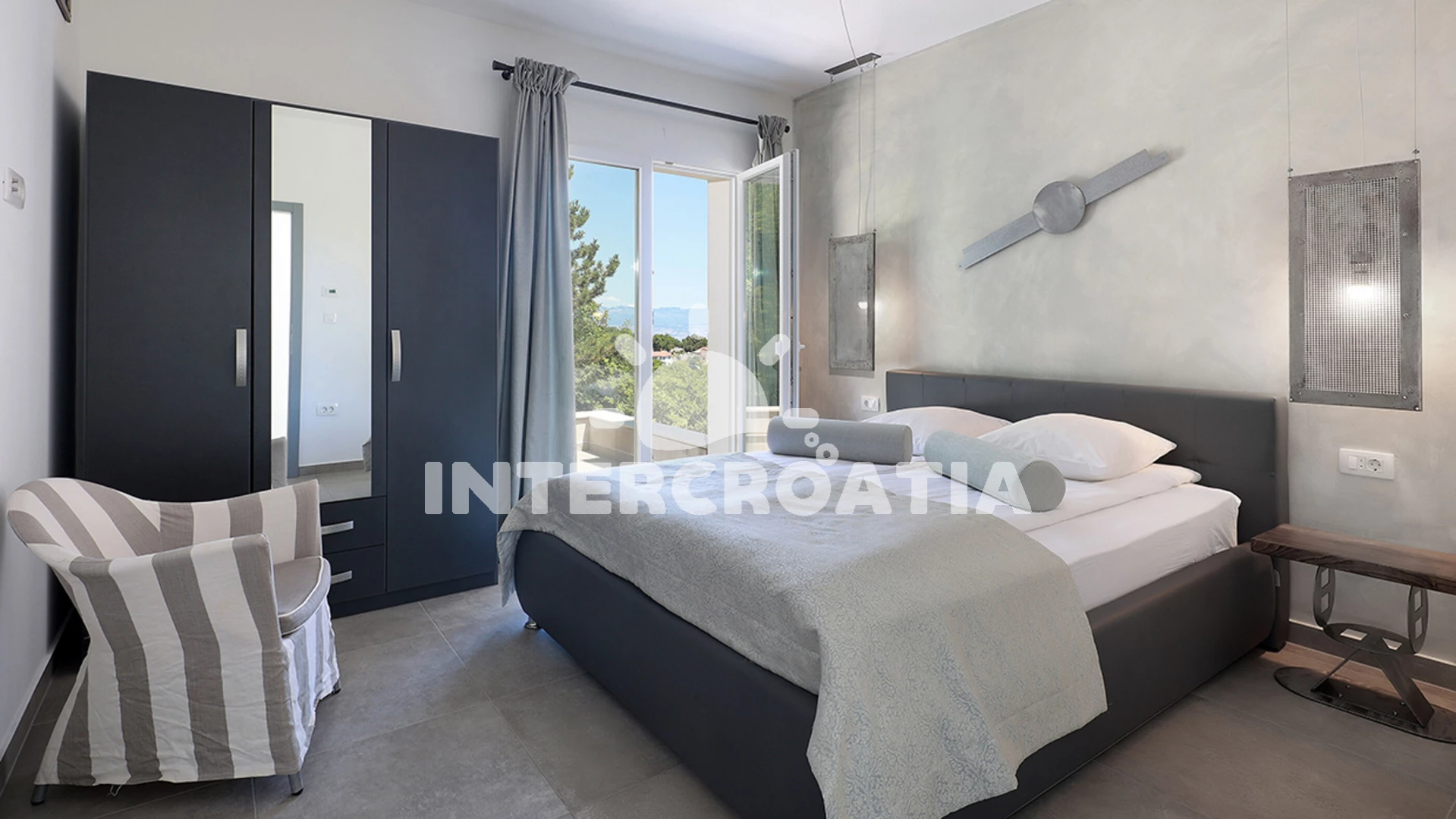 Vila (400 m2) s balkonem, a výhledem na moře. Vila má 1 ložnici a je vhodná pro až 10 osob. Kuchyňská linka je vybavena varnou deskou, toustovačem, kávovarem, troubou, myčkou na nádobí, mikrovlnnou…