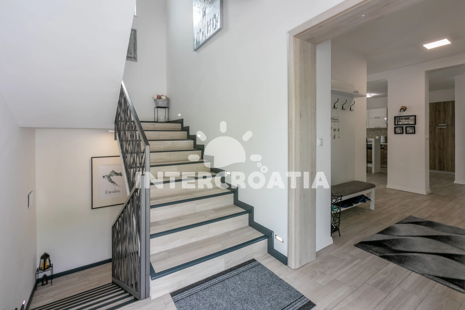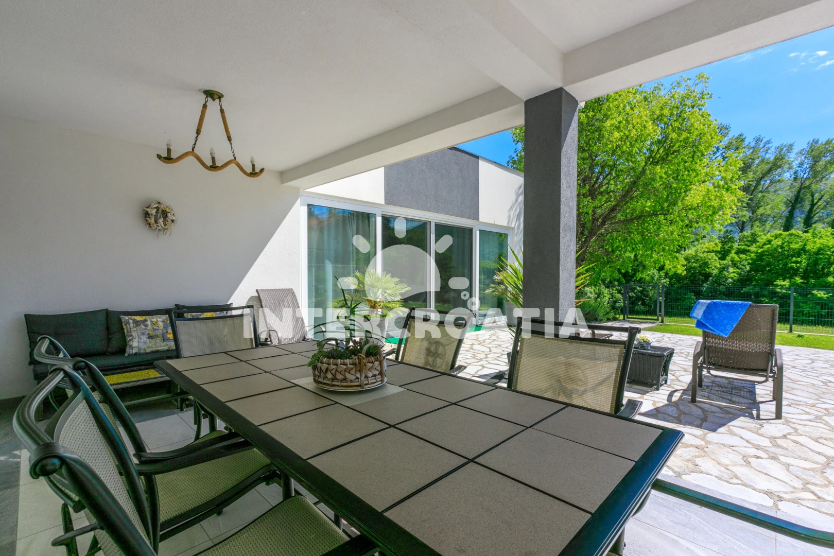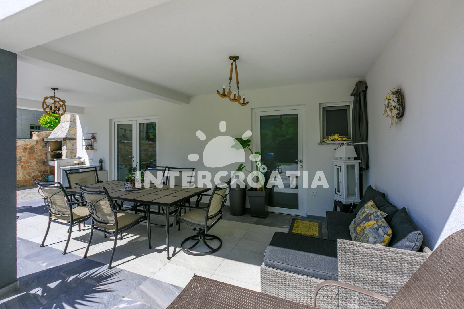 Vzdálenosti: Moře 3,5 km, pláž 5 km (skalnatá a oblázková), veřejná doprava 500 m, bar 800 m, centrum 800 m, pošta 800 m, supermarket 800 m, restaurace 1 km, muzeum 5 km, ambulance 5 km, banka 5 km, půjčovna motorových člunů 6 km, čerpací stanice 6 km, směnárna 6 km, půjčovna kol 6 km, potápění 6 km, diskotéka 6 km, marina 6 km, lékárna 6 km, kotviště pro čluny 6 km, tenisové kurty 8 km, letiště (Rijeka) 16 km, trajekt (Rijeka) 26 km, park Plitvice 44 km,