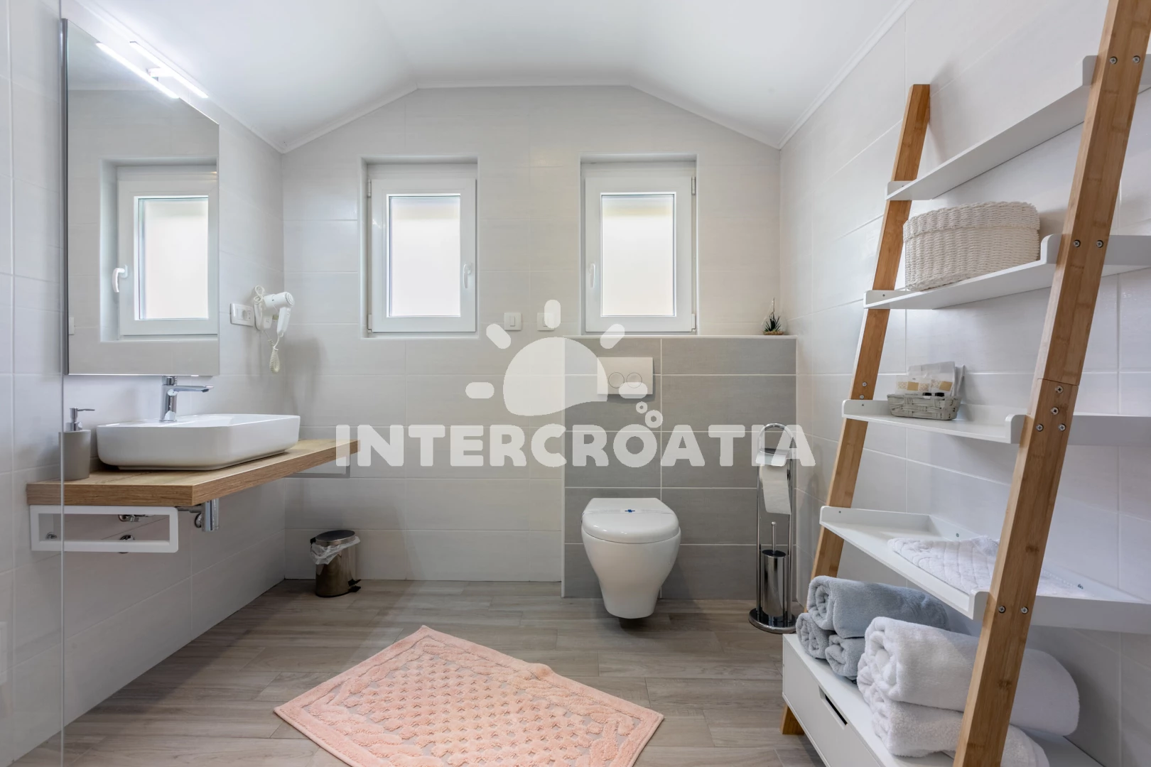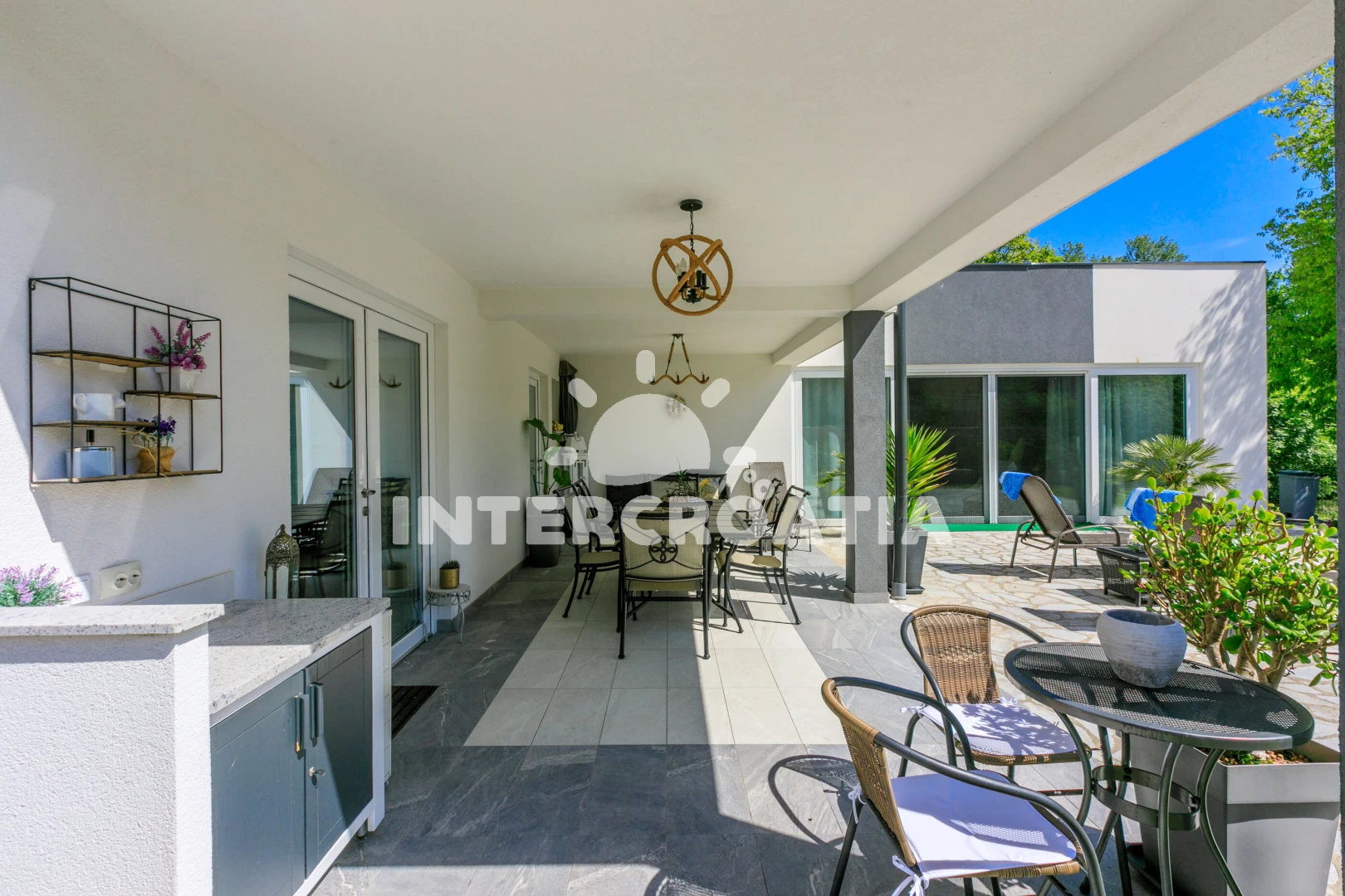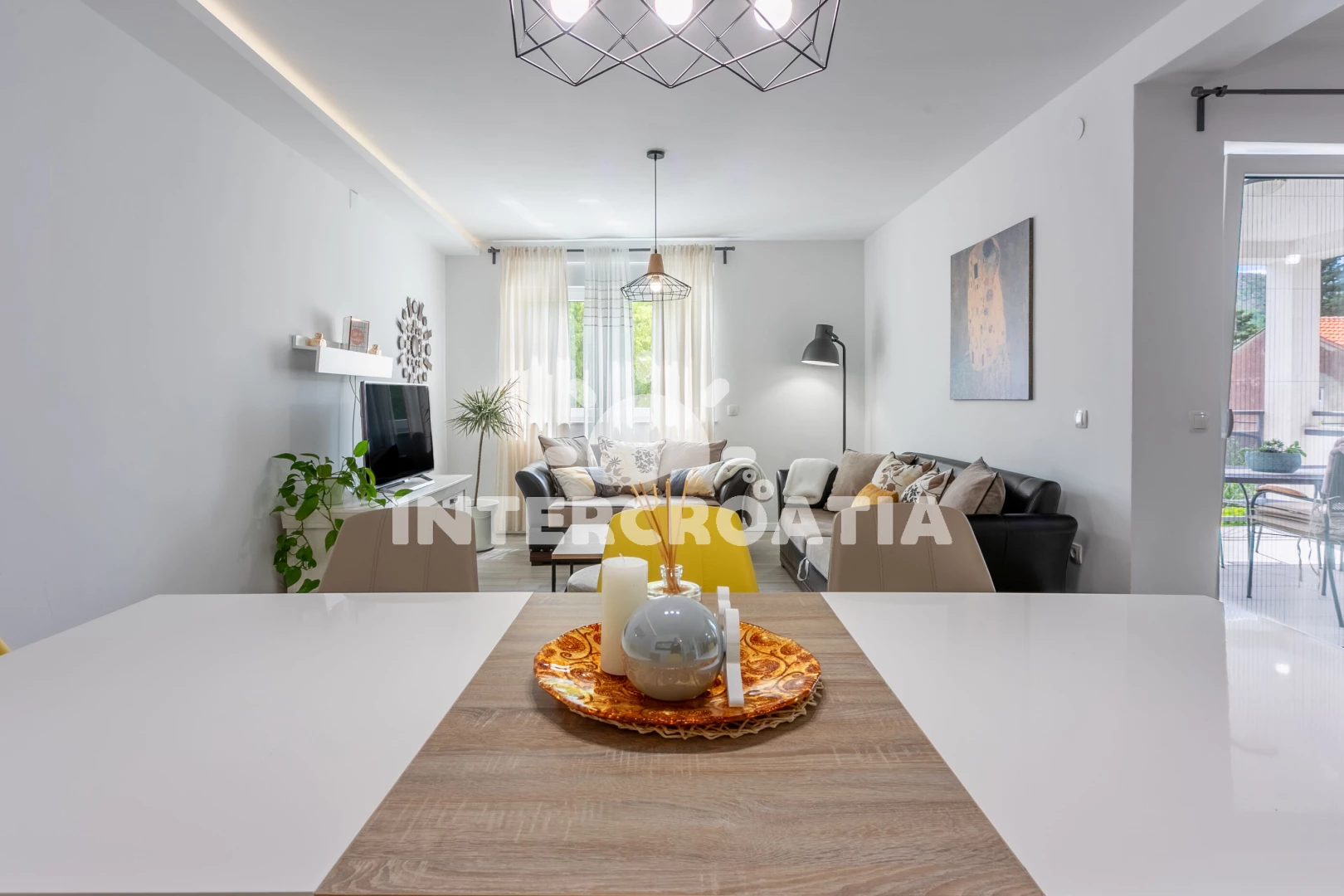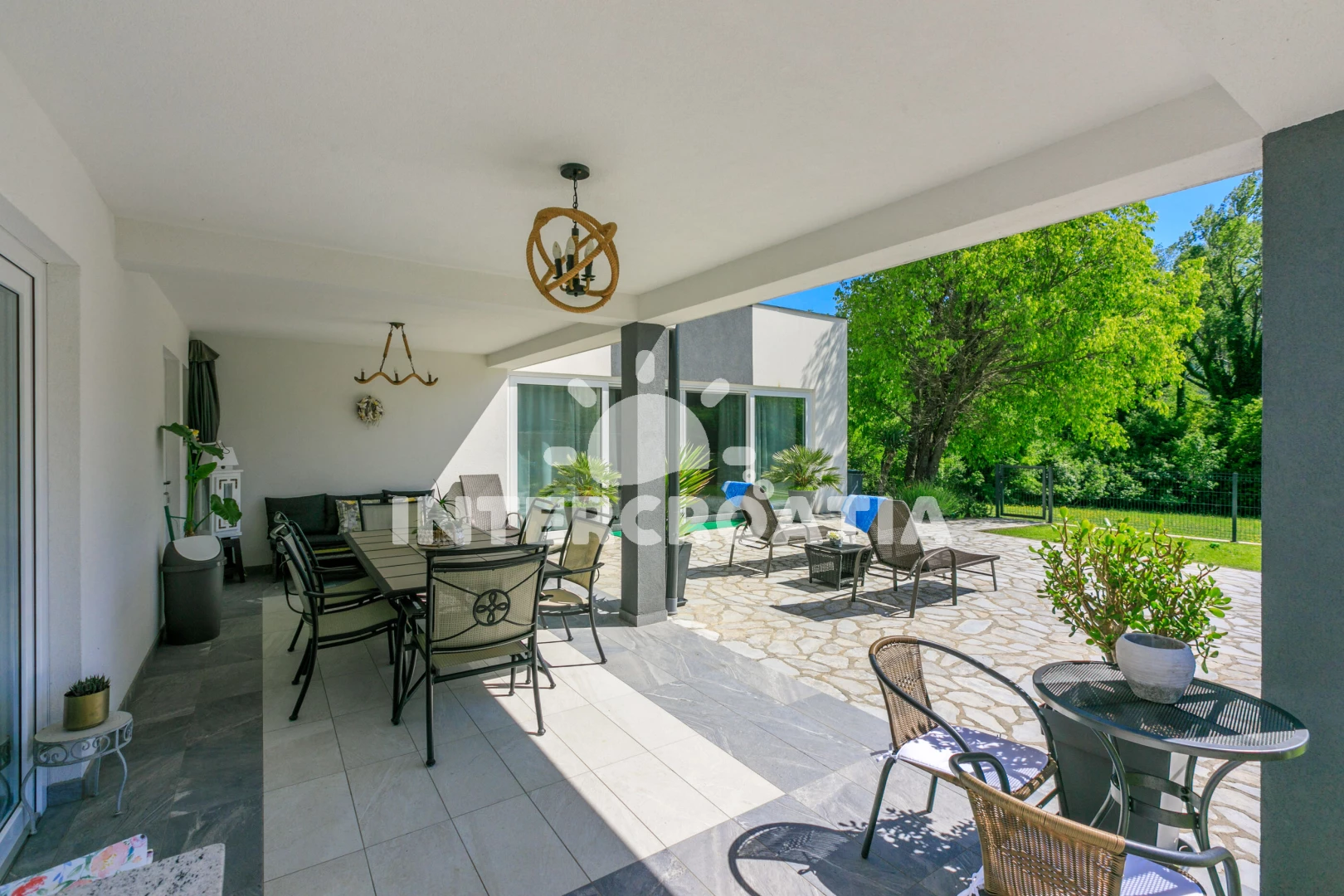 Vzdálenosti: Moře 3,5 km, pláž 5 km (skalnatá a oblázková), veřejná doprava 500 m, bar 800 m, centrum 800 m, pošta 800 m, supermarket 800 m, restaurace 1 km, muzeum 5 km, ambulance 5 km, banka 5 km, půjčovna motorových člunů 6 km, čerpací stanice 6 km, směnárna 6 km, půjčovna kol 6 km, potápění 6 km, diskotéka 6 km, marina 6 km, lékárna 6 km, kotviště pro čluny 6 km, tenisové kurty 8 km, letiště (Rijeka) 16 km, trajekt (Rijeka) 26 km, park Plitvice 44 km,