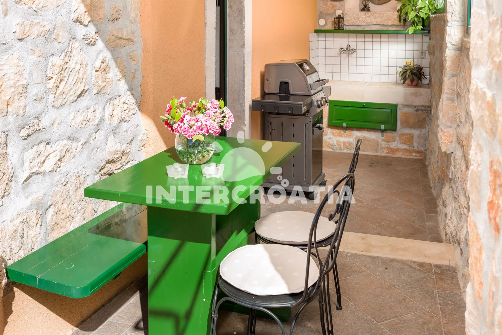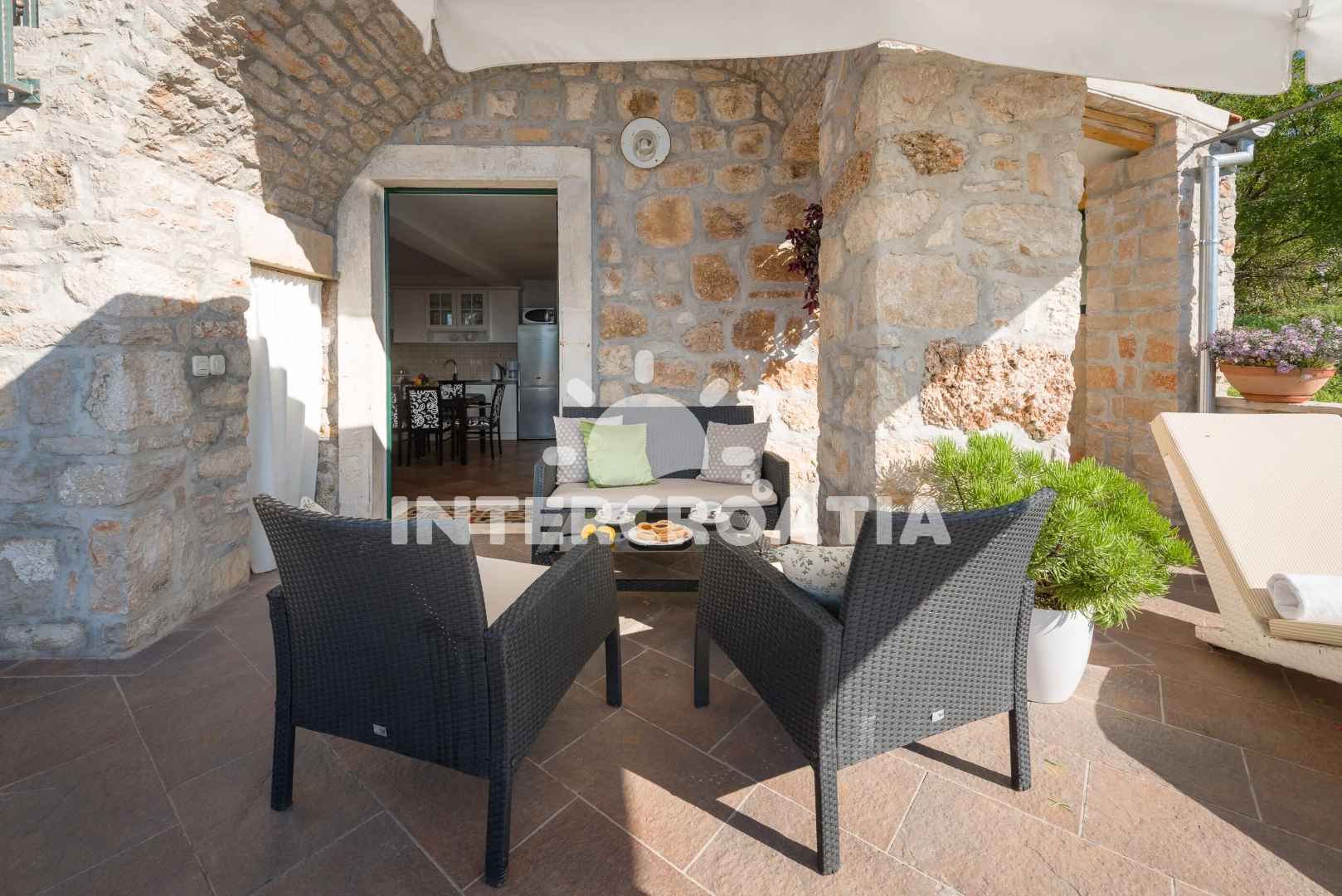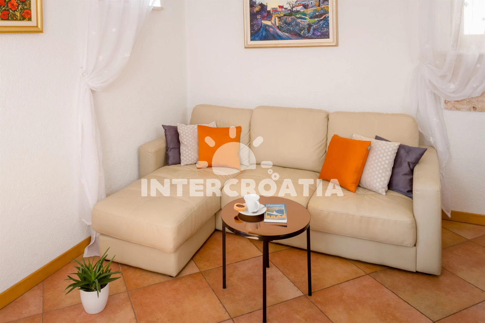Vzdálenosti: Moře 1,2 km, pláž 300 m (oblázková a větší kamení), restaurace 50 m, supermarket 150 m, bar 200 m, směnárna 300 m, ambulance 300 m, centrum 300 m, lékárna 400 m, banka 400 m, pošta 400 m, čerpací stanice 400 m, veřejná doprava 500 m, půjčovna motorových člunů 500 m, letiště (Bol (otok Brač)) 1,2 km, potápění 2 km, půjčovna kol 3 km, diskotéka 5 km, trajekt (Supetar) 36 km,