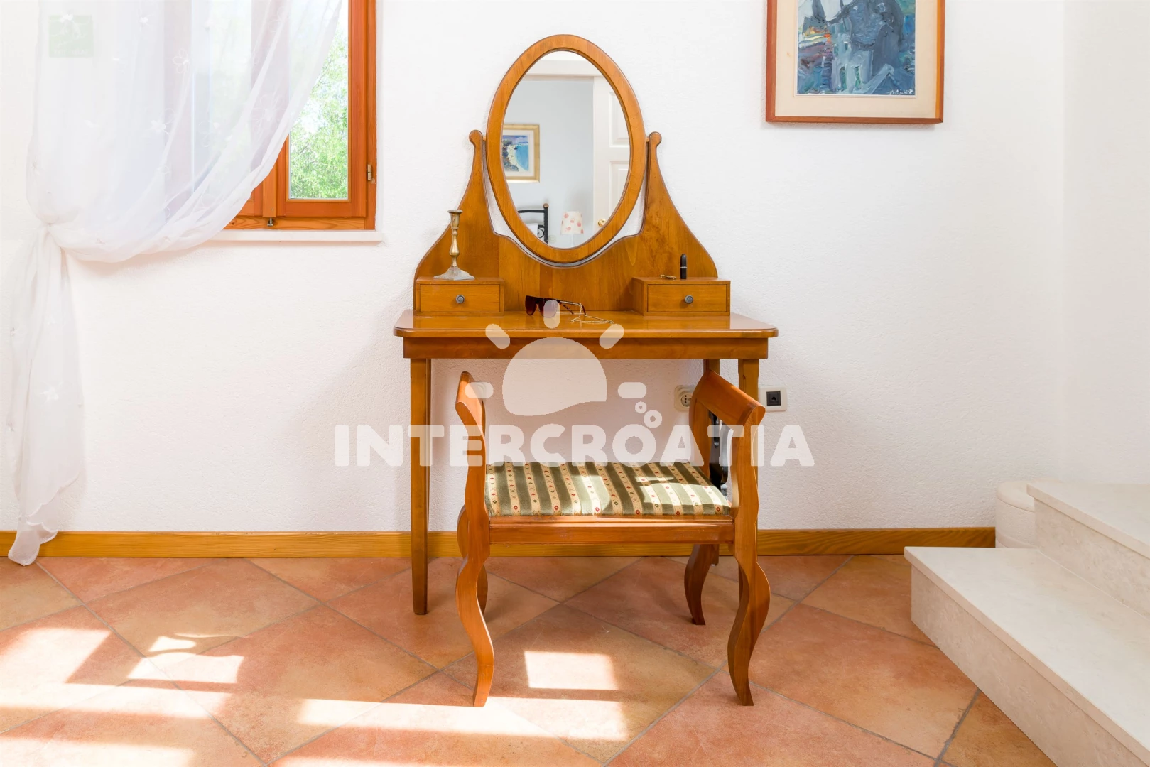 Vila (90 m2) s balkonem, a výhledem na moře. Nachází se ve dvou patrech objektu. Vila má 2 ložnice a je vhodná pro až 4 osoby. Kuchyňská linka je vybavena varnou deskou, troubou, kávovarem, toustovačem, myčkou na nádobí, mikrovlnnou troubou, rychlovarnou konvicí, nádobím, lednicí. K dispozici televize se satelitním programem, sejf, radio, žehlička. První ložnice s dvoulůžkem. Druhá ložnice se 2 jednolůžky. První koupelna se sprchovým koutem, umyvadlem, fénem a WC. Druhá koupelna se sprchovým koutem, umyvadlem, fénem a WC. Hostům je k dispozici parkování u objektu zdarma.