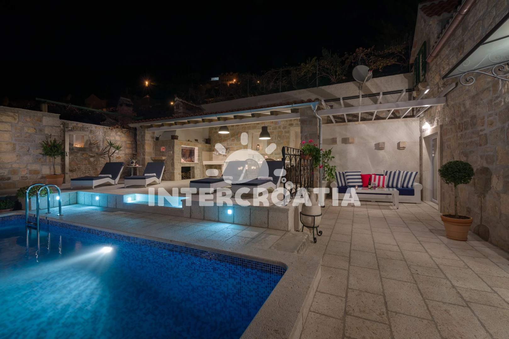 Vzdálenosti: Moře 250 m, pláž 250 m (oblázky), bar 100 m, restaurace 150 m, centrum 5 km, tenisové kurty 5 km, supermarket 5 km, čerpací stanice 5 km, ambulance 5 km, lékárna 5 km, směnárna 5 km, pošta 5 km, diskotéka 6 km, muzeum 10 km, letiště (Bol (otok Brač)) 18,5 km, trajekt (Supetar) 40 km,