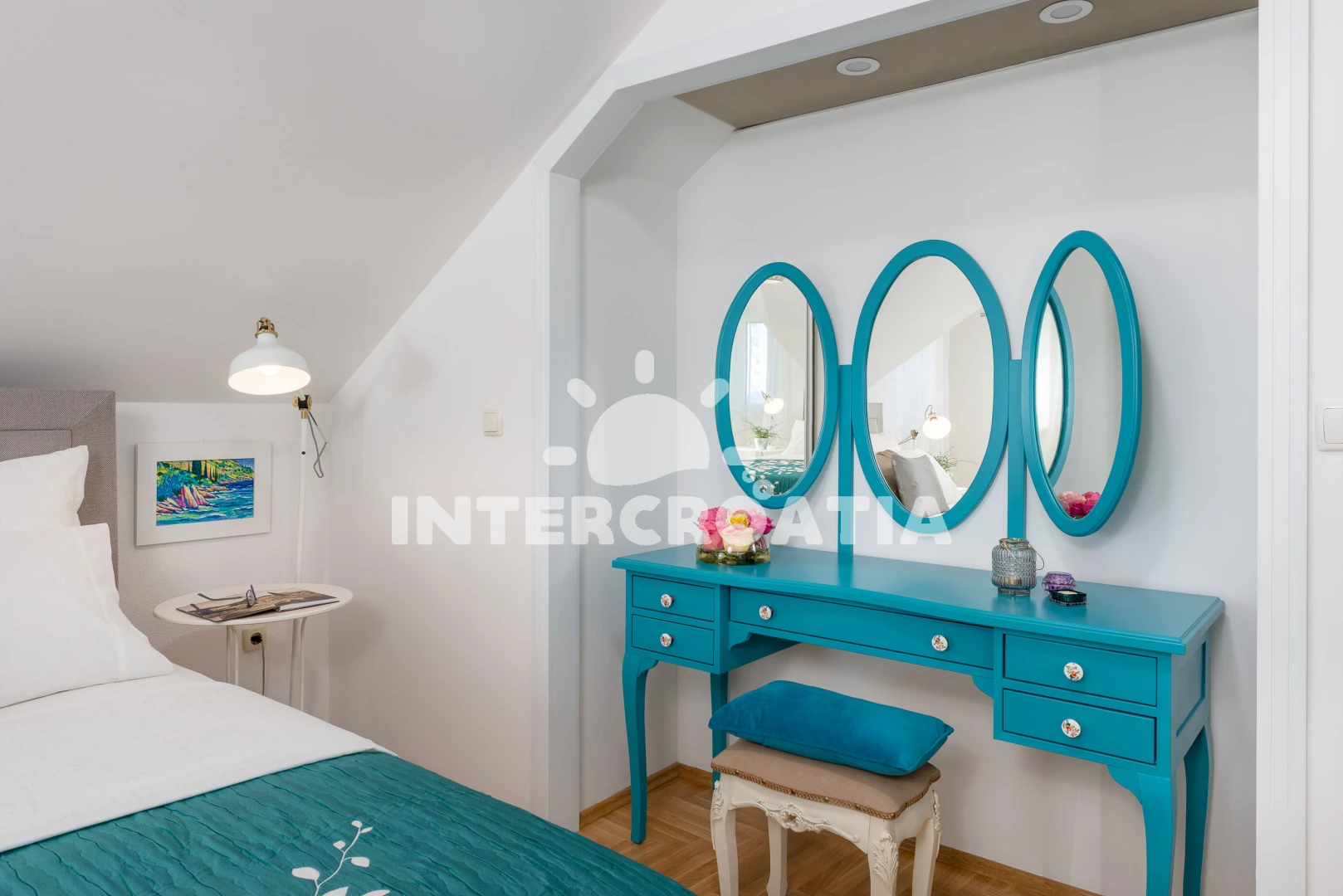 Vila (120 m2) s balkonem, a výhledem na moře. Nachází se ve dvou patrech objektu. Vila má 3 ložnice a je vhodná pro až 6 osob. Kuchyňská linka je vybavena varnou deskou, kávovarem, troubou, toustovačem, myčkou na nádobí, mikrovlnnou troubou, rychlovarnou konvicí, nádobím, lednicí, mrazákem. K dispozici televize, sejf, žehlička. První ložnice s dvoulůžkem. Druhá ložnice s dvoulůžkem. Třetí ložnice se 2 jednolůžky. První koupelna se sprchovým koutem, umyvadlem, fénem a WC. Druhá koupelna se sprchovým koutem, umyvadlem, fénem a WC. Třetí koupelna se sprchovým koutem, umyvadlem, fénem a WC.