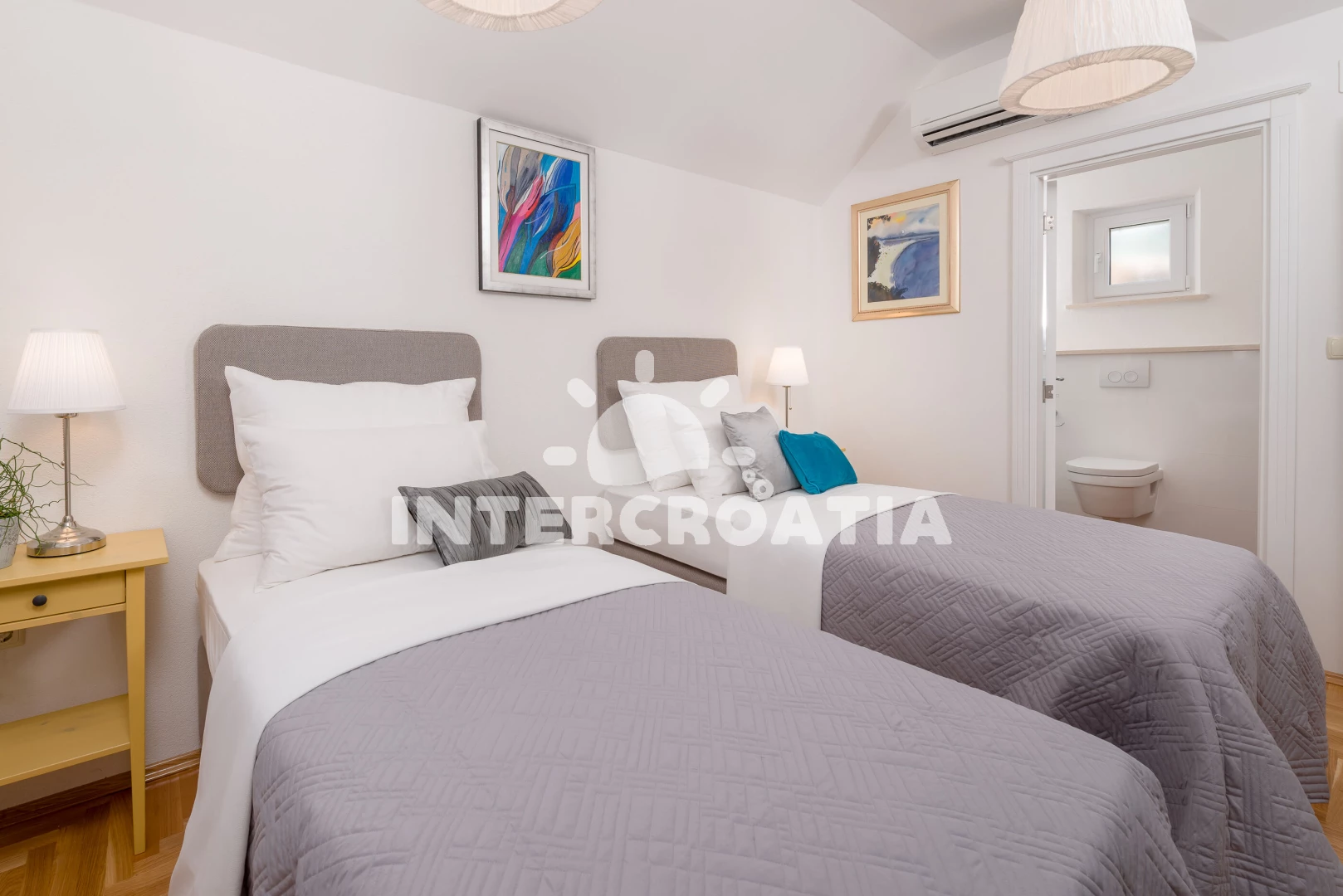 Vila (120 m2) s balkonem, a výhledem na moře. Nachází se ve dvou patrech objektu. Vila má 3 ložnice a je vhodná pro až 6 osob. Kuchyňská linka je vybavena varnou deskou, kávovarem, troubou,…