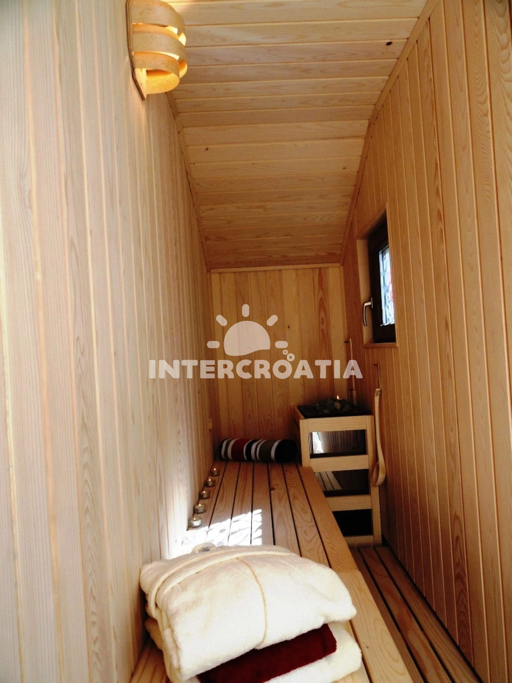 Vila se nachází 900 m od moře a pláže. Pláž je oblázková. Vila disponuje bazénem s lehátky pro ubytované hosty. K dispozici sauna. U objektu je k dispozici společná zahrada s posezením a grilem.