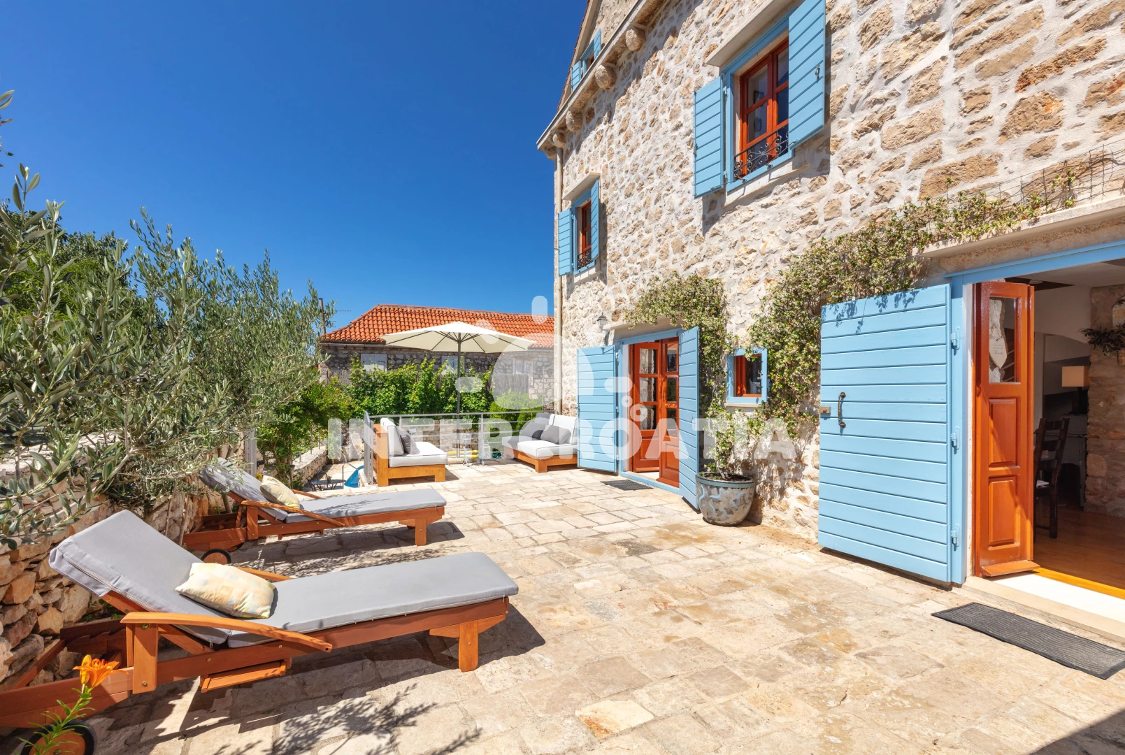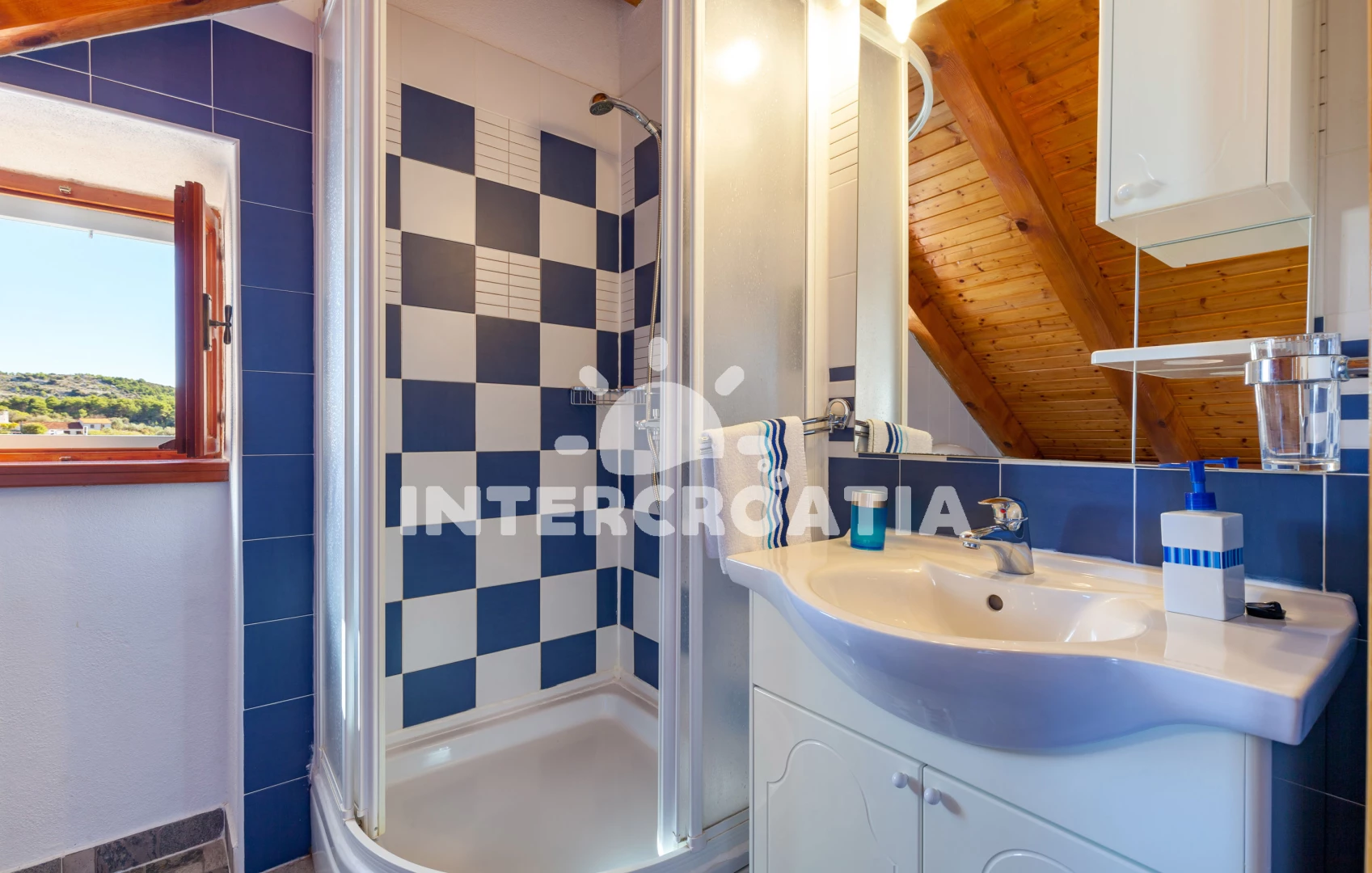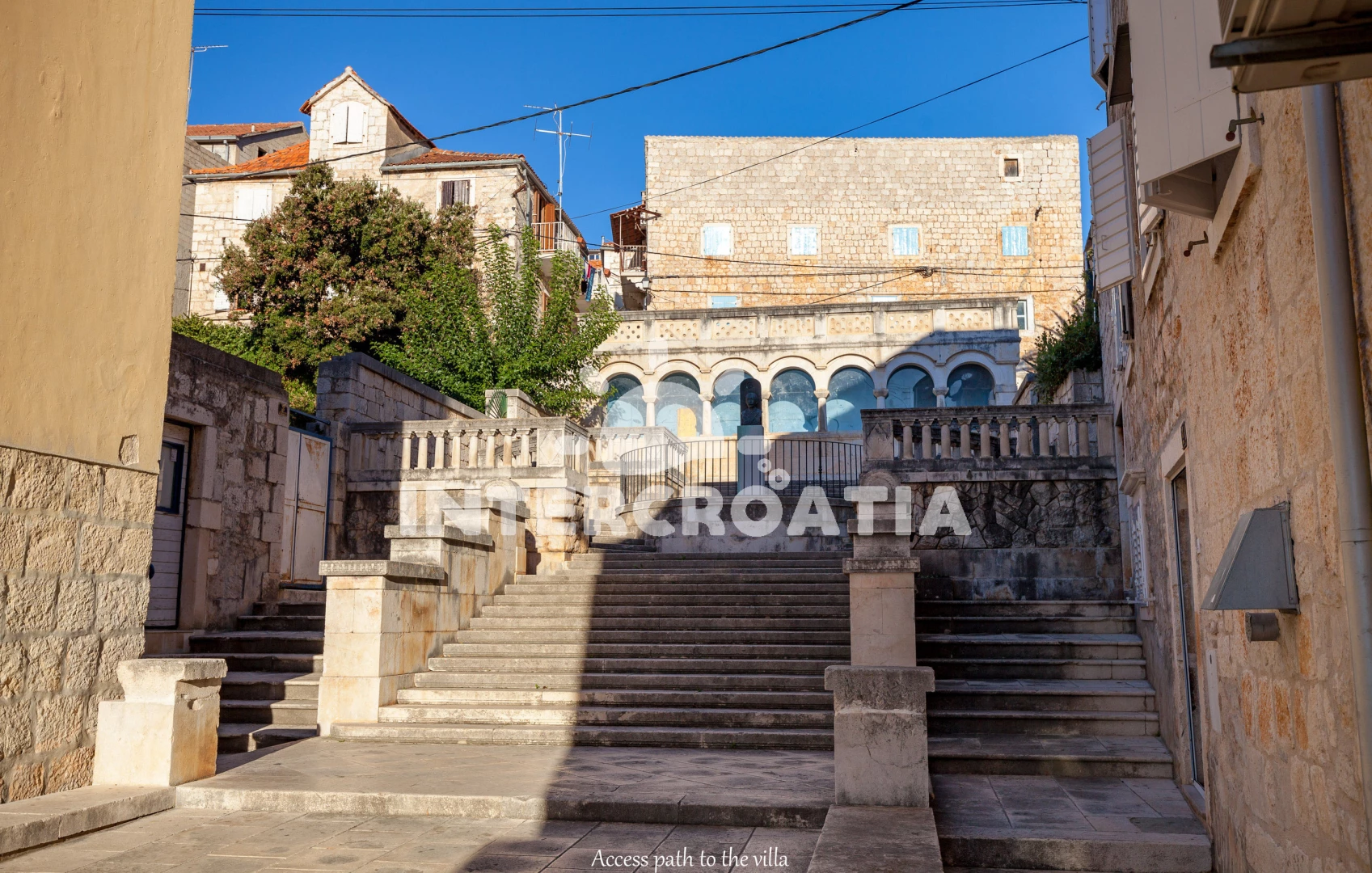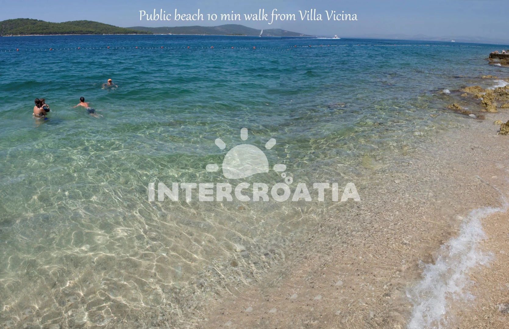 Vzdálenosti: Moře 200 m, pláž 1,5 km (betonové desky, skalnatá a větší kamení), centrum 200 m, směnárna 300 m, restaurace 300 m, bar 300 m, kotviště pro čluny 300 m, ambulance 300 m, lékárna 300 m, supermarket 300 m, banka 500 m, pošta 500 m, veřejná doprava 500 m, potápění 500 m, marina 500 m, čerpací stanice 1 km, trajekt (Supetar) 20 km,