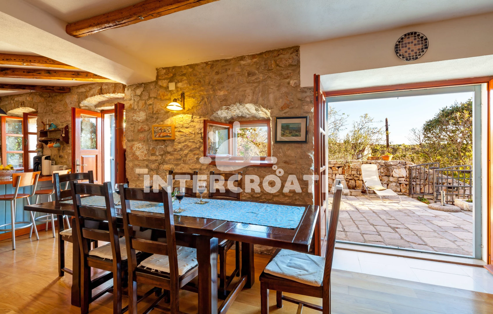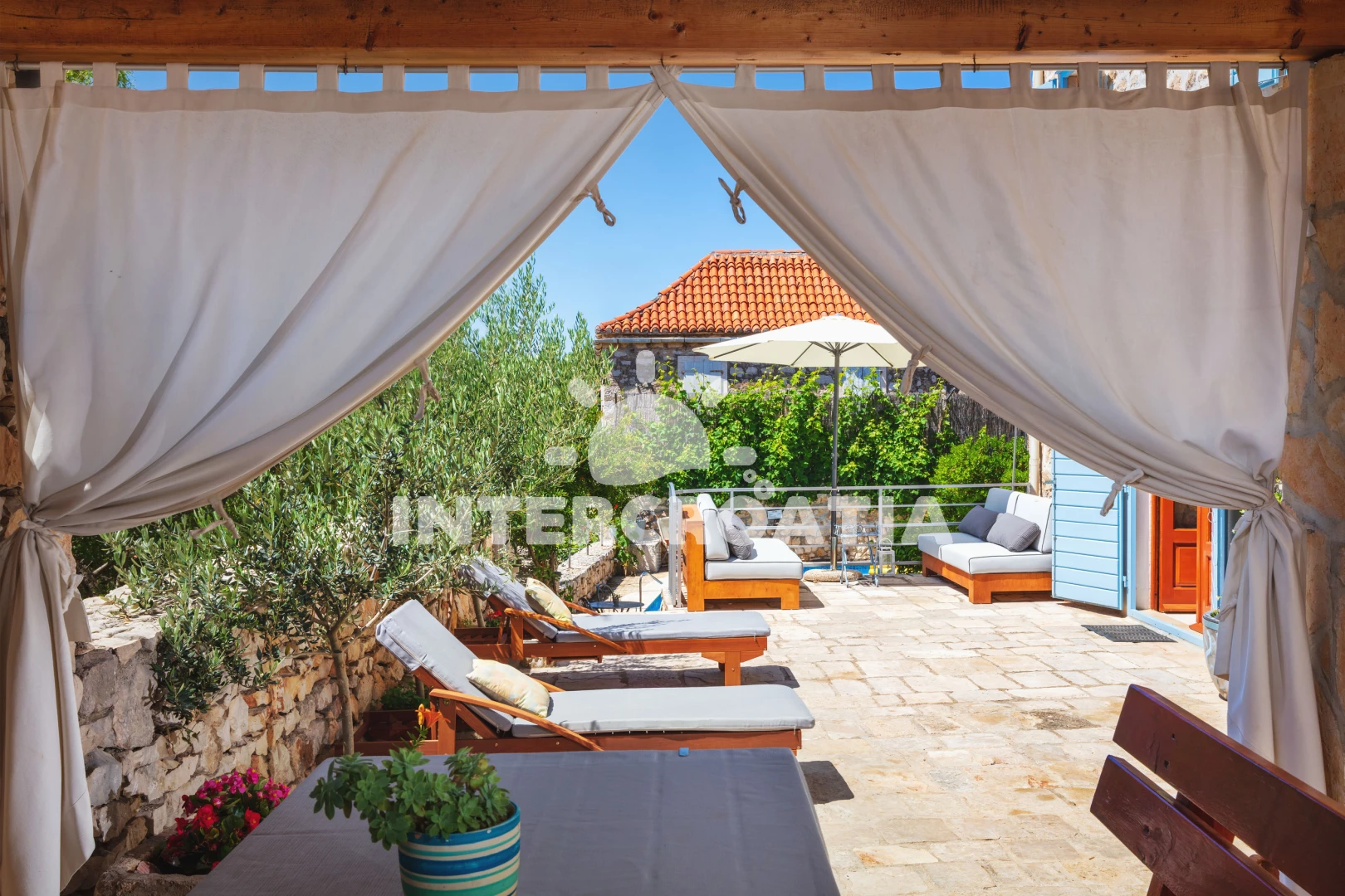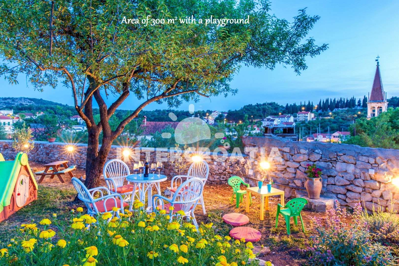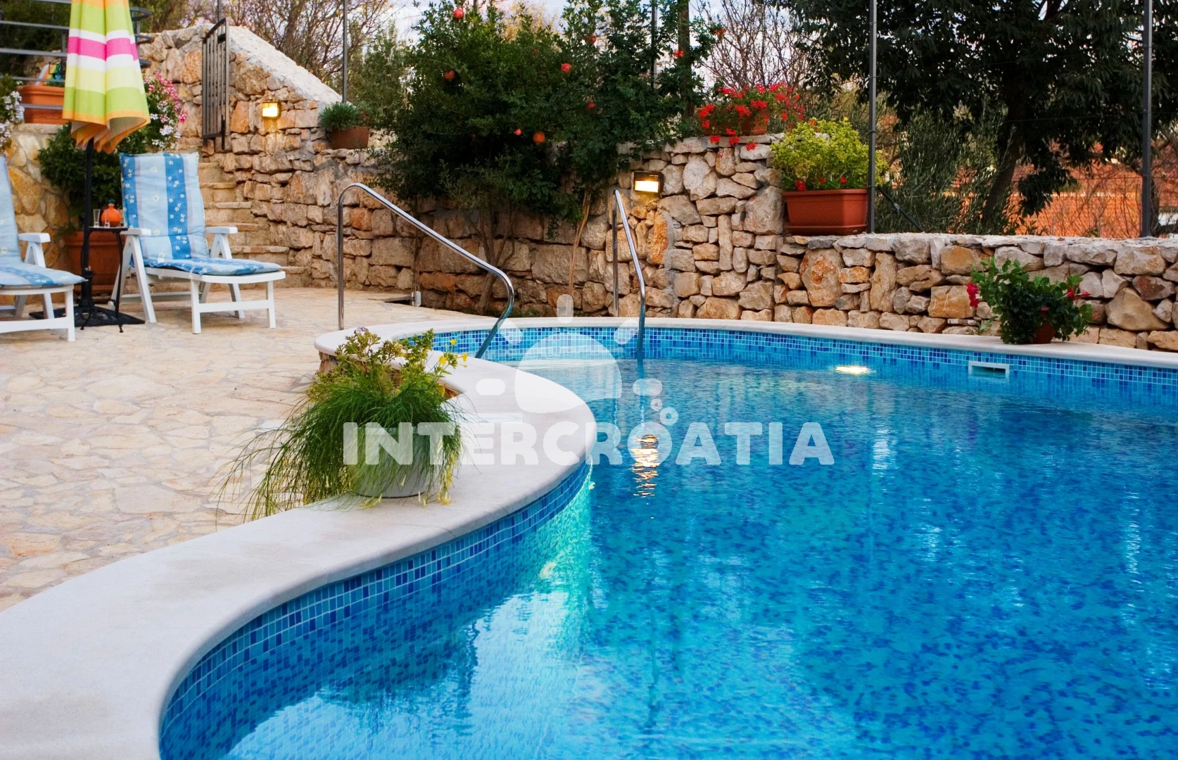 Vzdálenosti: Moře 200 m, pláž 1,5 km (betonové desky, skalnatá a větší kamení), centrum 200 m, směnárna 300 m, restaurace 300 m, bar 300 m, kotviště pro čluny 300 m, ambulance 300 m, lékárna 300 m, supermarket 300 m, banka 500 m, pošta 500 m, veřejná doprava 500 m, potápění 500 m, marina 500 m, čerpací stanice 1 km, trajekt (Supetar) 20 km,