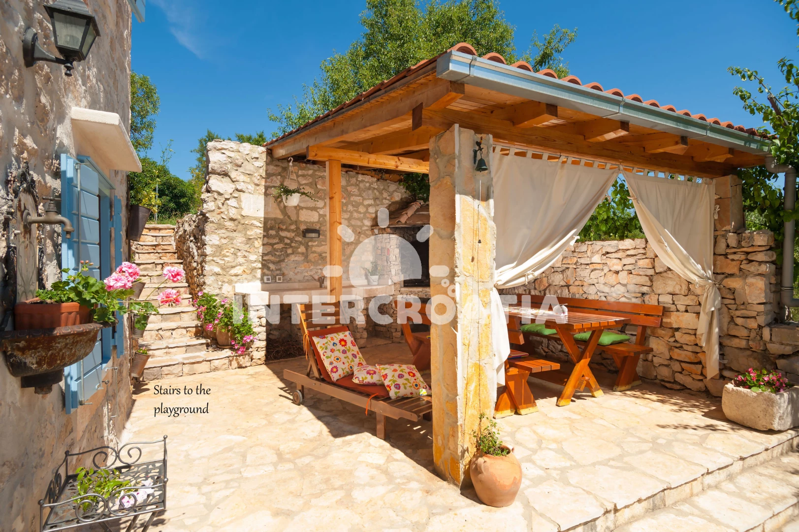 Vila se nachází 1500 m od moře a pláže. Pláž je betonové desky, skalnatá a větší kamení. U objektu je k dispozici společná zahrada s posezením a grilem.