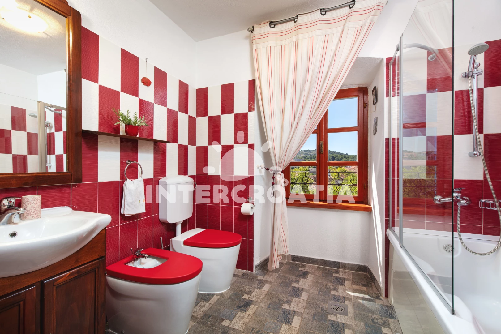 Vila (140 m2) s balkonem. Vila má 3 ložnice a je vhodná pro až 9 osob. Kuchyňská linka je vybavena varnou deskou, toustovačem, troubou, kávovarem, myčkou na nádobí, mikrovlnnou troubou, nádobím, lednicí, mrazákem. V obývací místnosti je rozložitelná pohovka (extra lůžko pro 2 osoby). K dispozici televize se satelitním programem, radio, žehlička. První ložnice s dvoulůžkem. Druhá ložnice se 2,00 jednolůžky. Třetí ložnice s dvoulůžkem, přistýlkou. Koupelna se sprchovým koutem, umyvadlem, fénem a WC. Druhá koupelna s vanou, umyvadlem, fénem a WC. Dále samostatné WC.