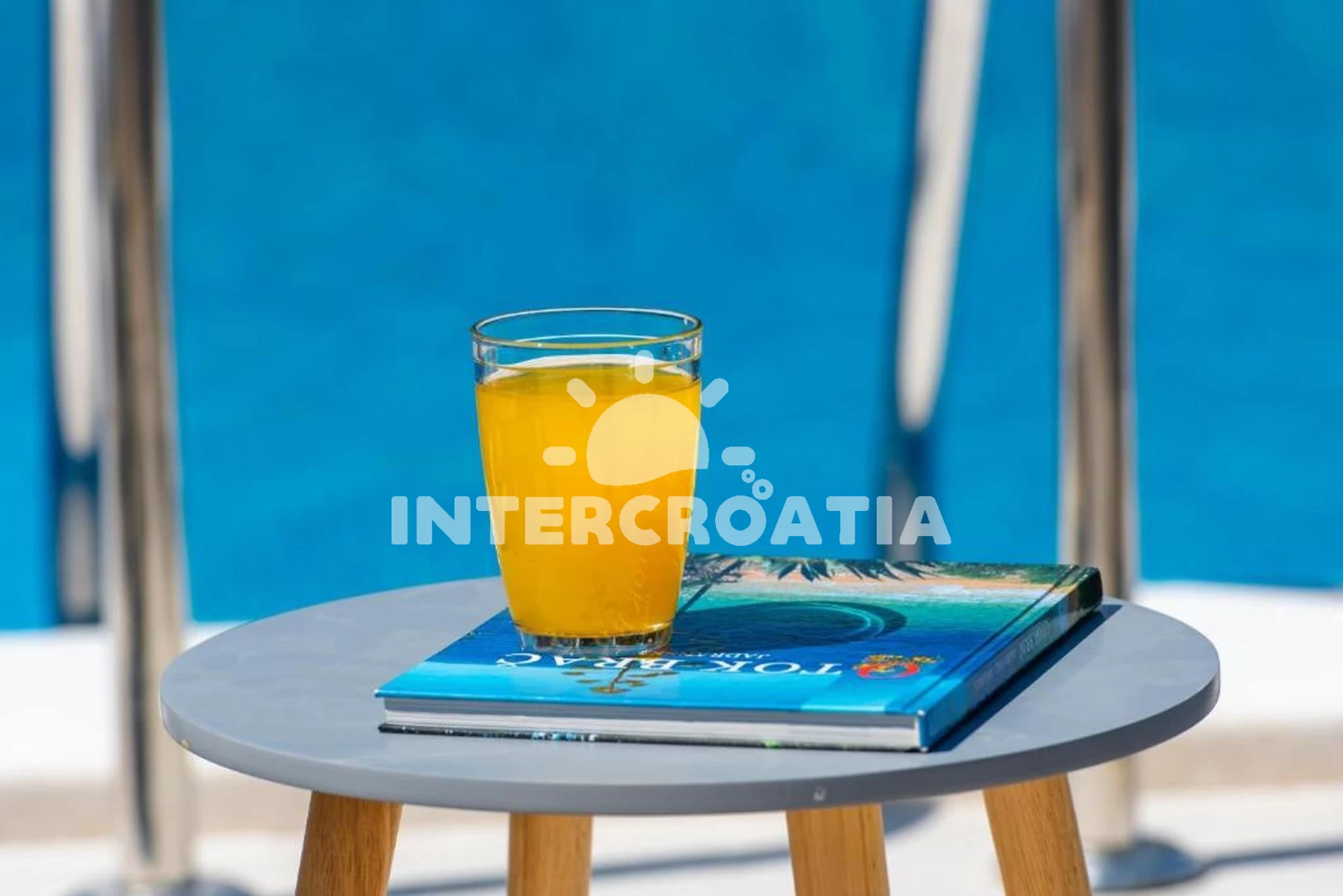 Vila se nachází 100 m od moře a pláže. Pláž je skály. Vila disponuje bazénem s lehátky pro ubytované hosty. U objektu je k dispozici společná zahrada s posezením a grilem. Parkování je před domem.