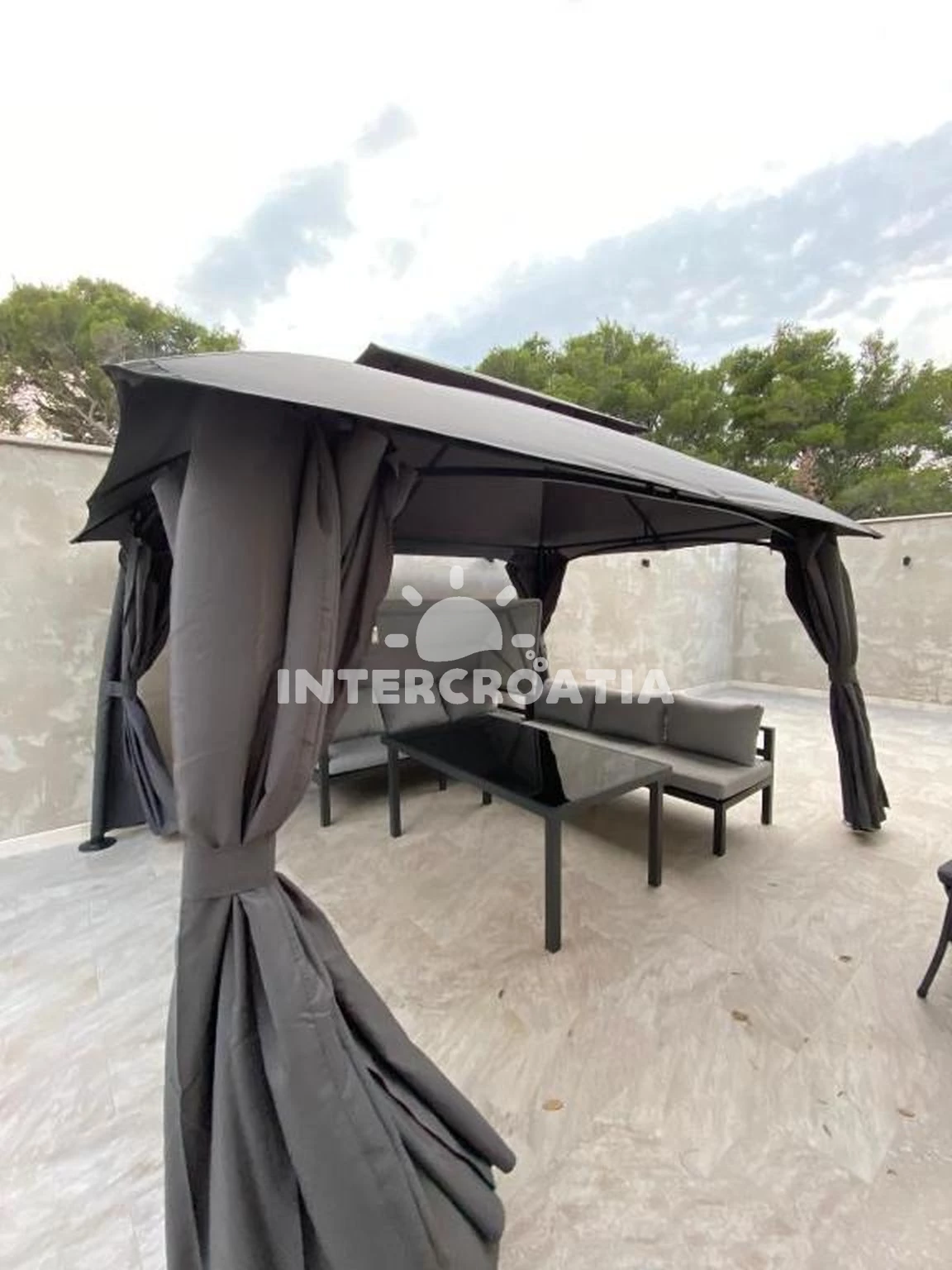 Vila (90 m2) s výhledem na moře. Nachází se ve dvou patrech objektu. Vila má 3 ložnice a je vhodná pro až 6 osob. Kuchyňská linka je vybavena varnou deskou, toustovačem, troubou, myčkou na nádobí, mikrovlnnou troubou, rychlovarnou konvicí, nádobím, lednicí, mrazákem. K dispozici televize se satelitním programem, žehlička. První ložnice s dvoulůžkem. Druhá ložnice s dvoulůžkem. Třetí ložnice s dvoulůžkem. První koupelna se sprchovým koutem, umyvadlem, fénem a WC. Druhá koupelna se sprchovým koutem, umyvadlem, fénem a WC. Třetí koupelna s vanou, umyvadlem, fénem a WC.