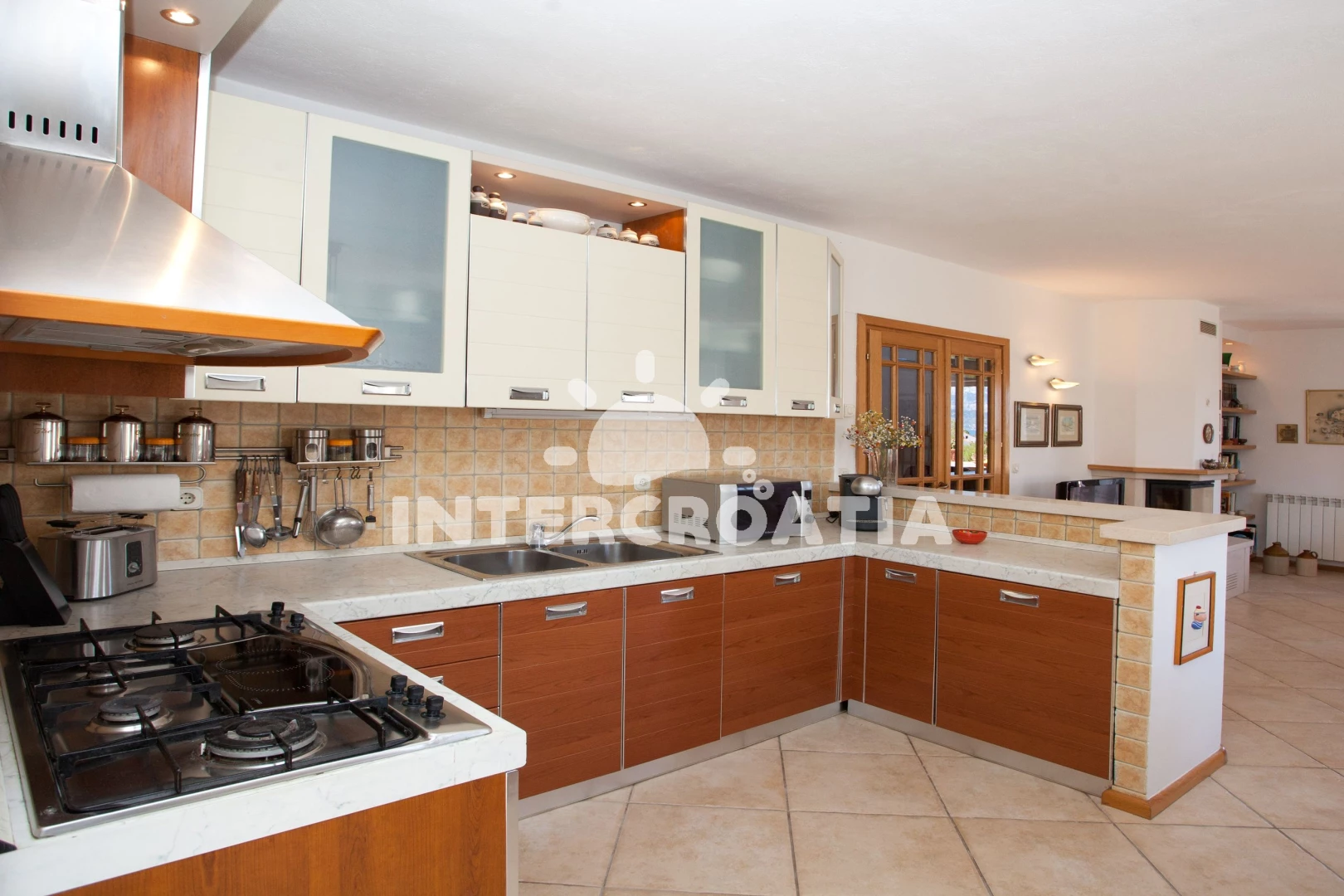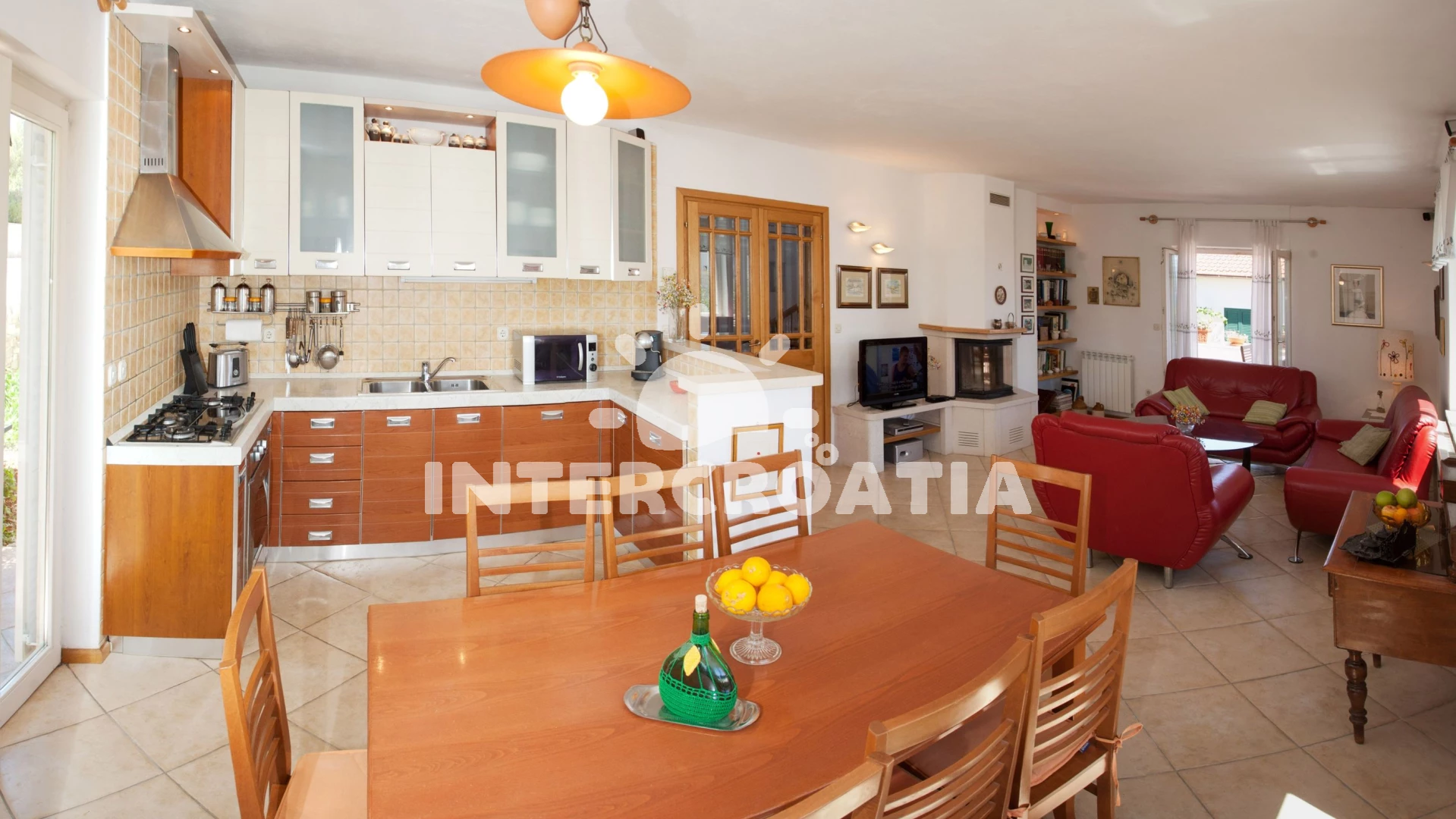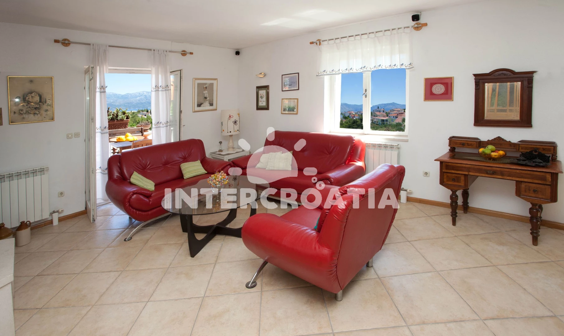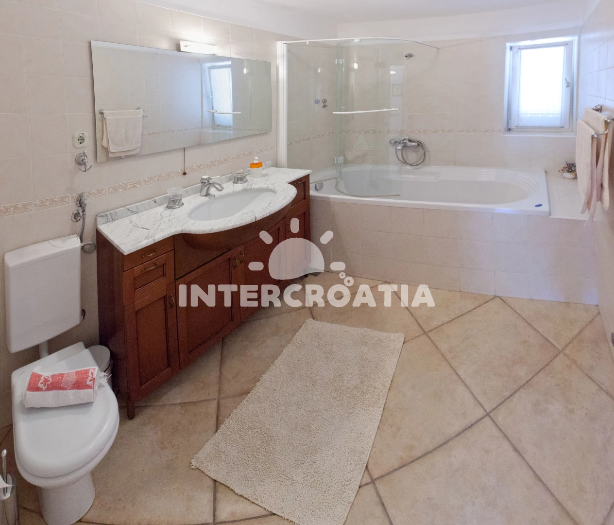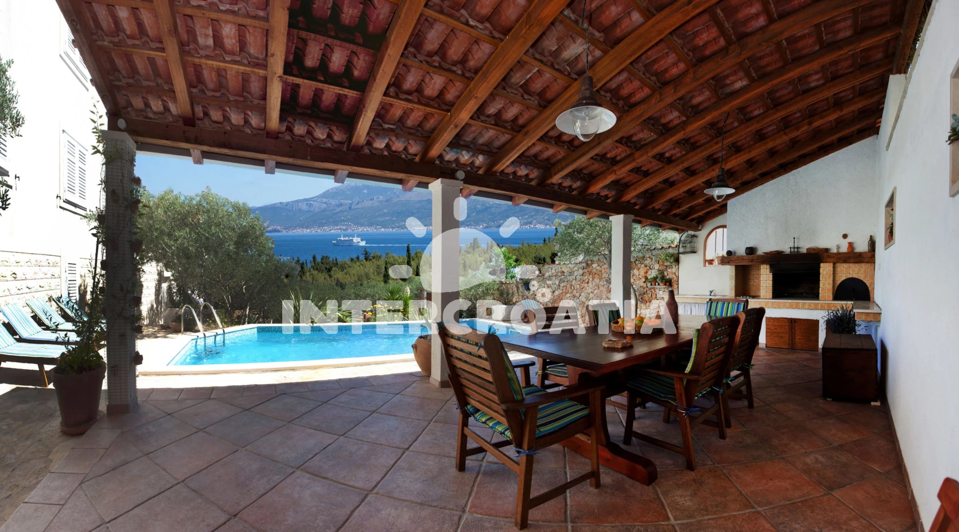 Vila (90 m2) s výhledem na moře. Vila má 5 ložnic a je vhodná pro až 9 osob. Kuchyňská linka je vybavena varnou deskou, toustovačem, troubou, kávovarem, myčkou na nádobí, mikrovlnnou troubou, rychlovarnou konvicí, nádobím, lednicí, mrazákem. K dispozici televize se satelitním programem, žehlička. První ložnice s dvoulůžkem. Druhá ložnice s dvoulůžkem. Třetí ložnice s dvoulůžkem. Čtvrtá ložnice s dvoulůžkem. Pátá ložnice s jednolůžkem. První koupelna se sprchovým koutem, umyvadlem, fénem a WC. Druhá koupelna se sprchovým koutem, umyvadlem, fénem a WC. Třetí koupelna se sprchovým koutem, umyvadlem, fénem a WC. Čtvrtá koupelna s vanou, umyvadlem, fénem a WC.