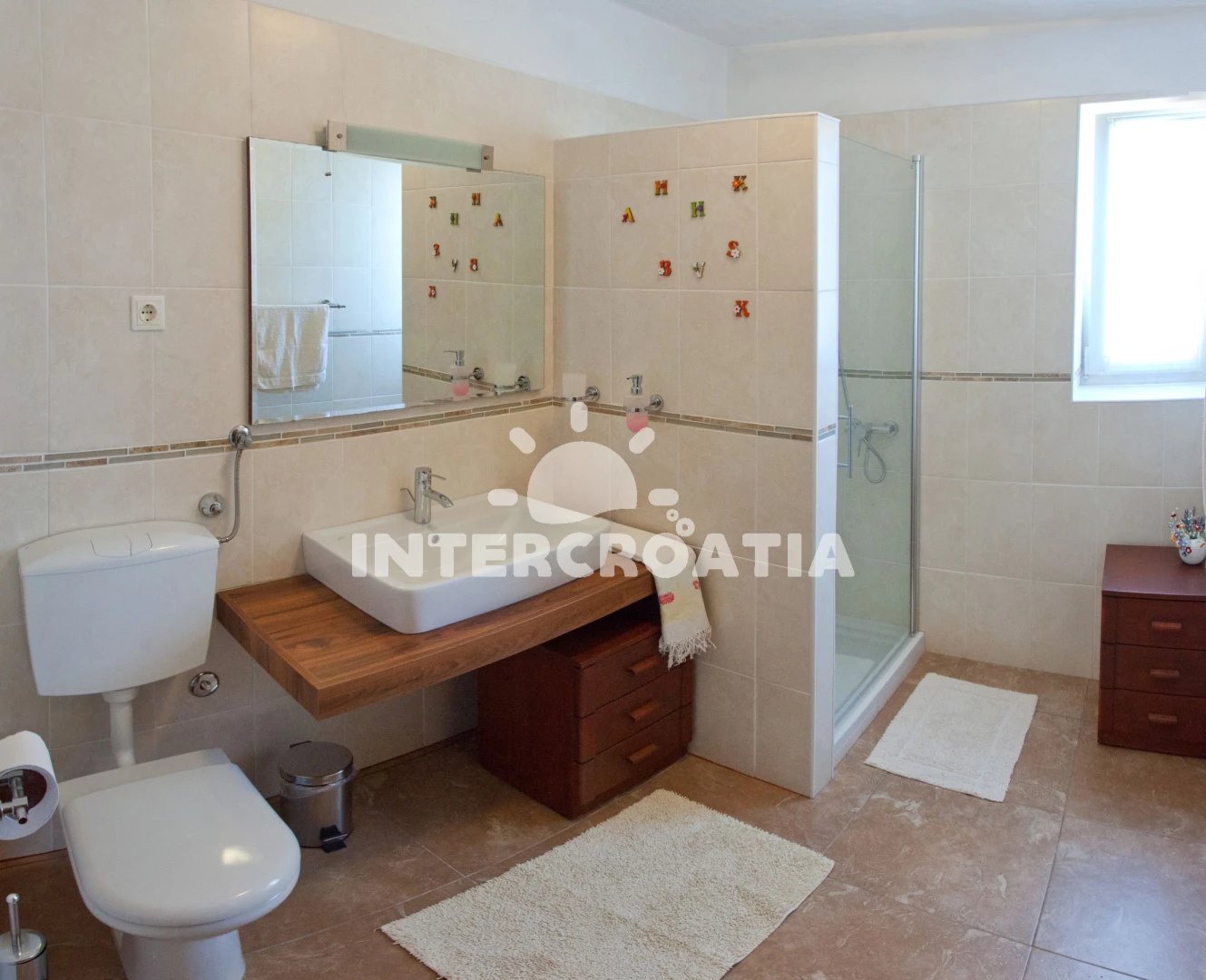 Vzdálenosti: Moře 200 m, pláž 200 m , supermarket 300 m, směnárna 1 km, centrum 1,5 km, lékárna 1,5 km, ambulance 1,5 km, veřejná doprava 2 km, trajekt (Supetar) 2 km, čerpací stanice 2 km,