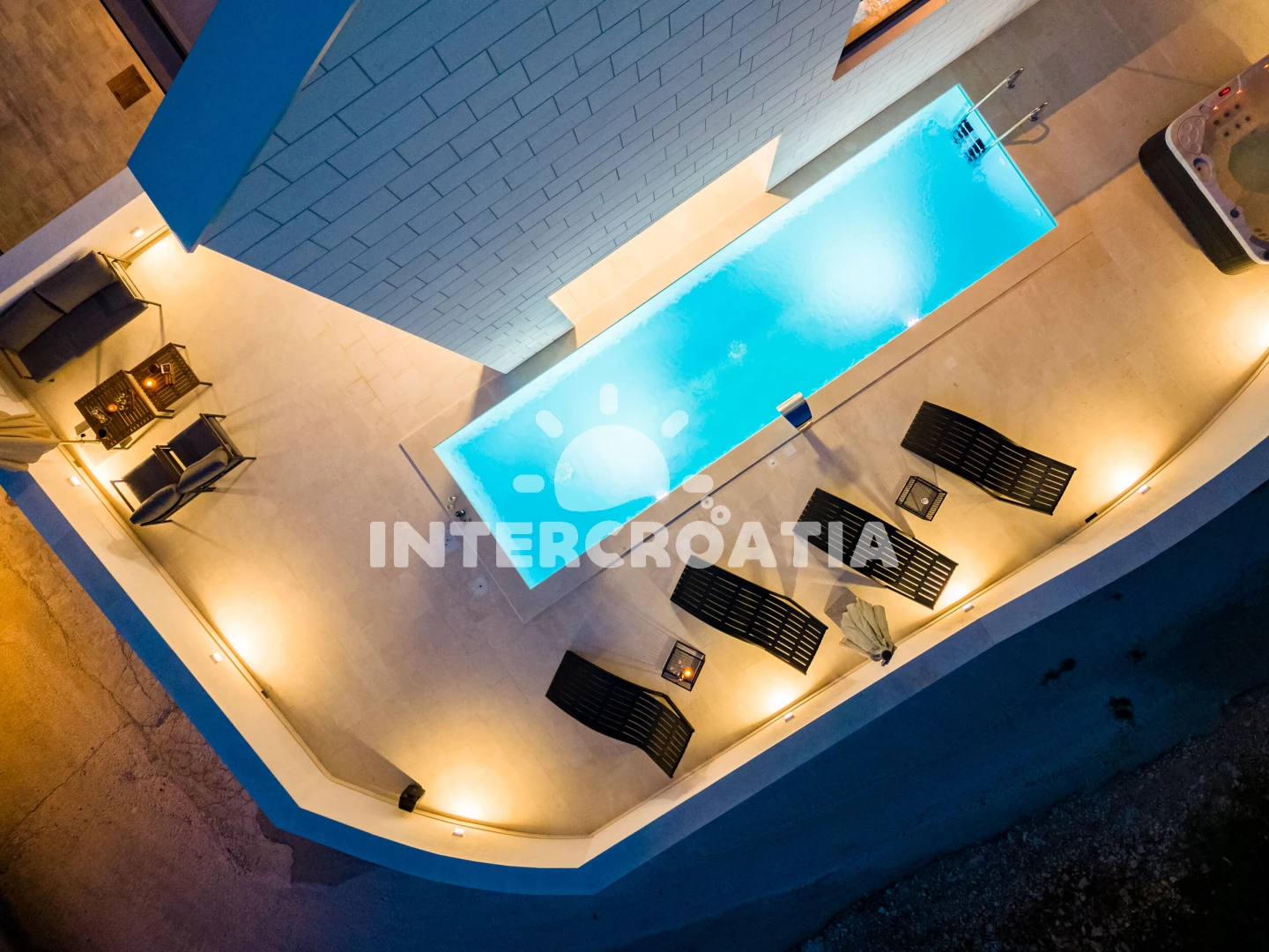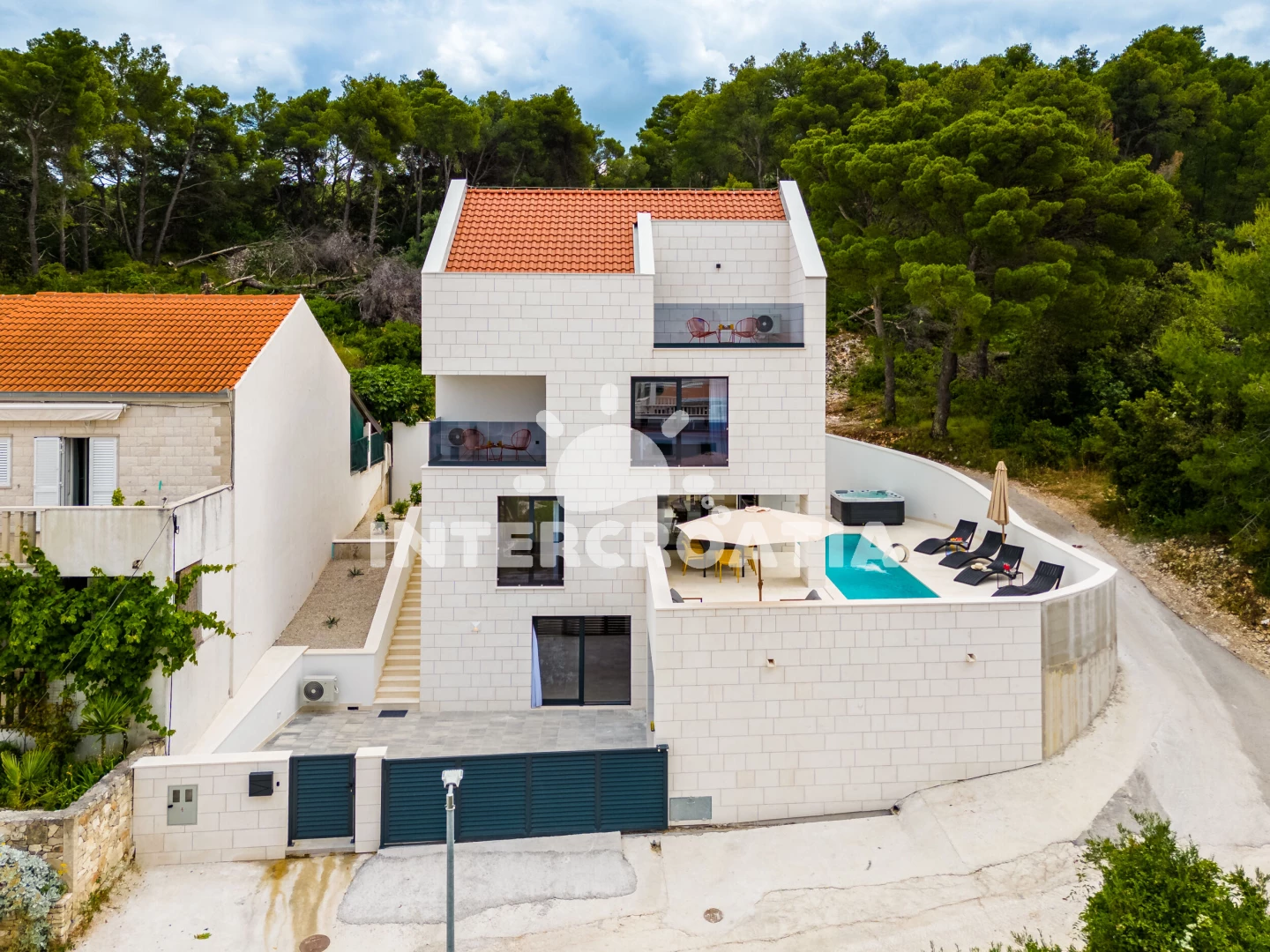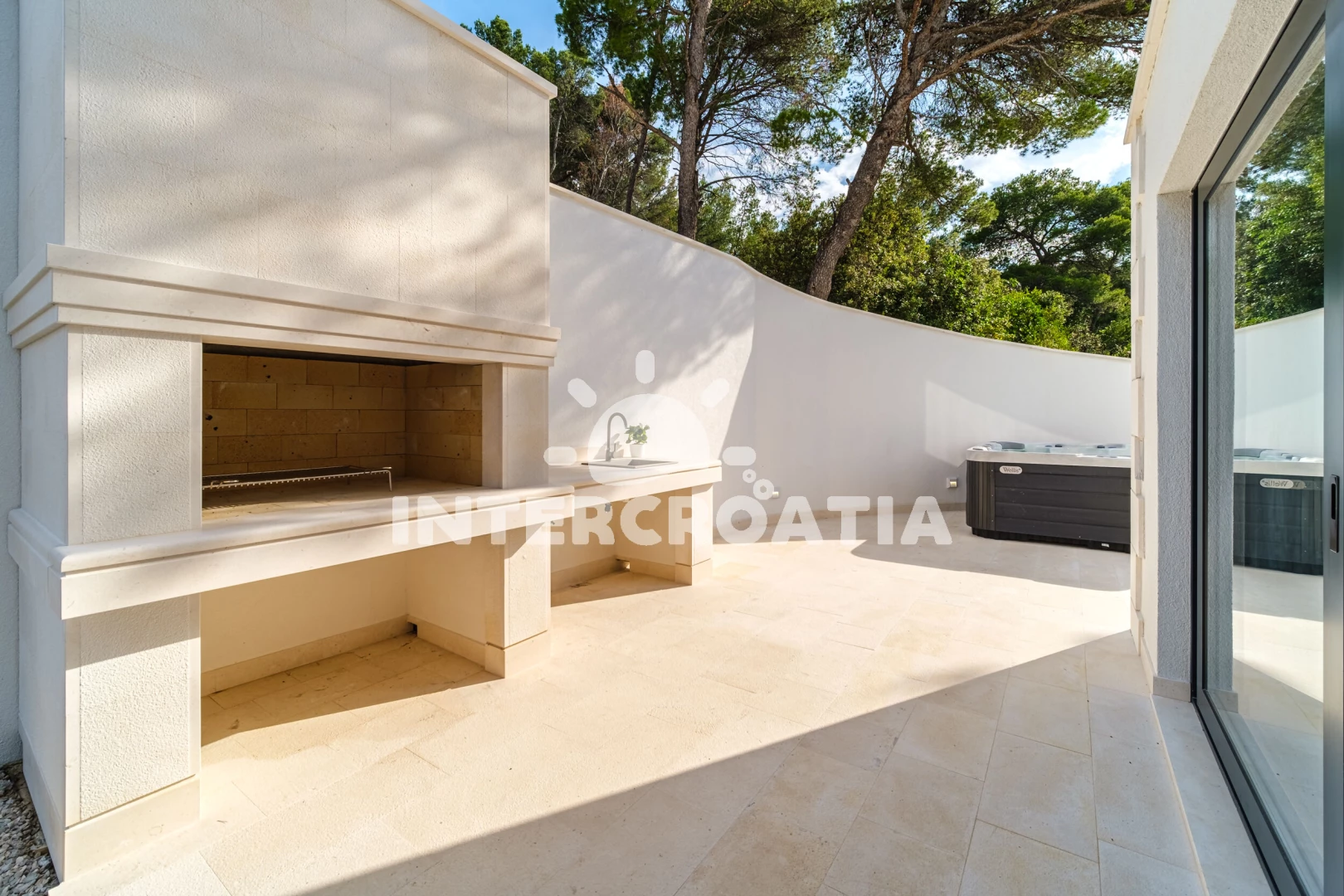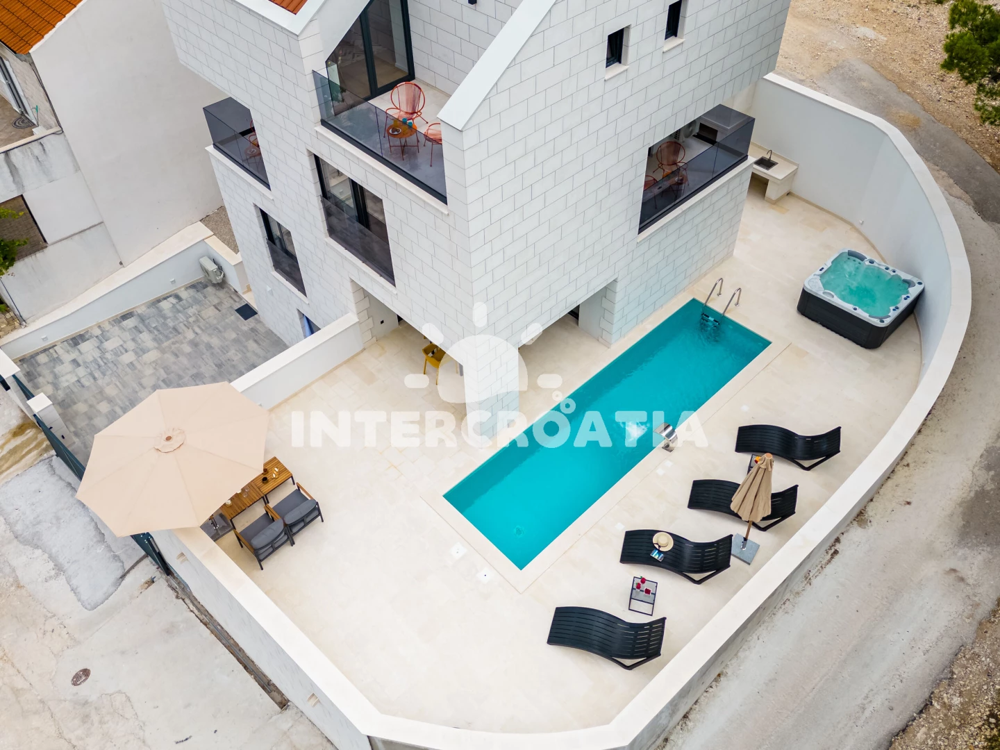 Vila se nachází 200 m od moře a pláže. Pláž je oblázková. Vila disponuje bazénem s lehátky pro ubytované hosty. K dispozici vířivka, posilovna, sauna. U objektu je k dispozici společná zahrada s posezením a grilem. Parkování je před domem.