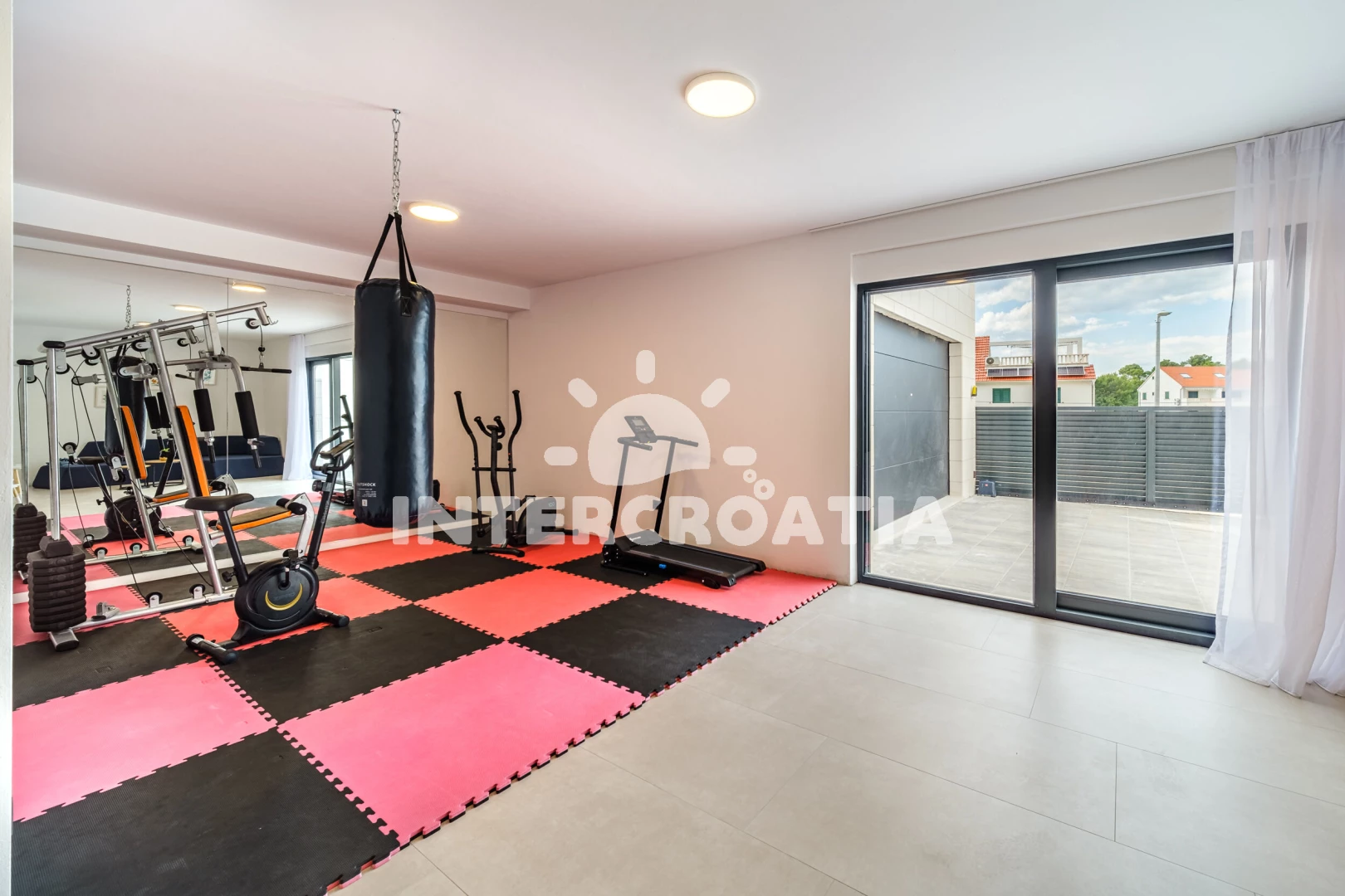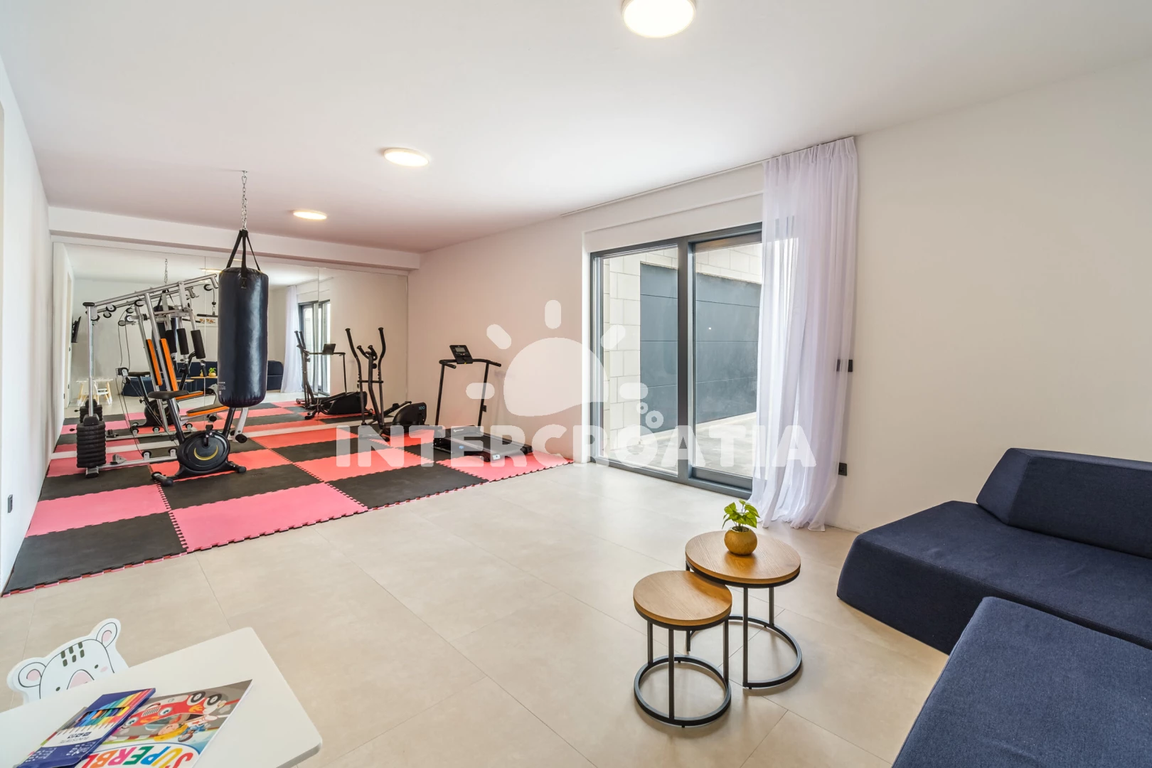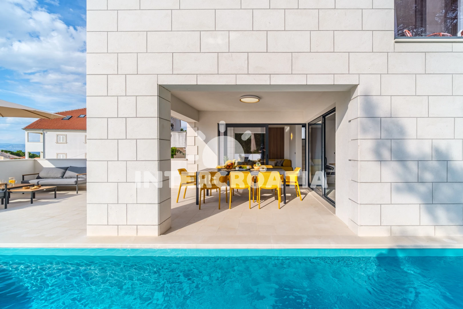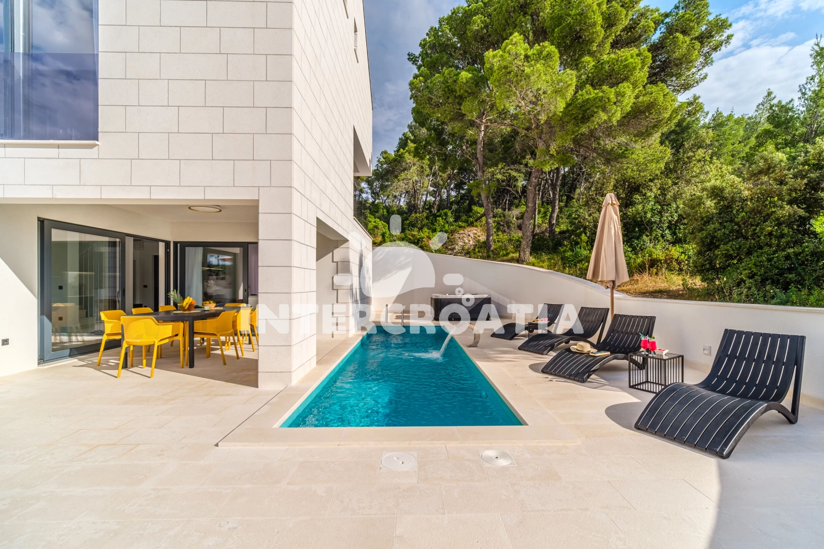 Vila se nachází 200 m od moře a pláže. Pláž je oblázková. Vila disponuje bazénem s lehátky pro ubytované hosty. K dispozici vířivka, posilovna, sauna. U objektu je k dispozici společná zahrada s posezením a grilem. Parkování je před domem.