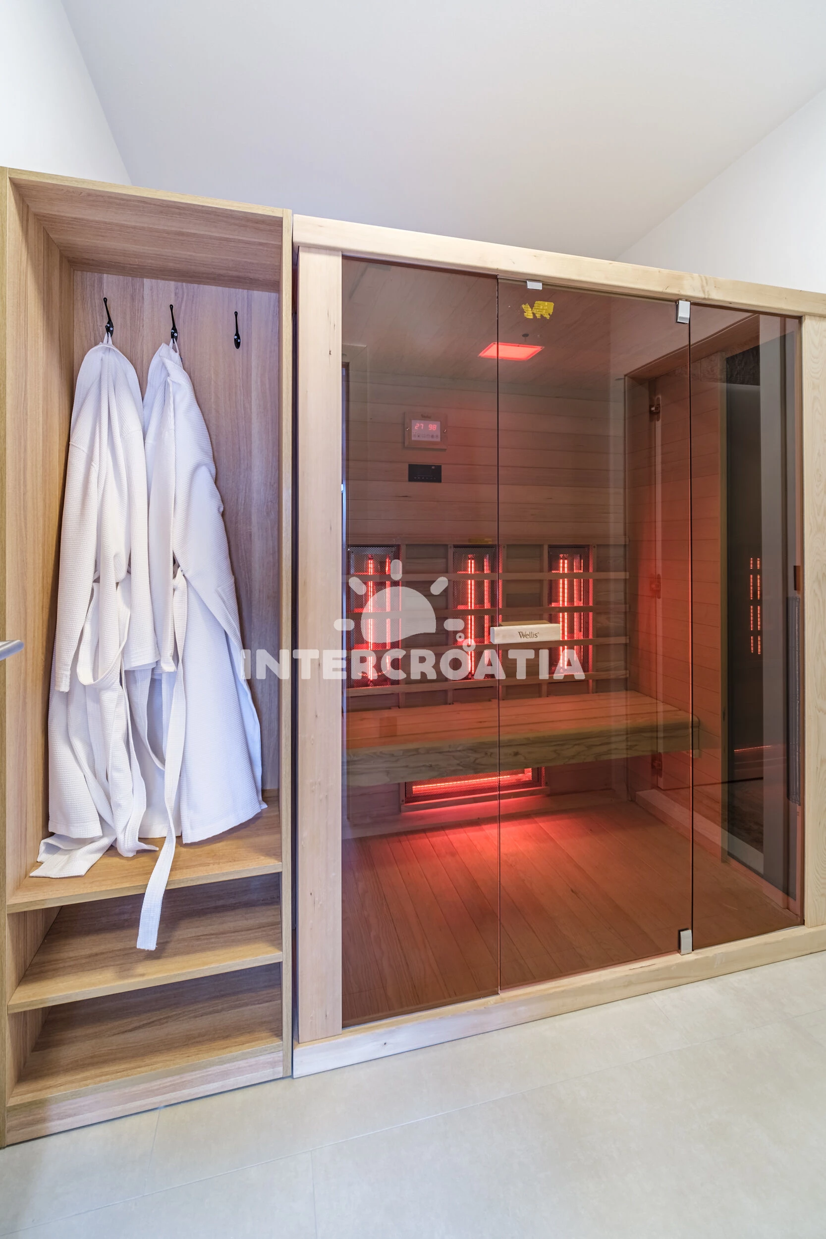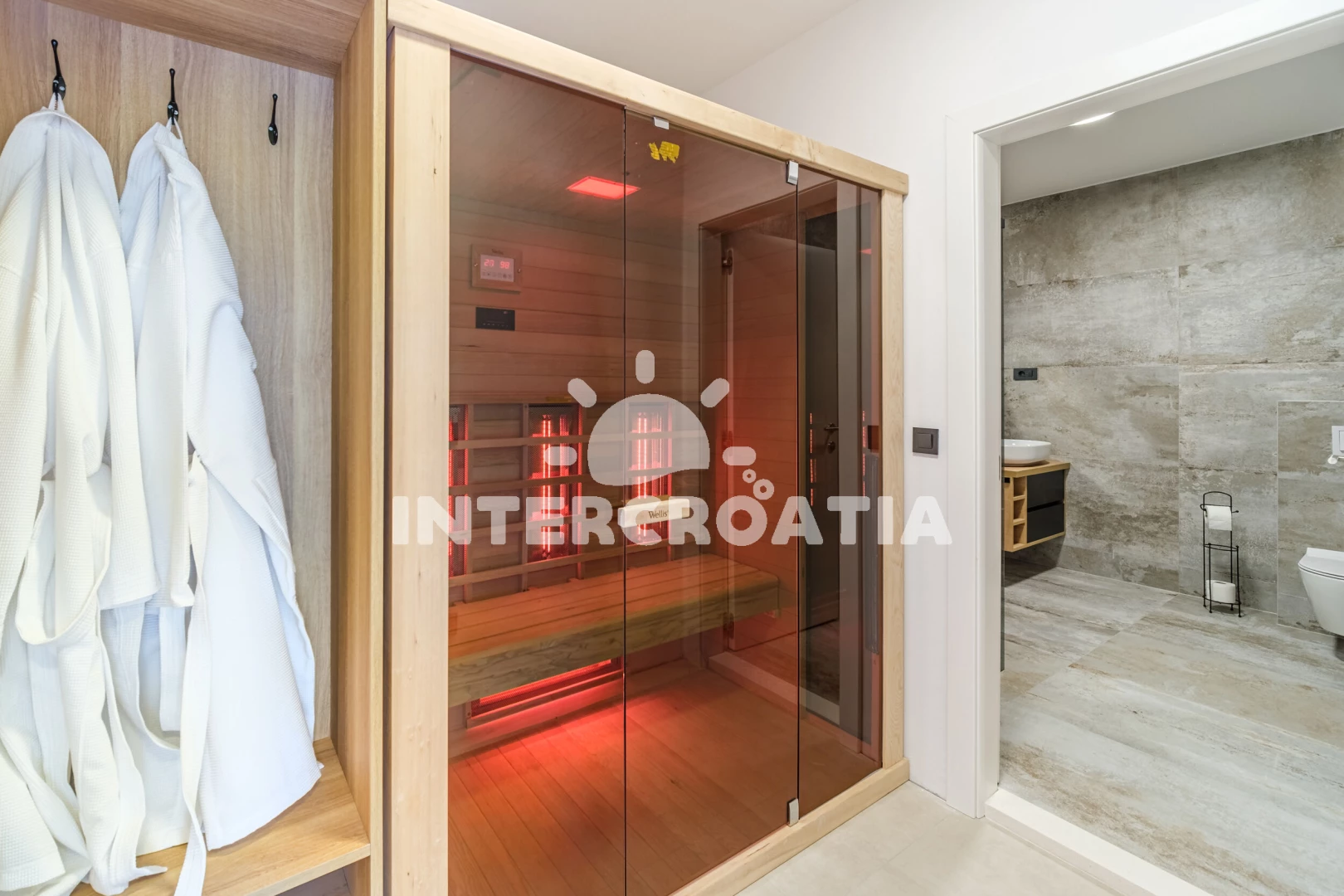 Vila (250 m2) s balkonem. Nachází se v přízemí objektu. Vila má 4 ložnice a je vhodná pro až 10 osob. Kuchyňská linka je vybavena varnou deskou, kávovarem, troubou, toustovačem, myčkou na nádobí, rychlovarnou konvicí, nádobím, lednicí, mrazákem. V obývací místnosti je rozložitelná pohovka (extra lůžko pro 2 osoby). K dispozici televize, sejf, žehlička. První ložnice s dvoulůžkem. Druhá ložnice s dvoulůžkem. Třetí ložnice s dvoulůžkem. Čtvrtá ložnice s dvoulůžkem. První koupelna se sprchovým koutem, umyvadlem, fénem a WC. Druhá koupelna se sprchovým koutem, umyvadlem, fénem a WC. Třetí koupelna se sprchovým koutem, umyvadlem, fénem a WC. Čtvrtá koupelna se sprchovým koutem, umyvadlem, fénem a WC. Pátá koupelna se sprchovým koutem, umyvadlem, fénem a WC. Dále samostatné WC.