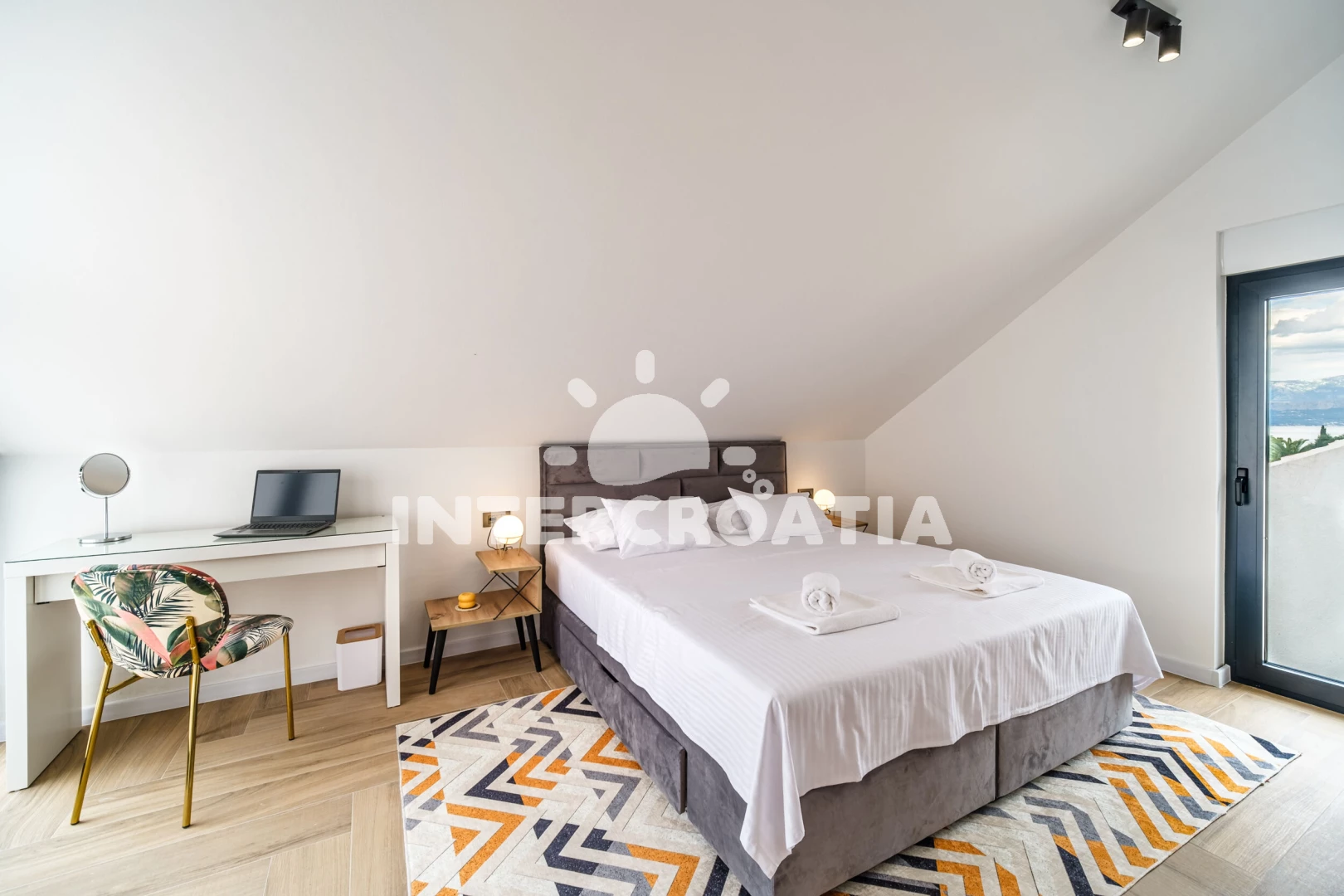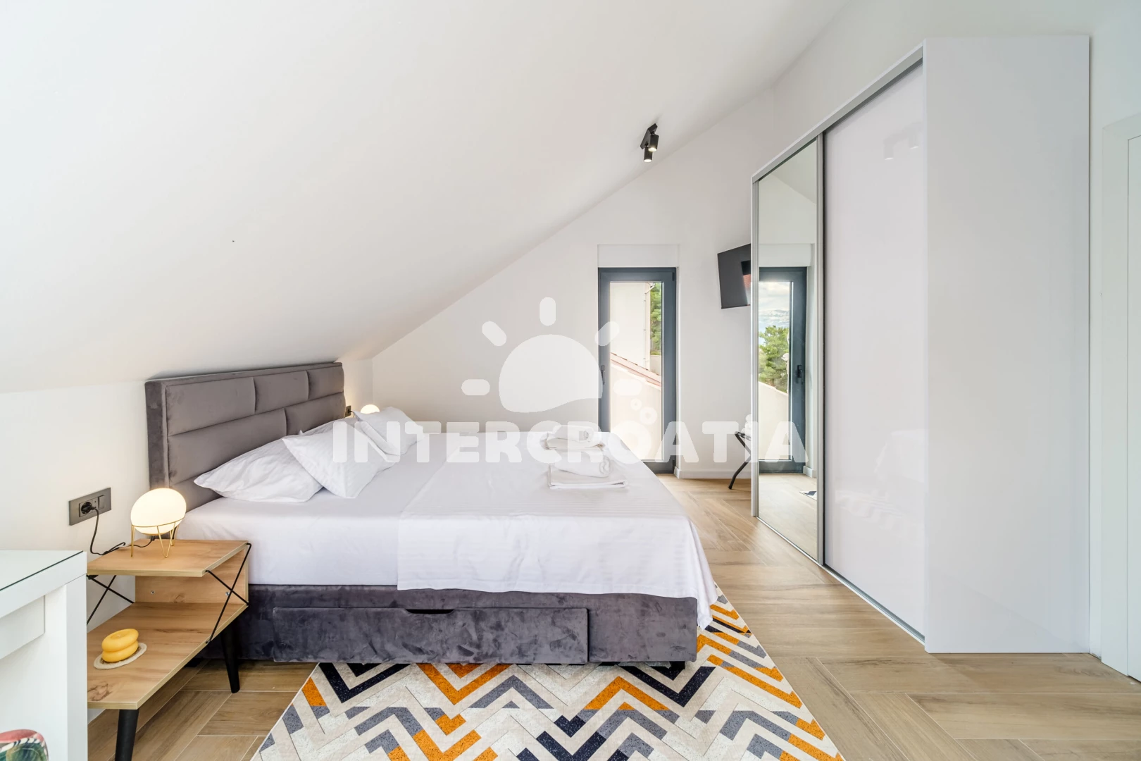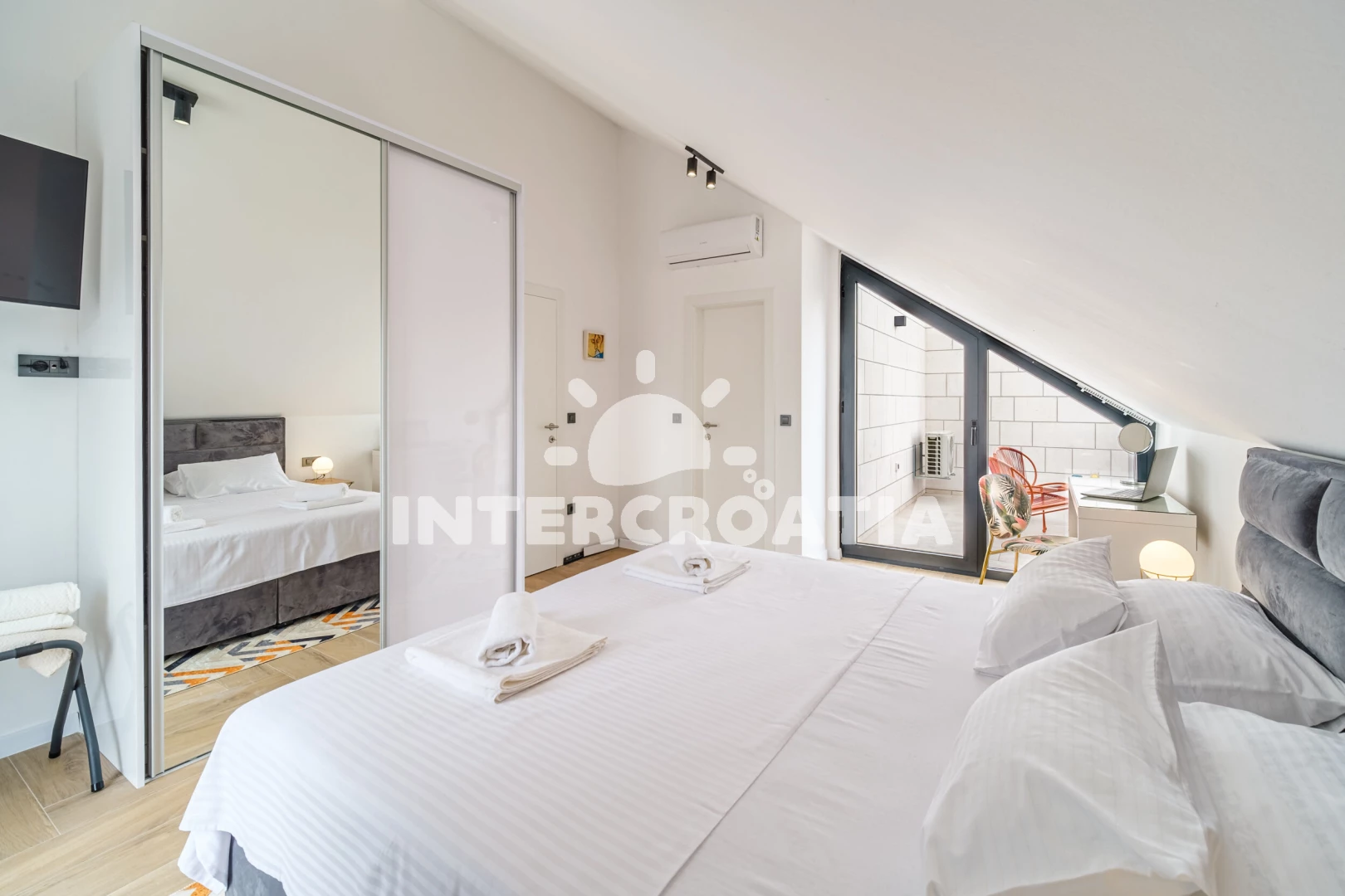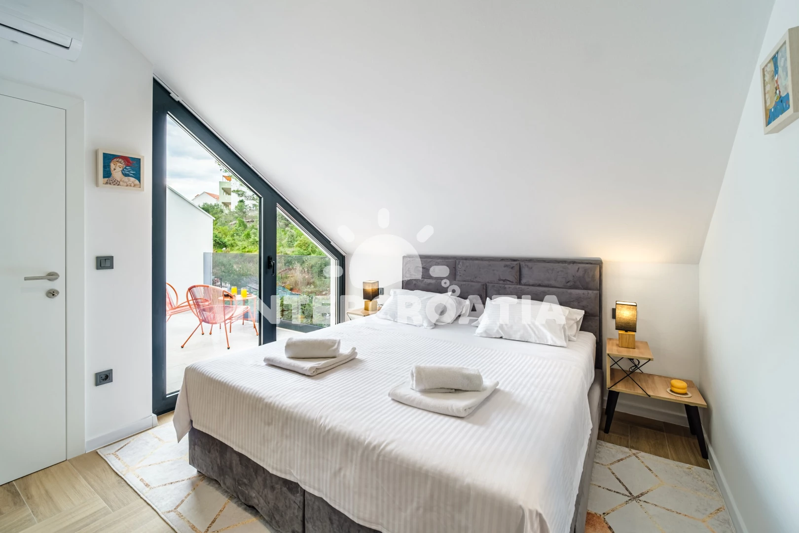 Vila (250 m2) s balkonem. Nachází se v přízemí objektu. Vila má 4 ložnice a je vhodná pro až 10 osob. Kuchyňská linka je vybavena varnou deskou, kávovarem, troubou, toustovačem, myčkou na nádobí,…