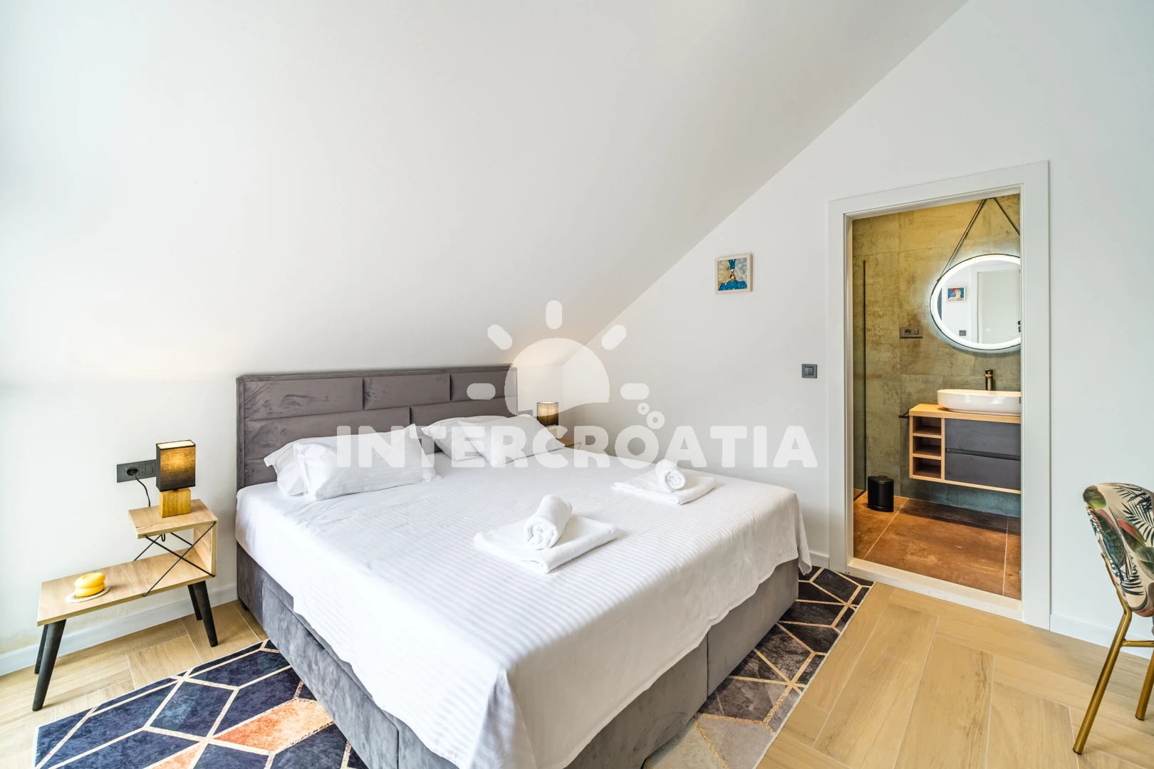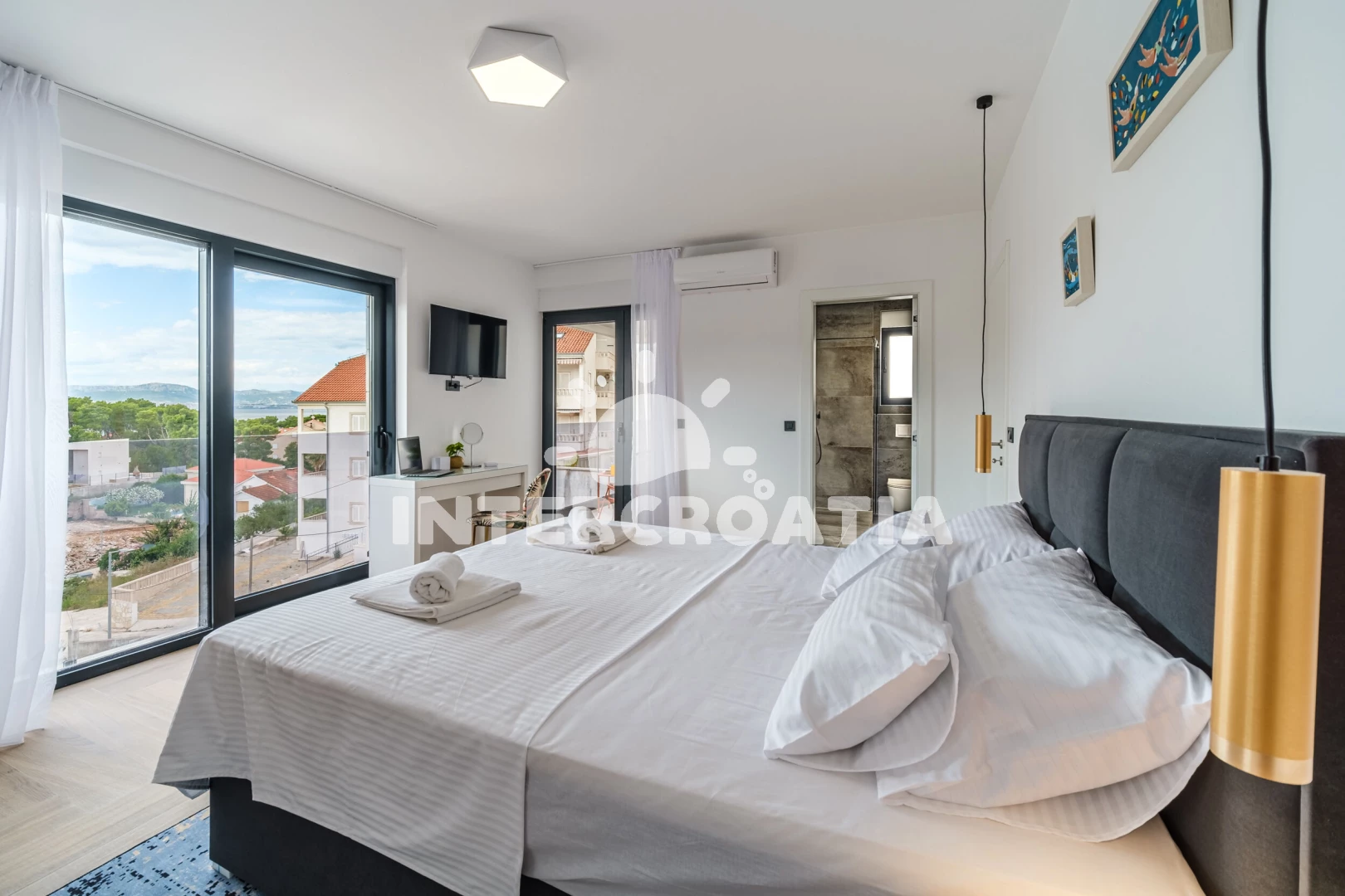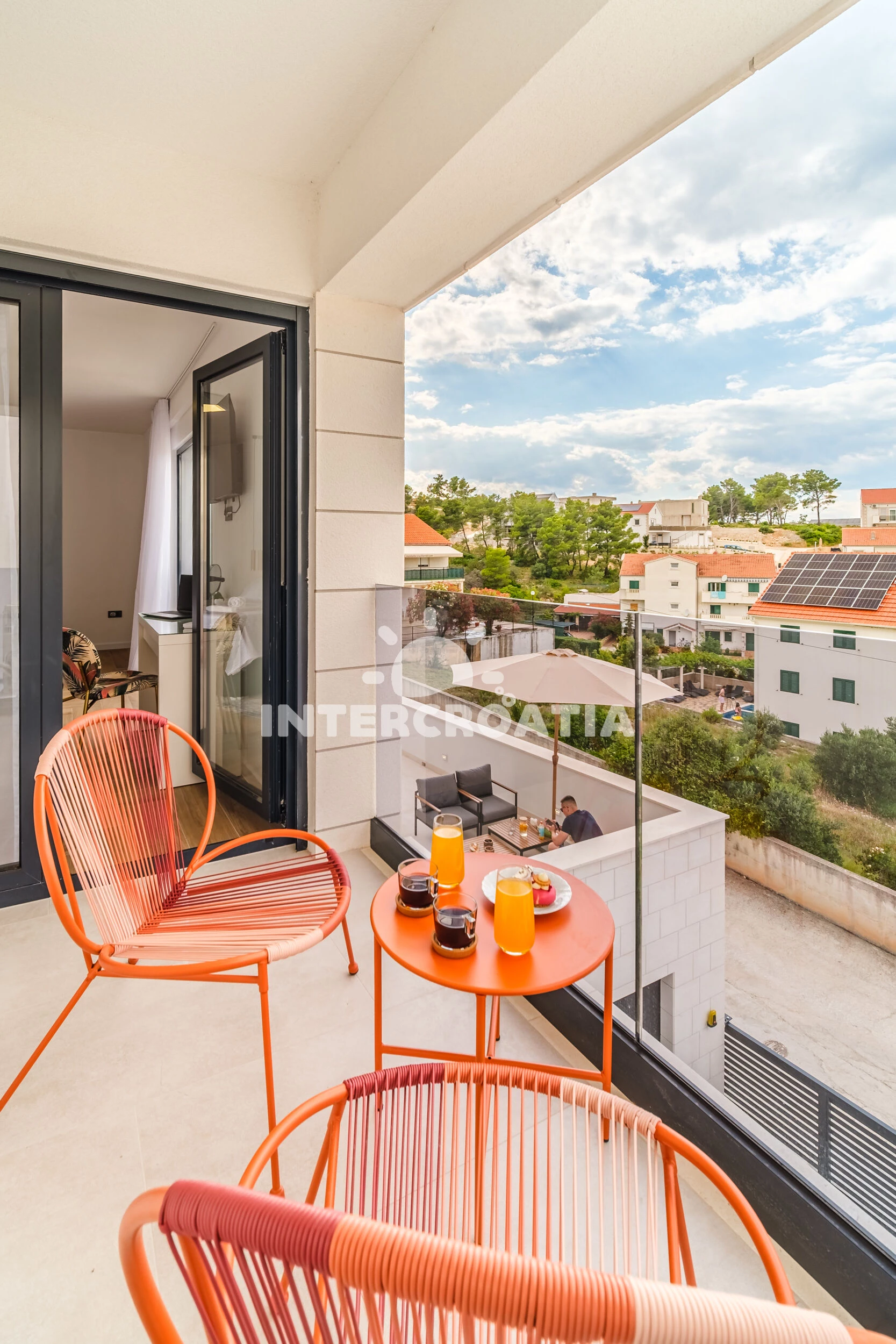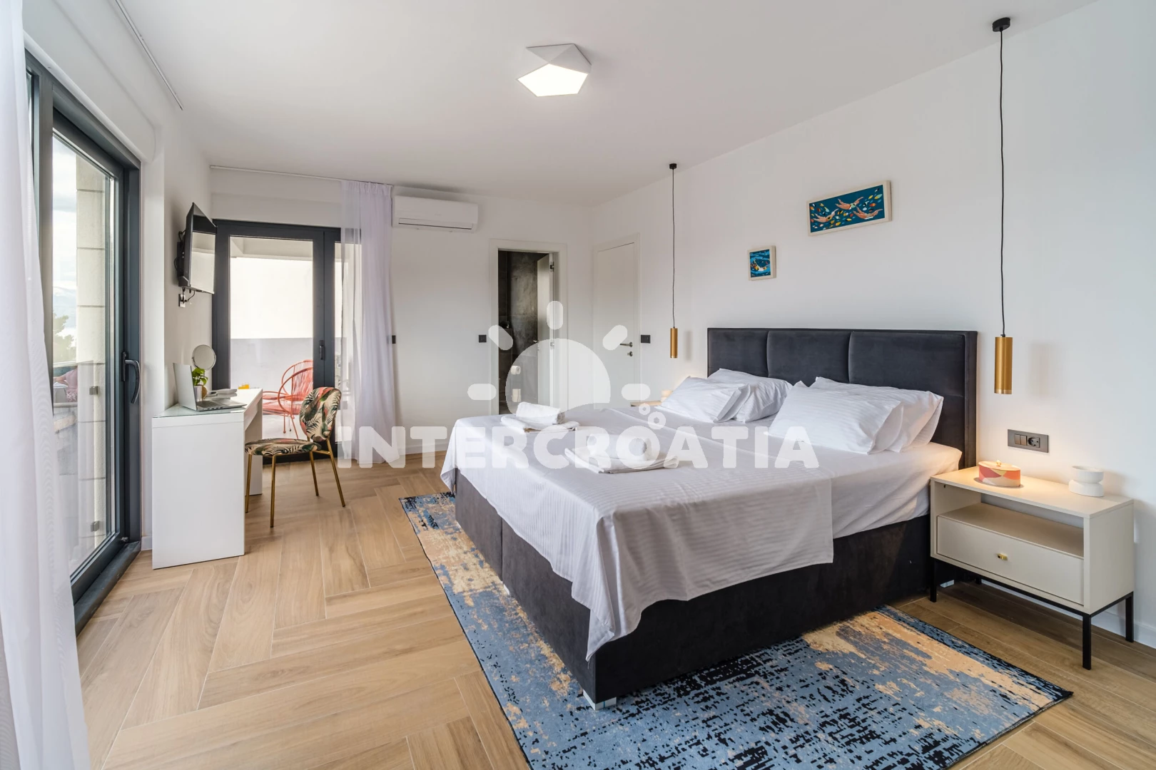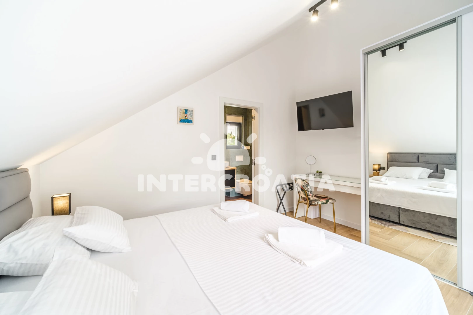 Vila (250 m2) s balkonem. Nachází se v přízemí objektu. Vila má 4 ložnice a je vhodná pro až 10 osob. Kuchyňská linka je vybavena varnou deskou, kávovarem, troubou, toustovačem, myčkou na nádobí,…