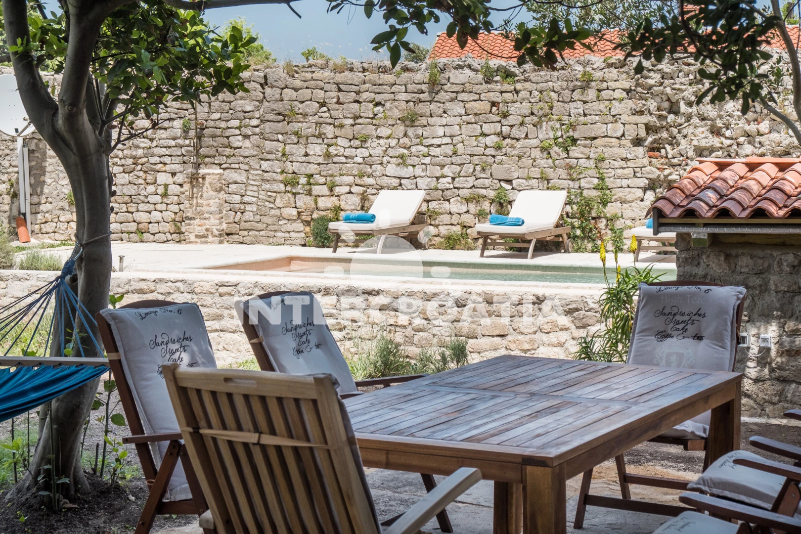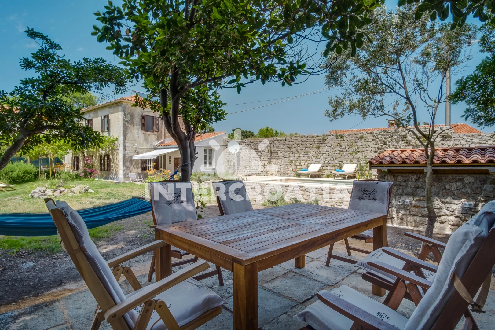 Vila se nachází 250 m od moře a pláže. Pláž je oblázková a betonové desky. Vila disponuje bazénem s lehátky pro ubytované hosty. U objektu je k dispozici společná zahrada s posezením a grilem. Parkování je před domem.