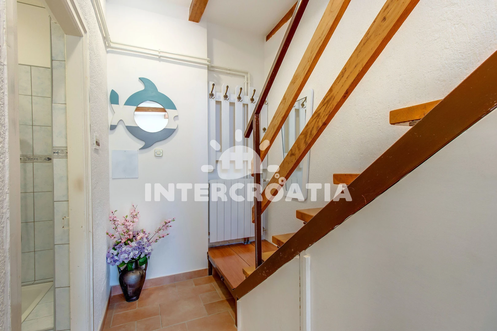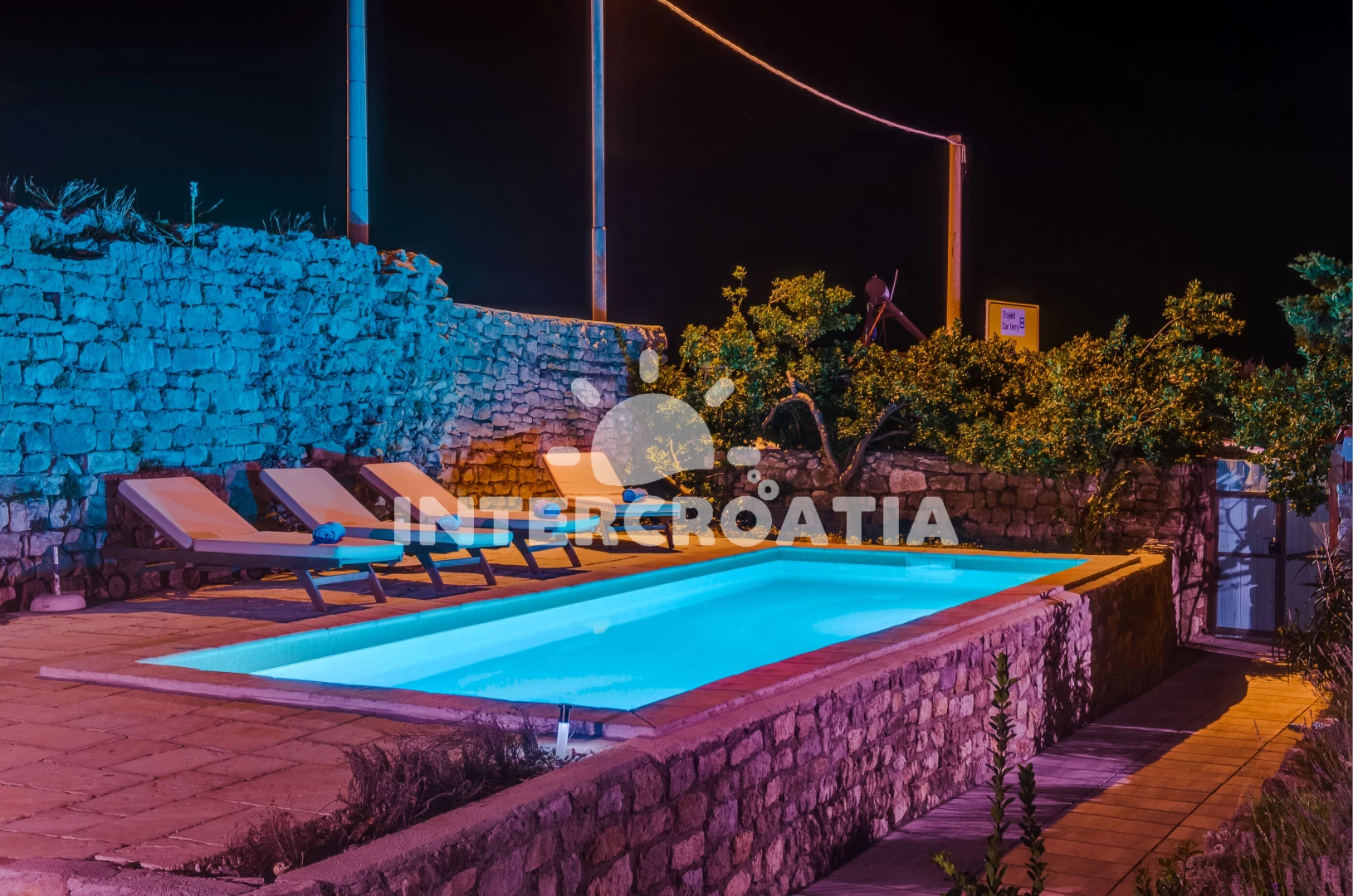 Vzdálenosti: Moře 20 m, pláž 250 m (oblázková a betonové desky), bar 100 m, centrum 200 m, supermarket 350 m, restaurace 500 m, čerpací stanice 2,6 km, ambulance 4,2 km, pošta 4,5 km, lékárna 5 km, veřejná doprava 18 km, směnárna 19 km, banka 31 km, trajekt (Merag) 45 km, letiště (Rijeka) 80 km,